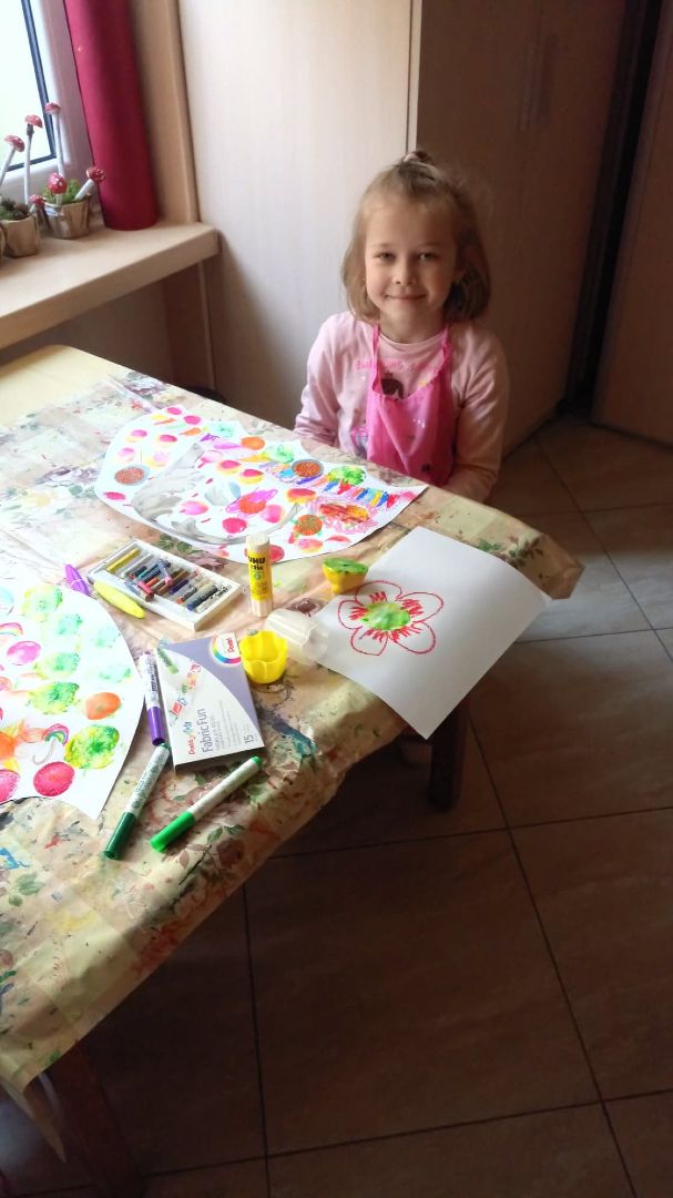 Dzieci z grupy IV na kole plastycznym wykonały kolorowe parasole, używały pasteli olejnych, mazaków, naklejały wycinały i naklejały kolorowe elementy z papieru, stemplowały jabłkiem, cytryną i gąbkowym tamponem. Wyszły nam przepiękne parasole, szkoda, że nie są prawdziwe.