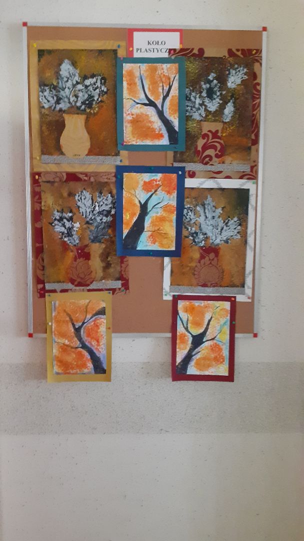 Na naszych pierwszych zajęciach wykonaliśmy dwie jesienne prace - "Jesienne drzewo" , w której wykorzystaliśmy stemplowanie farbą plakatową i gąbką oraz " Jesienny bukiet" gdzie wykorzystaliśmy odbijanie liści z wykorzystaniem farby akrylowej ,stemplowanie pędzelkiem z gąbki oraz elementy dekoracyjne z tapety.