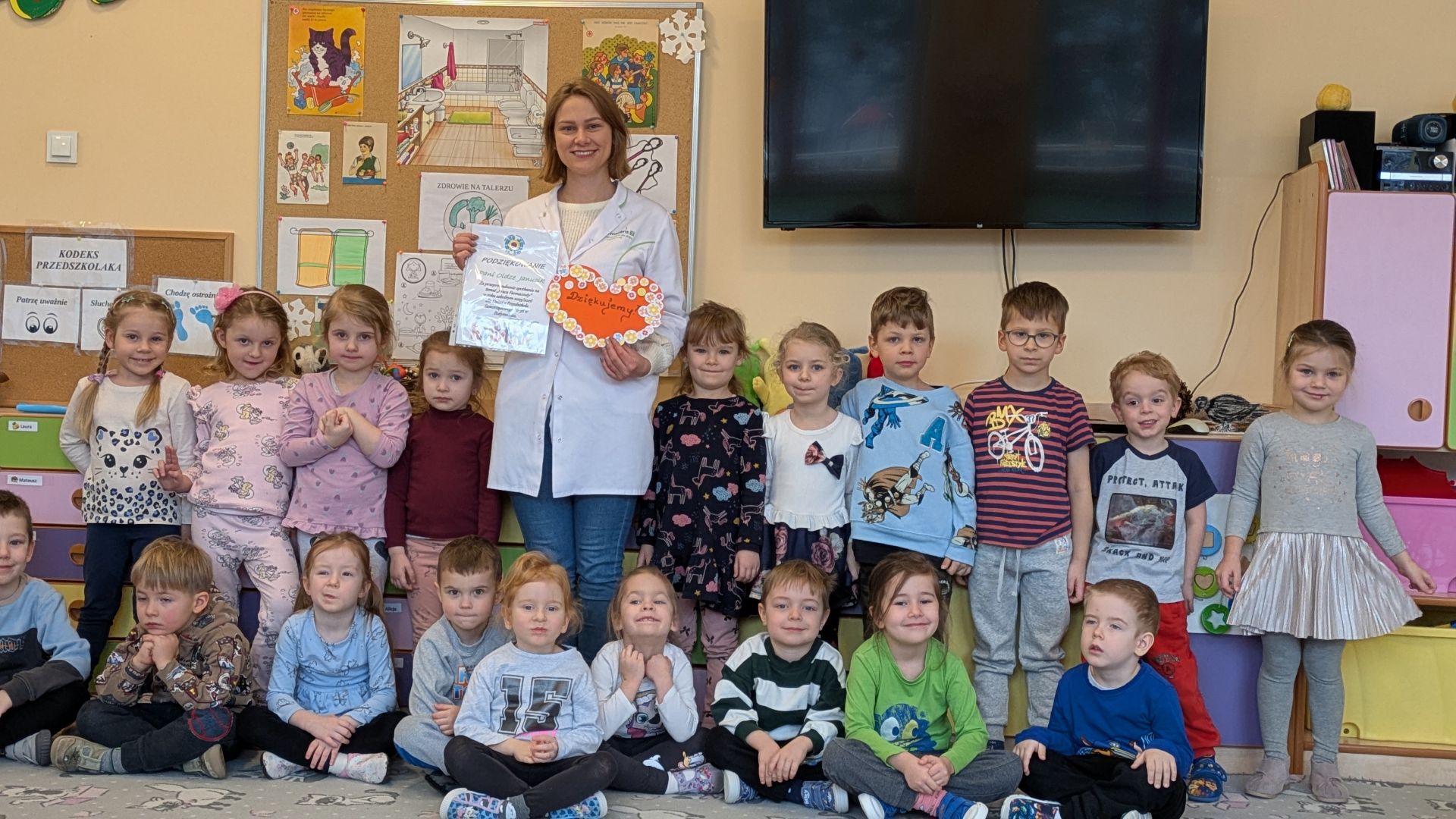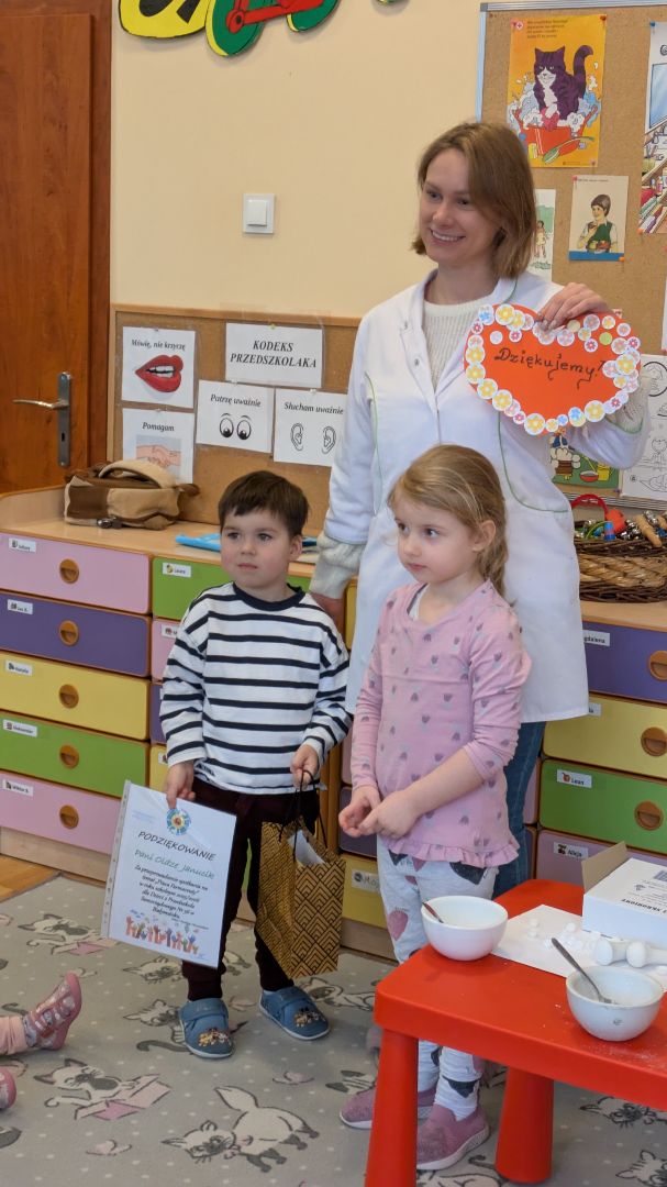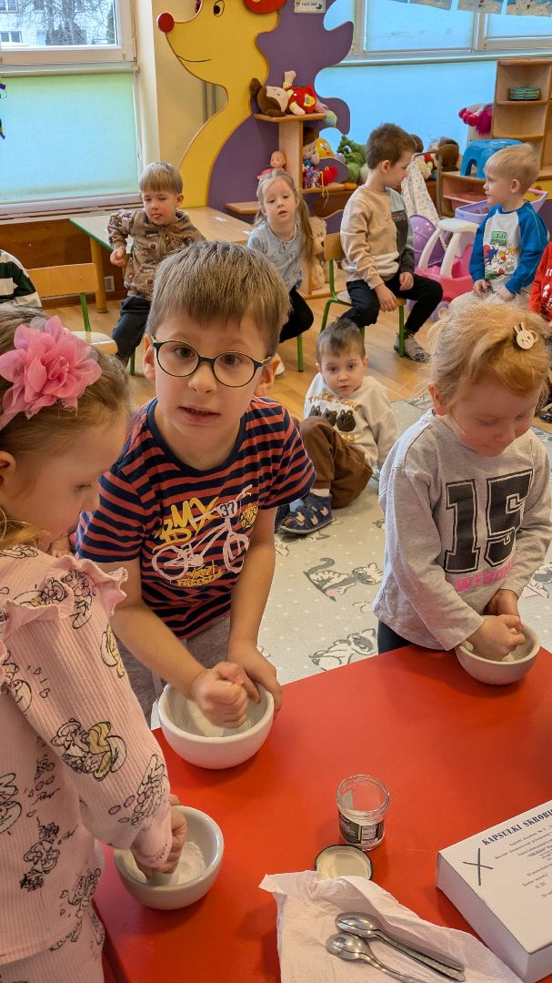 Spotkanie z farmaceutką to dla nas nowość. Dzieci panią z apteki uważały jako tylko sprzedawcę i to spotkanie to zmieniło:). Wspólnie z dziećmi zostały wykonane lekarstwa dla.misia i nie było to łatwe.