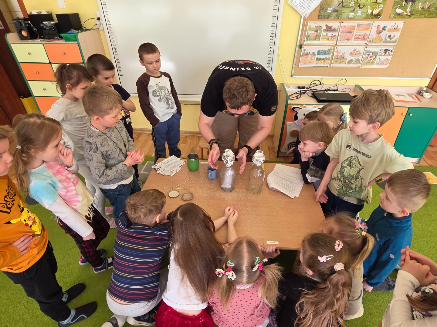 W naszej grupie gościliśmy eksperta, który przeprowadził warsztaty w ramach akcji edukacjnej „Biznes kontra smog”. Poprzez obrazowy przykład i doświadczenia dzieci dowiedziały się skąd bierze się smog, jak wpływa na nasze zdrowie i co możemy zrobić razem dla naszej planety. Serdecznie dziękujemy organizatorom akcji za podzielenie się wiedzą w przystępny i angażujący sposób.