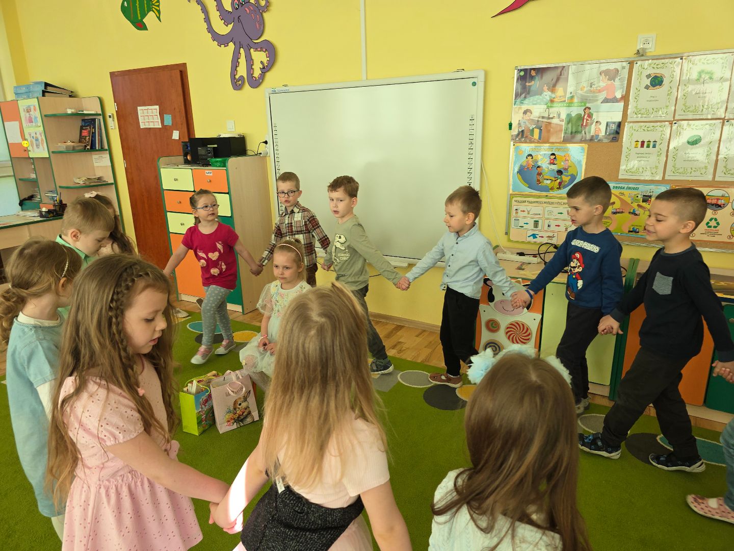 Cały tydzień poświęciliśmy doświadczeniom i eksperymentom, które pobudziły dziecięcą ciekawość i wyobraźnię. Sprawdzaliśmy, które przedmioty unoszą się na wodzie, a które toną. Dzieci poznały tajemnice wyporności w praktyce. Podczas „magicznego” doświadczenia sprawdzaliśmy, dlaczego pieprz błyskawicznie ucieka na brzeg talerza. Pobudzliśmy zmysł węchu wykonując prace plastyczne pachnącymi farbami (użyliśmy przypraw: kurkumy, gałki muszkatołowej, papryki słodkiej, cynamonu). Te doświadczenia zamieniły zwykłą ciekawość w prawdziwą pasję odkrywcy, owocując nowymi umiejętnościami współpracy i krytycznego myślenia.