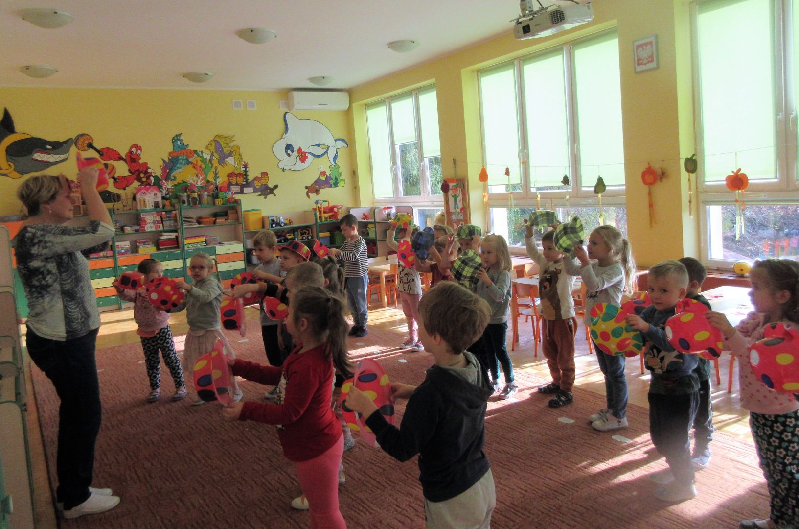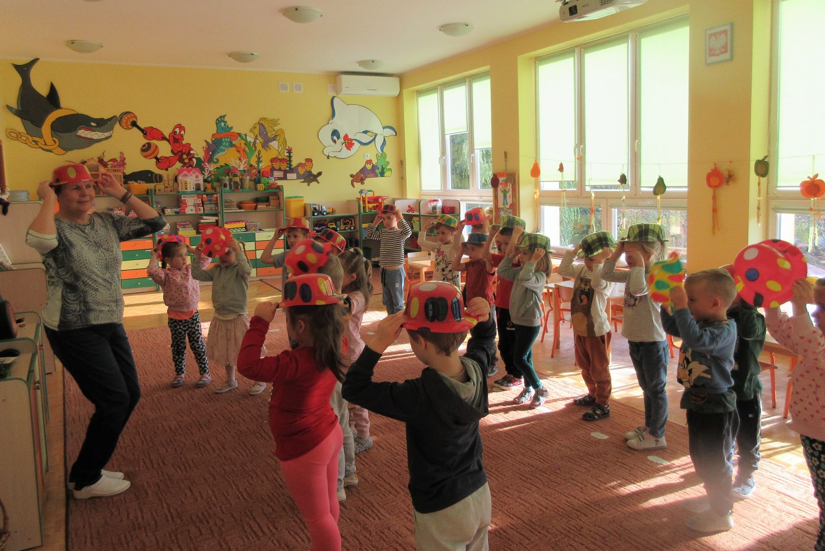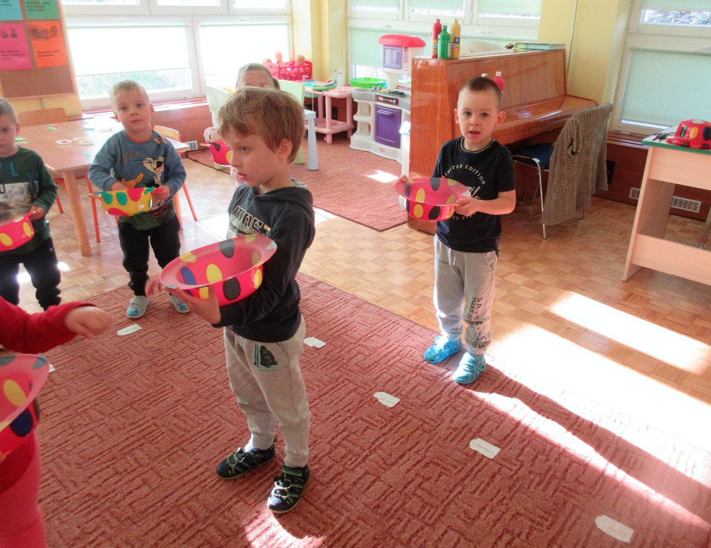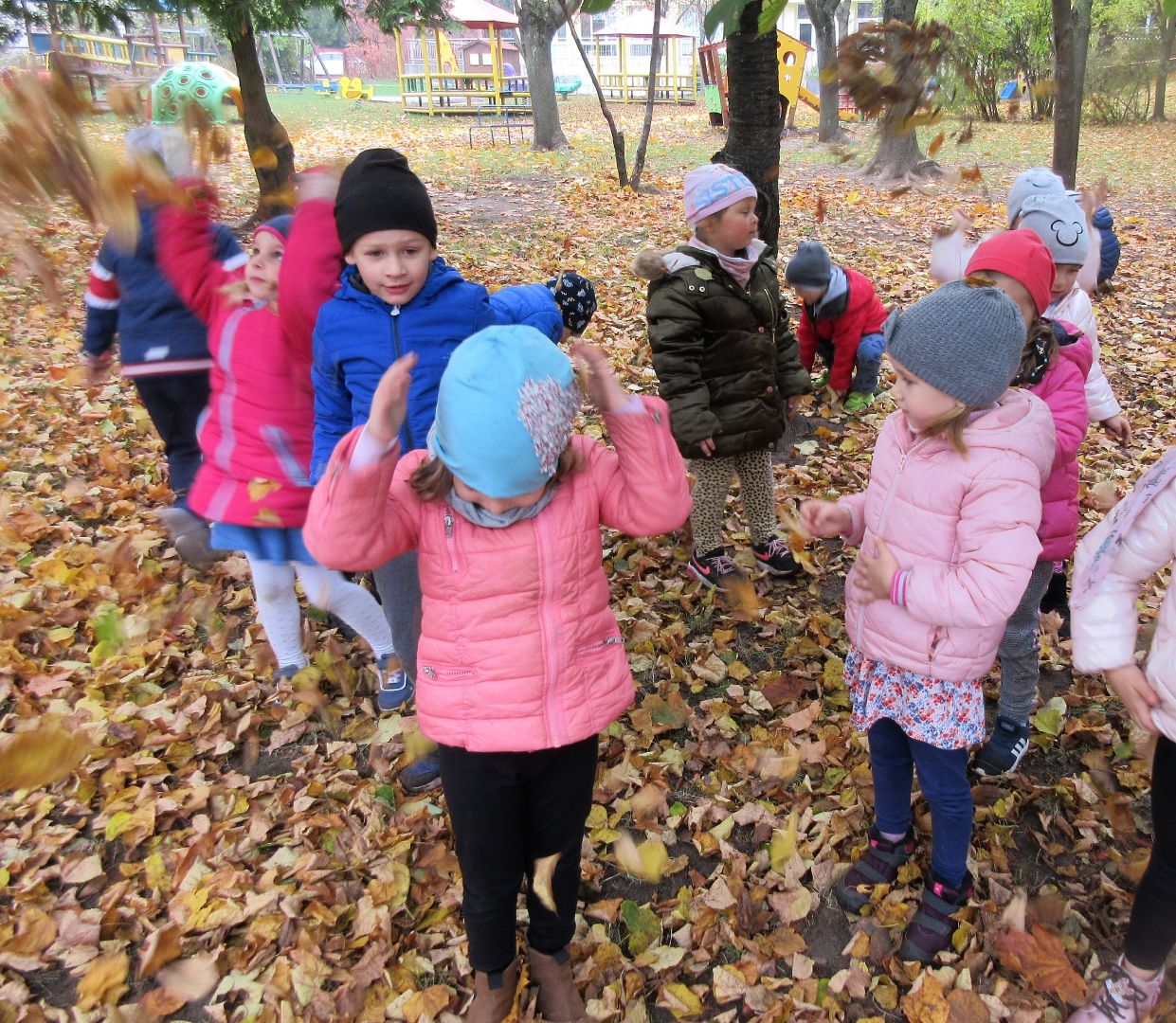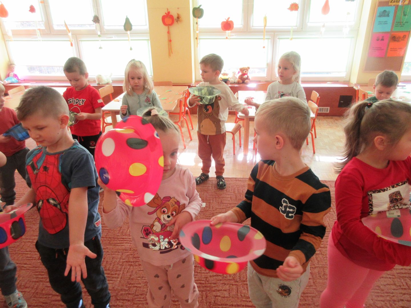 W minionym tygodniu dzieci poznawały i nazywały dary jesieni, dostrzegały ich znaczenie dla człowieka i ekosystemu, rozwijały umiejętności rytmiczno - słuchowe i ruchowo - koordynacyjne, dostrzegały piękno i bogactwo świata przyrody oraz nabywały doświadczeń logicznych i emocjonalnych potrzebnych do skonstruowania oraz rozumienia zasad gry - ściganki.
