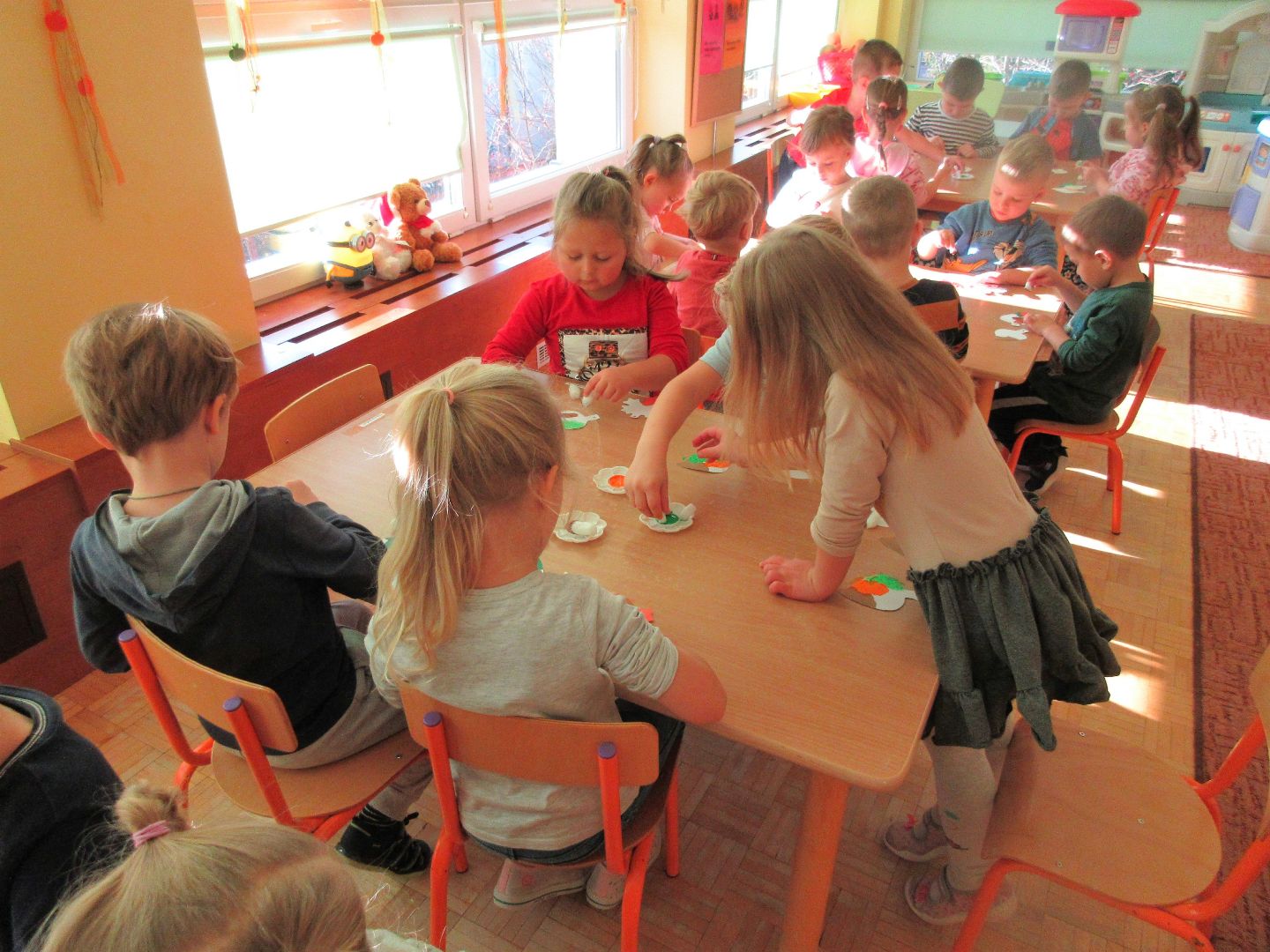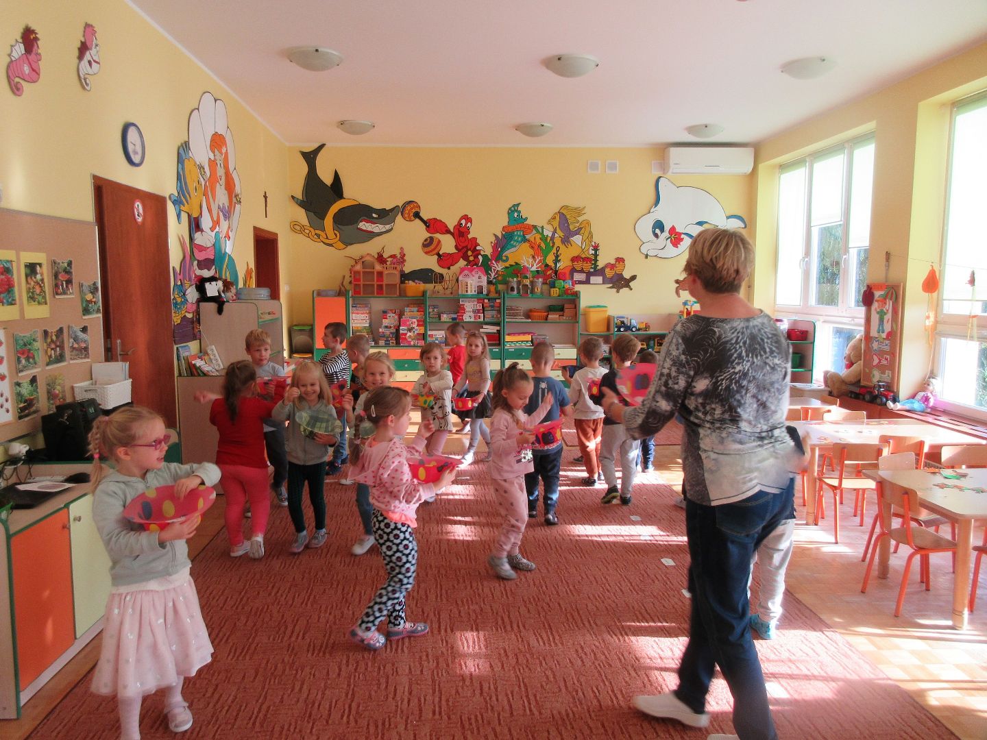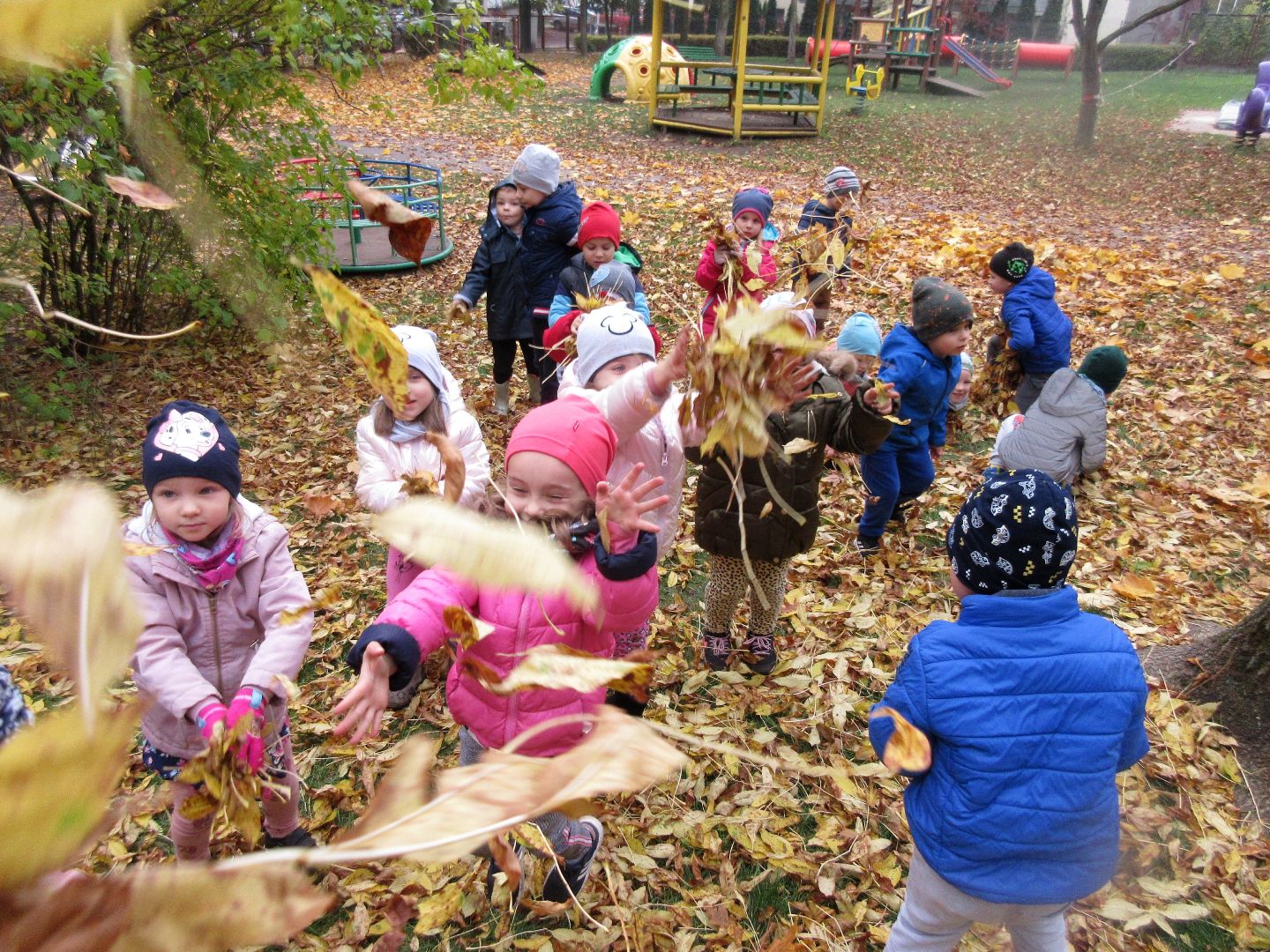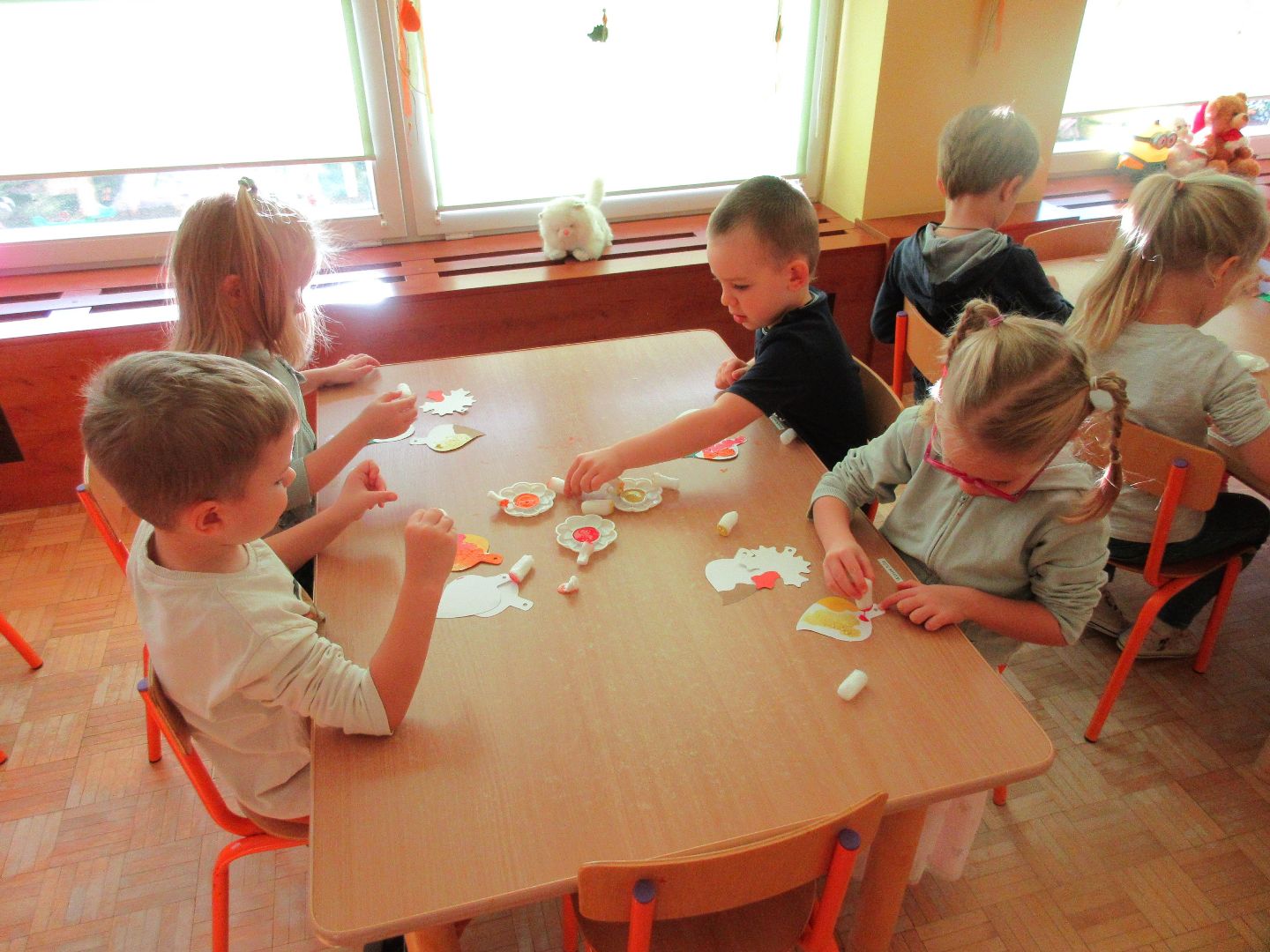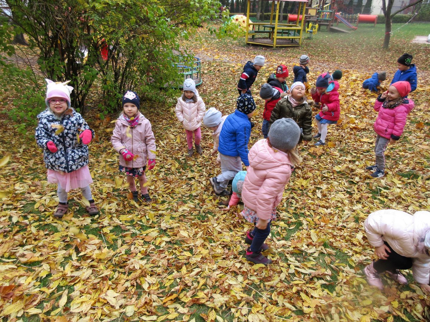 W minionym tygodniu dzieci poznawały i nazywały dary jesieni, dostrzegały ich znaczenie dla człowieka i ekosystemu, rozwijały umiejętności rytmiczno - słuchowe i ruchowo - koordynacyjne, dostrzegały piękno i bogactwo świata przyrody oraz nabywały doświadczeń logicznych i emocjonalnych potrzebnych do skonstruowania oraz rozumienia zasad gry - ściganki.