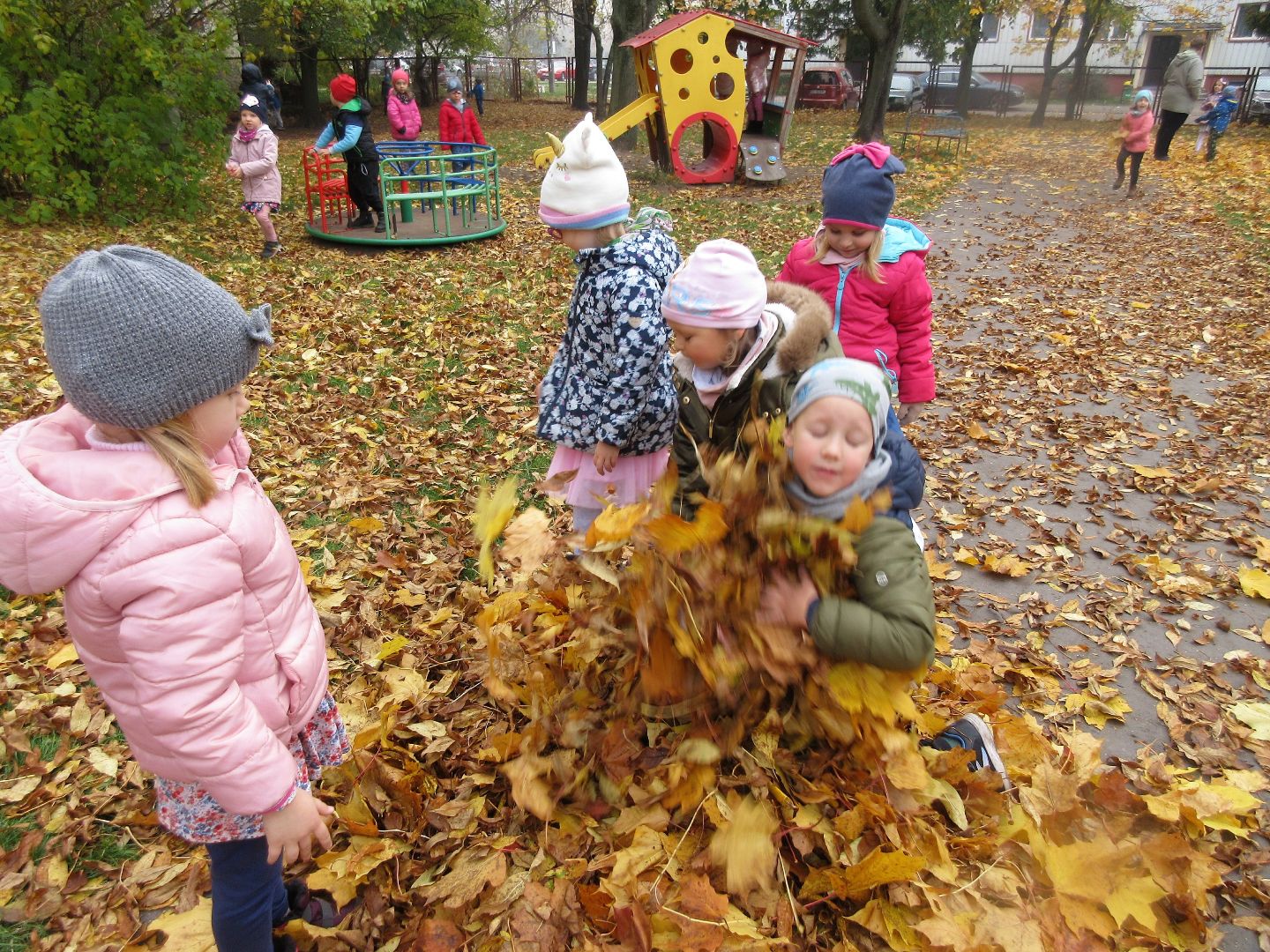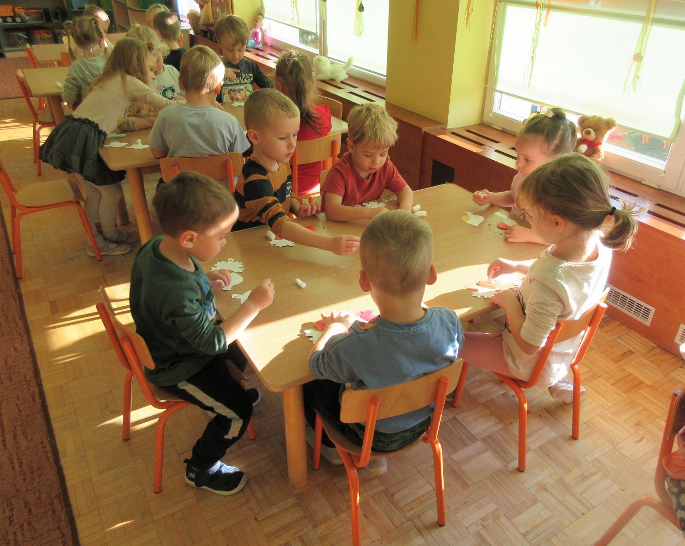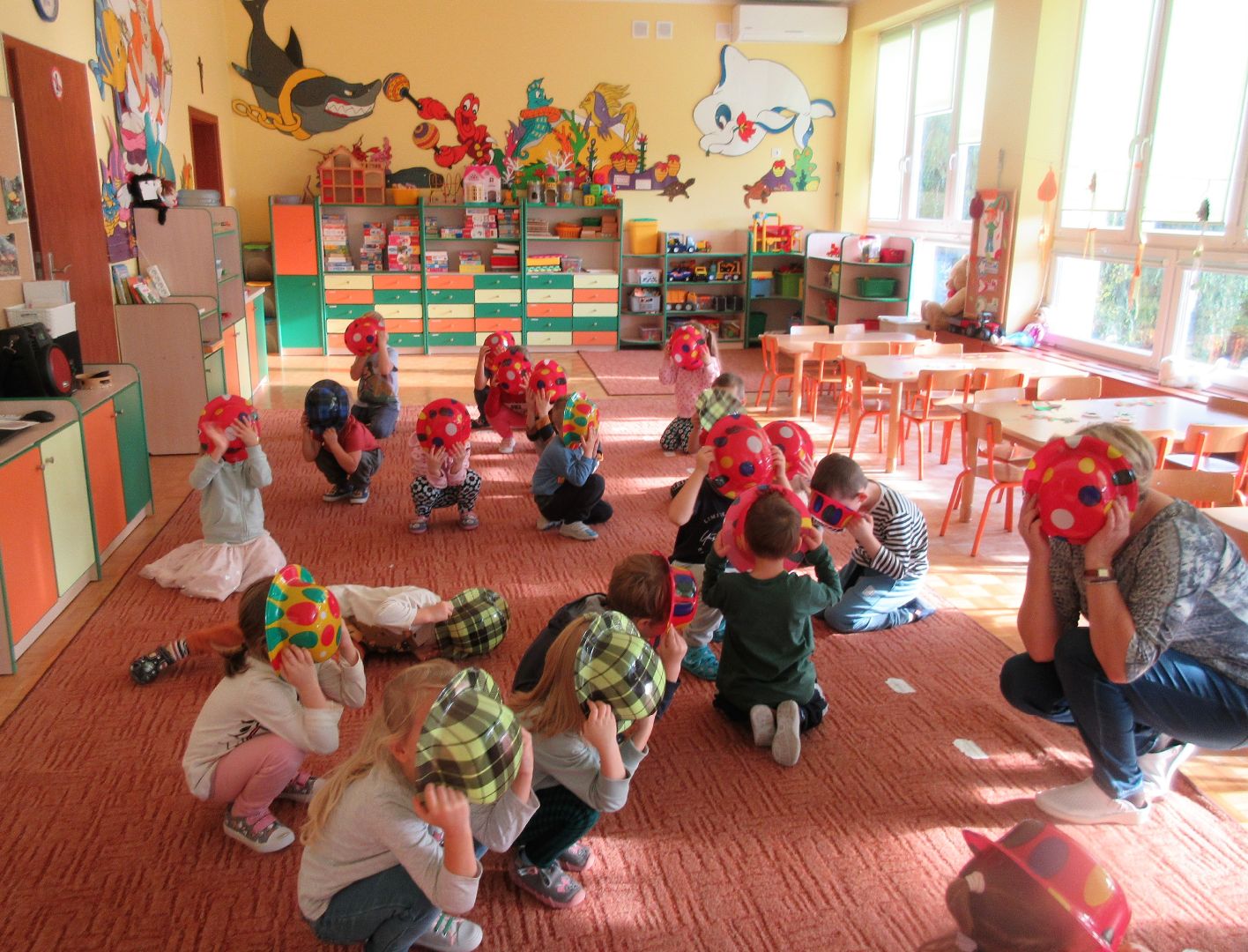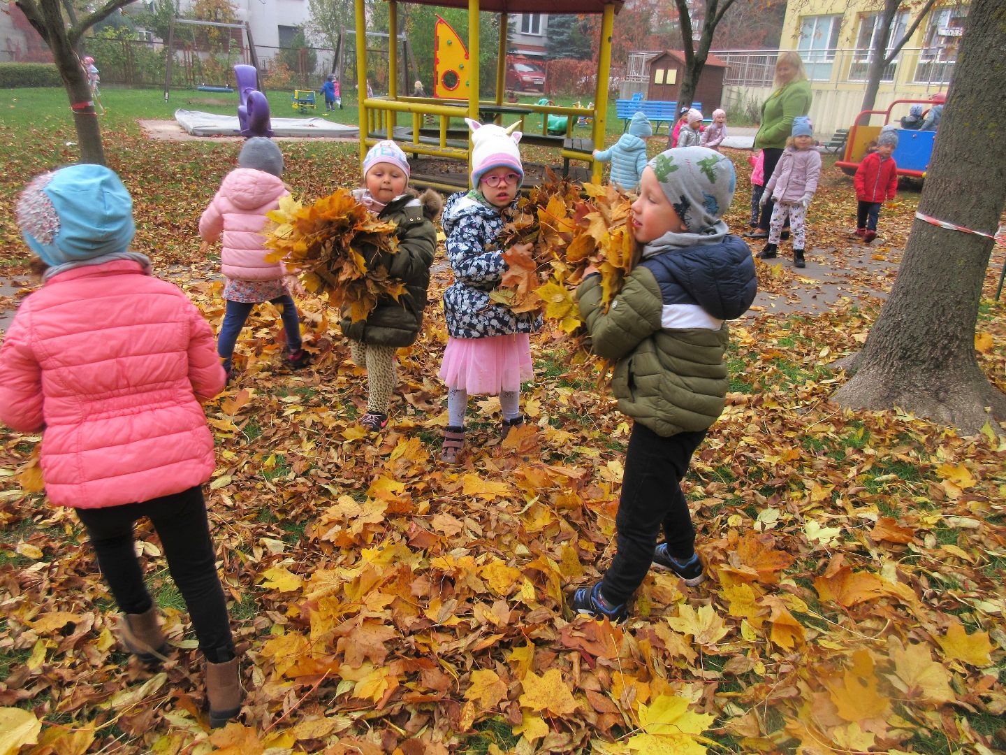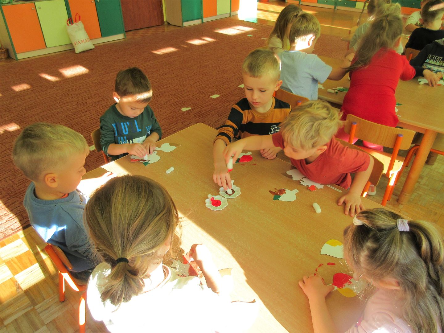 W minionym tygodniu dzieci poznawały i nazywały dary jesieni, dostrzegały ich znaczenie dla człowieka i ekosystemu, rozwijały umiejętności rytmiczno - słuchowe i ruchowo - koordynacyjne, dostrzegały piękno i bogactwo świata przyrody oraz nabywały doświadczeń logicznych i emocjonalnych potrzebnych do skonstruowania oraz rozumienia zasad gry - ściganki.
