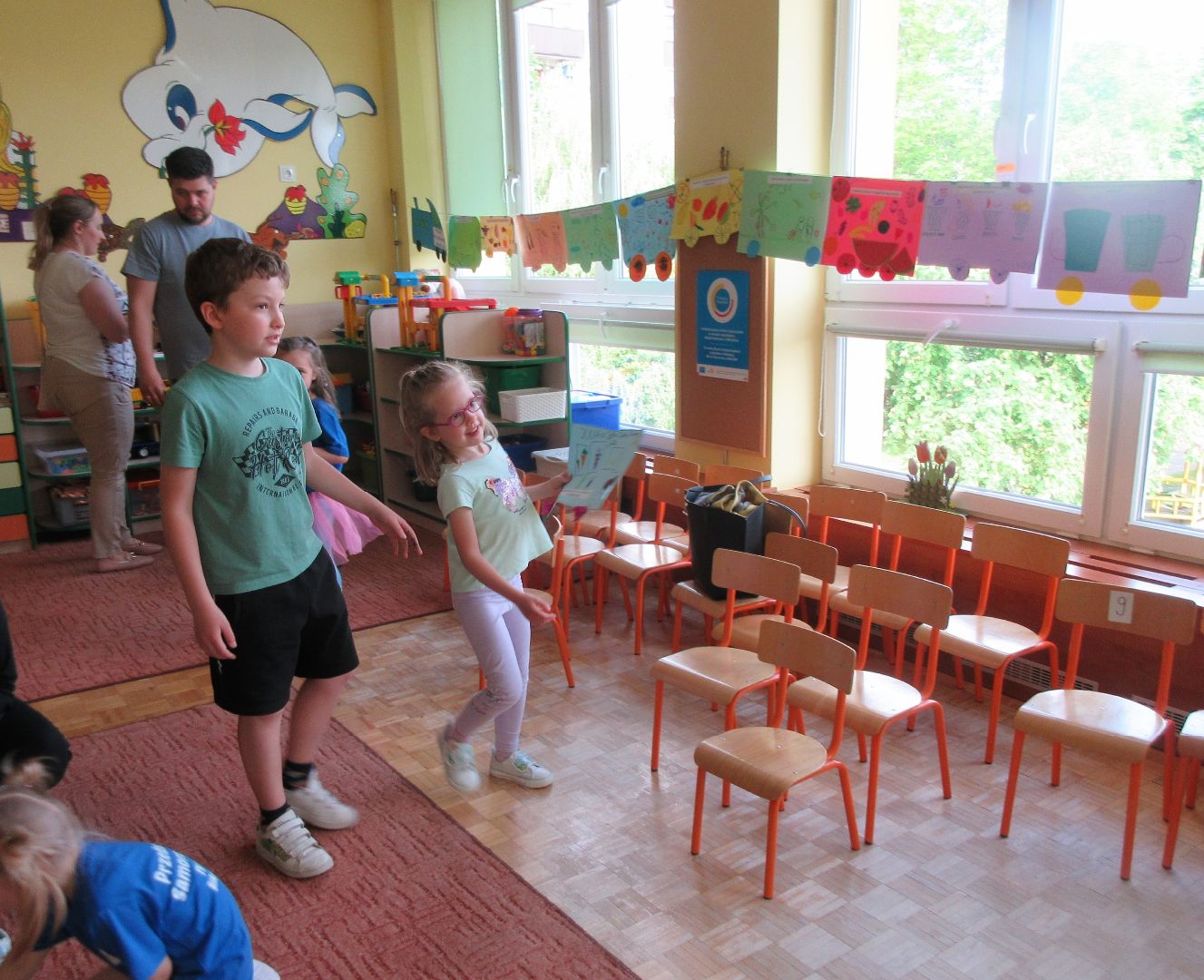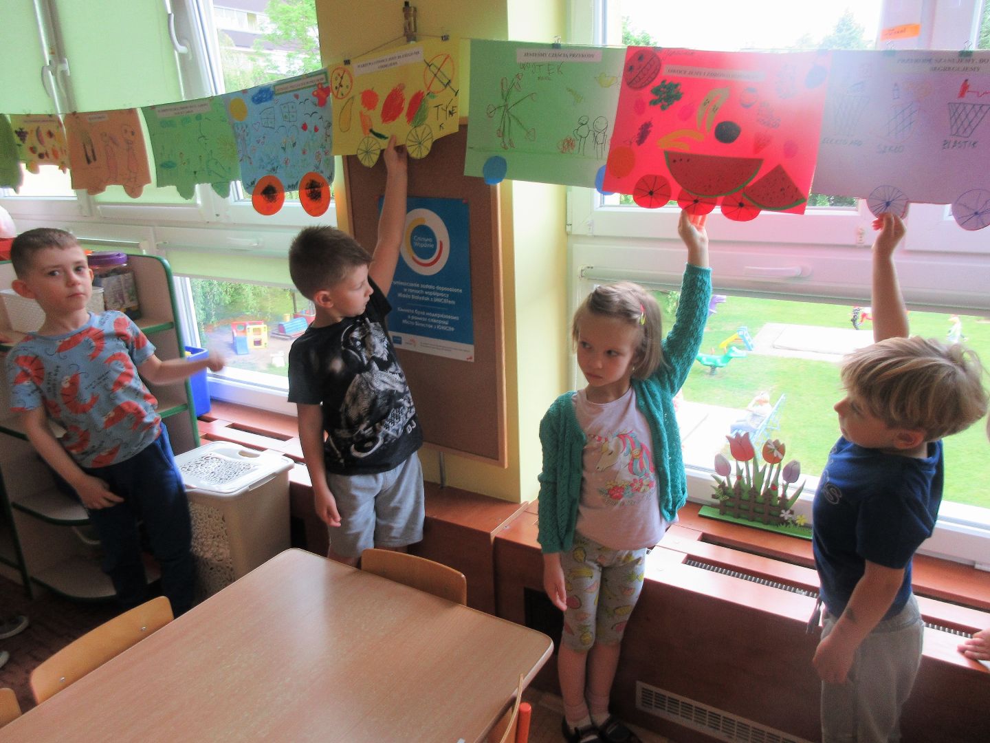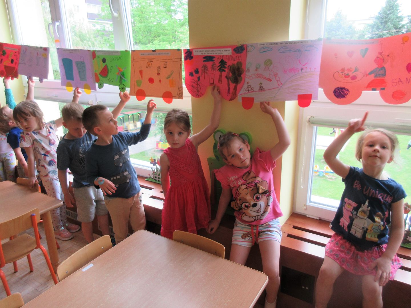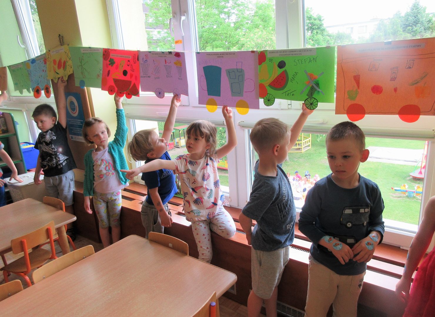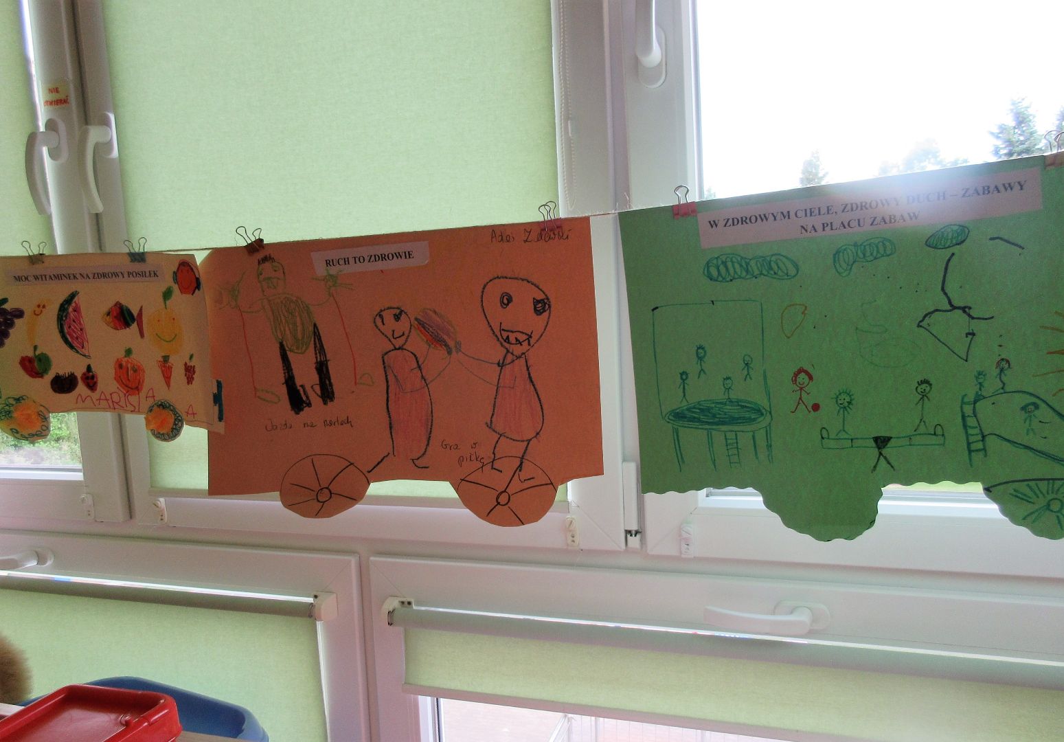 Na zakończenie innowacji pedagogicznej "Zdrowo, wesoło, kolorowo - w domu i w przedszkolu" dzieci wraz ze swoimi rodzicami wykonały wspólną pracę plastyczną promującą zdrowy tryb życia oraz dbanie o przyrodę i środowisko naturalne. Niech świadomość prozdrowotna dzieci zaowocuje w ich dalszym życiu właściwymi nawykami żywieniowymi, zamiłowaniem do sportu i aktywnego wypoczynku oraz szacunkiem do przyrody i środowiska naturalnego.