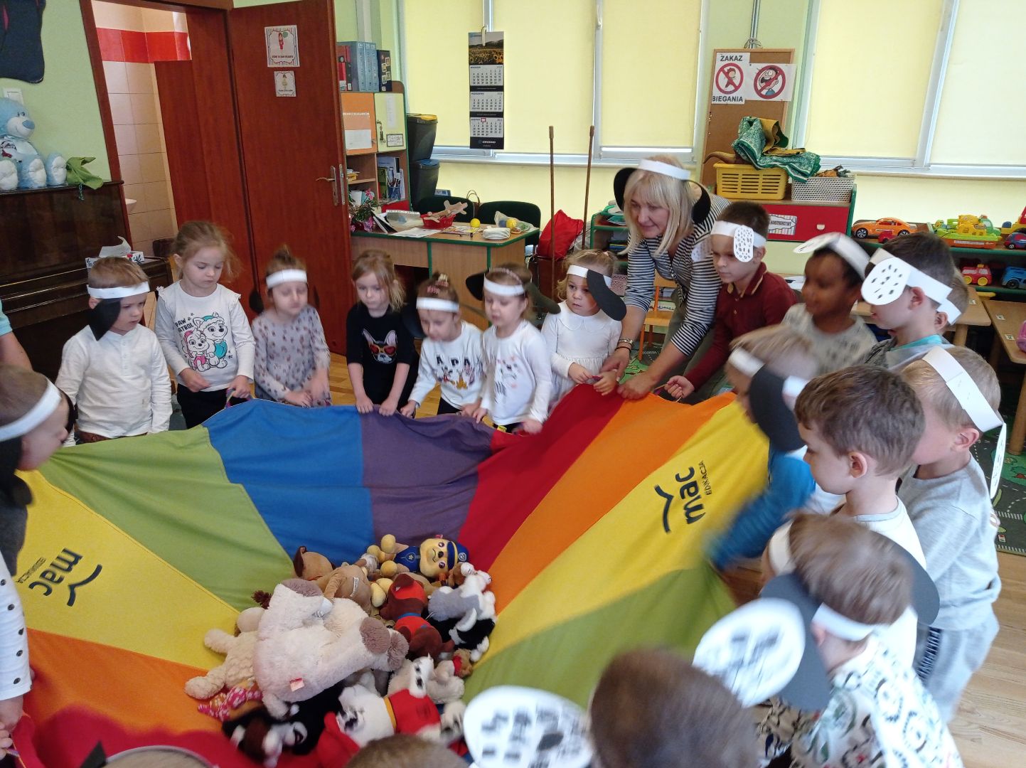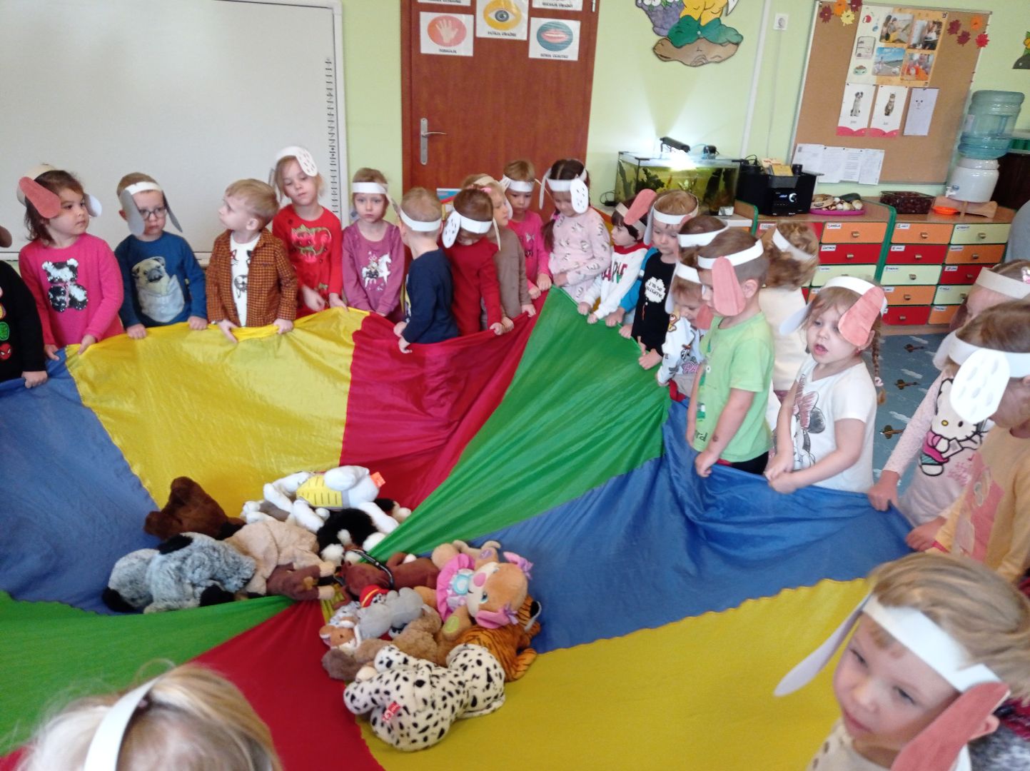 24.10.23 wspólnie z grupą I i II obchodziliśmy Dzień kundelka. Było wspaniale oglądaliśmy teatrzyk w wykonaniu nauczycielek Kłopoty Burka z podwórka", bawiliśmy się przy pieskowych piosenkach i braliśmy udział w konkursach.