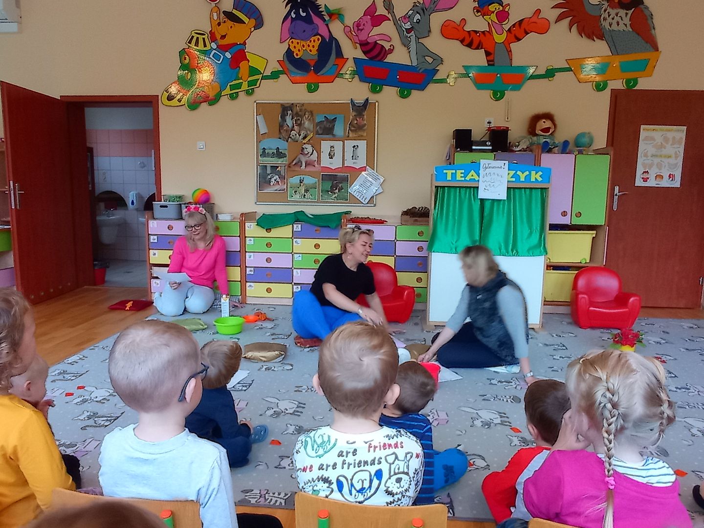 - oglądaliśmy teatrzyk w grupie I - Koty i psy w wykonaniu nauczycieli,