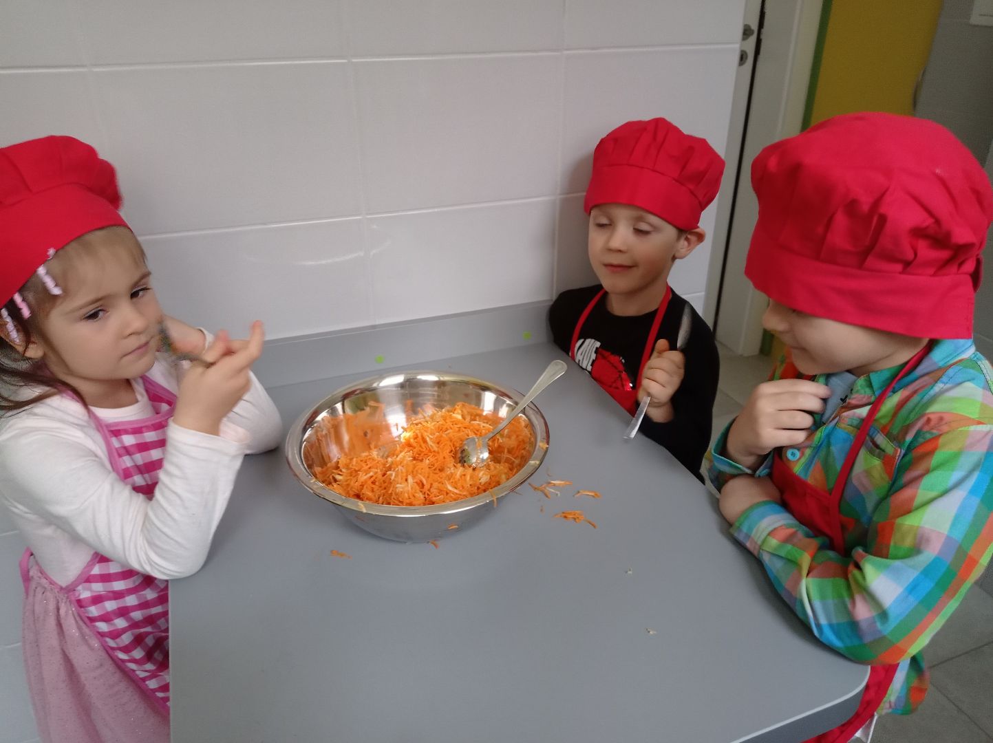 - pierwsze osoby były na kole kulinarnym i zrobiły surówkę z marchewki i jabłka - fotorelacja w zakładce koła,