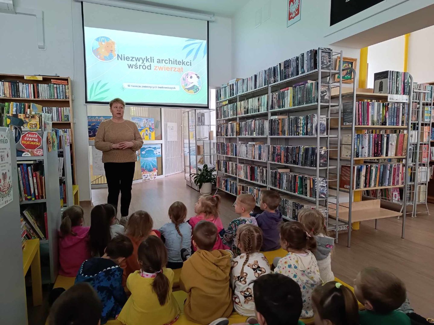 - byliśmy w bibliotece na zajęciach bibliotecznych- „Zwierzęta budują domy”