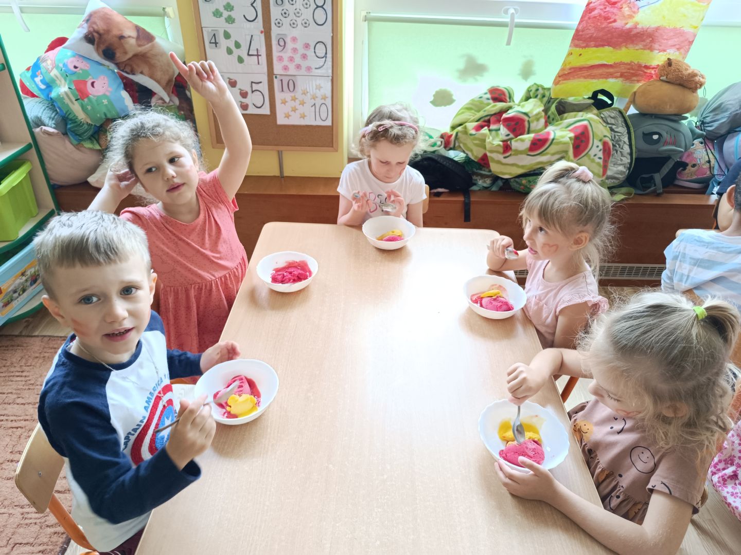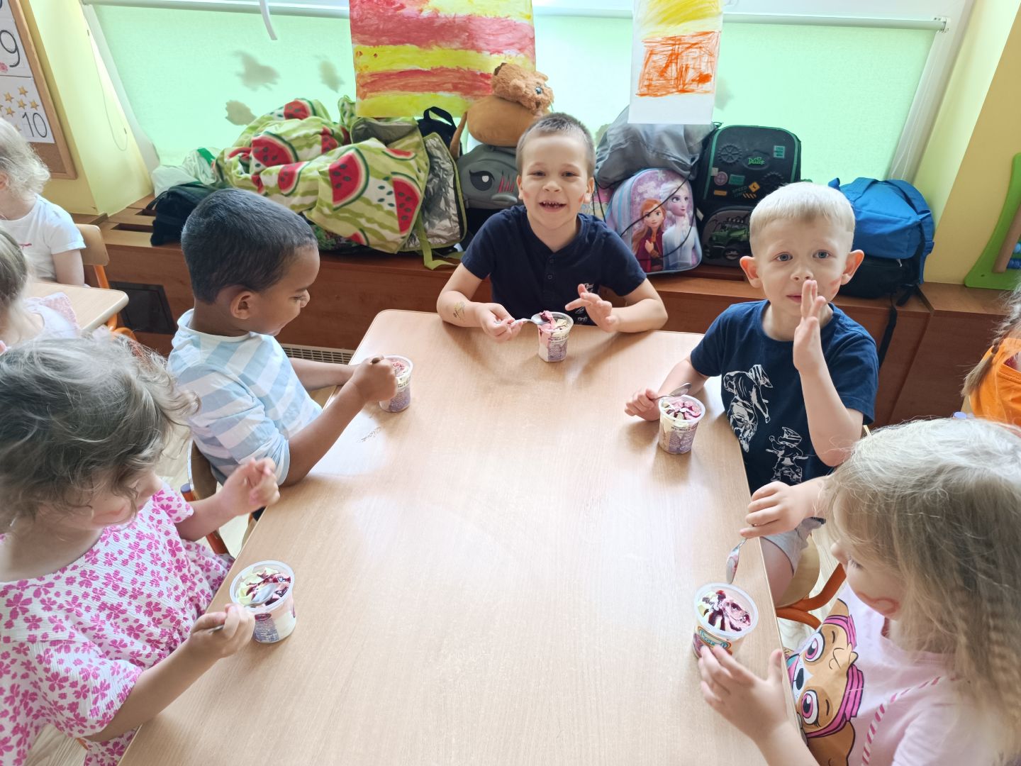 Dzień Dziecka to wspaniały i jeden z najważniejszych dni w roku. Jak zwykle było super: zabawa, taniec, piknik i lody. To co dzieciaki kochają. Razem wysłaliśmy również życzenia balonem w kosmos. Rysowaliśmy również portret przyjaciela i najlepszego kolegi z grupy oraz bawiliśmy się w ulubione gry i zabawy. Uczyliśmy się o tolerancji, szacunku do uczuć innych osób i szukaliśmy przeciwieństw.