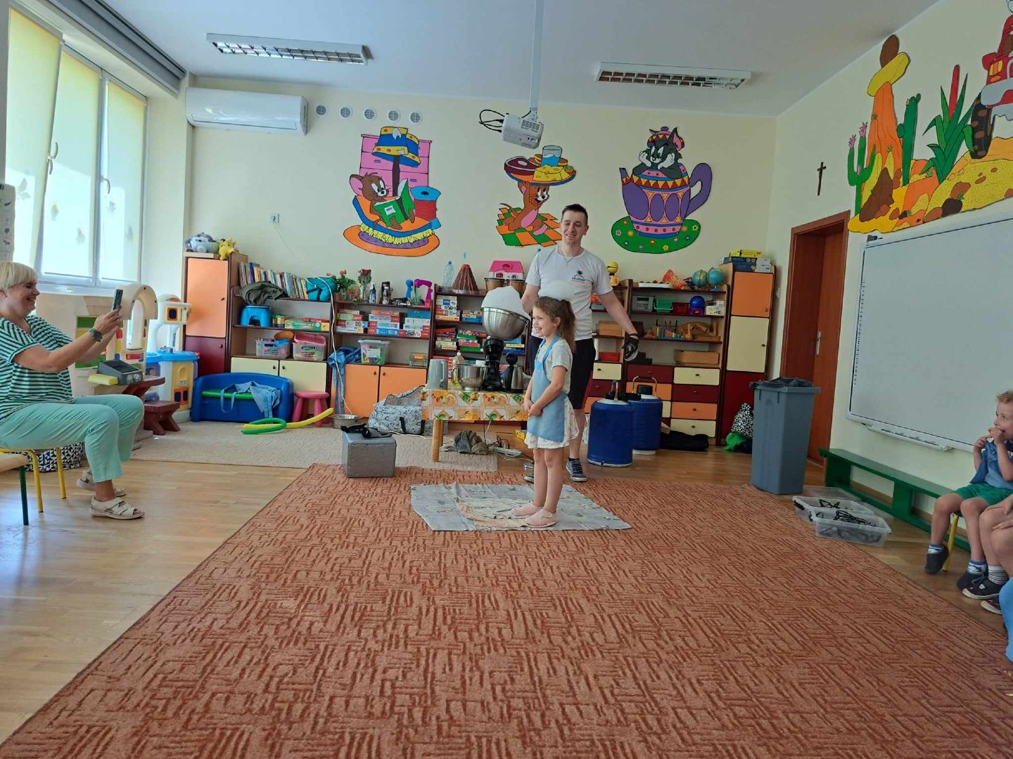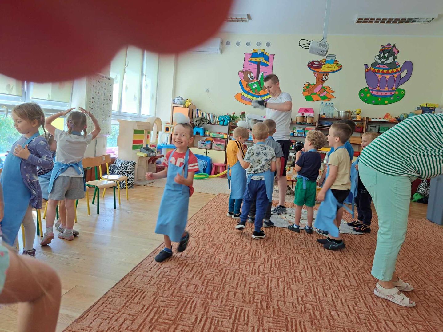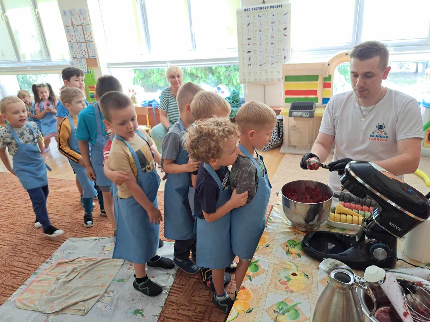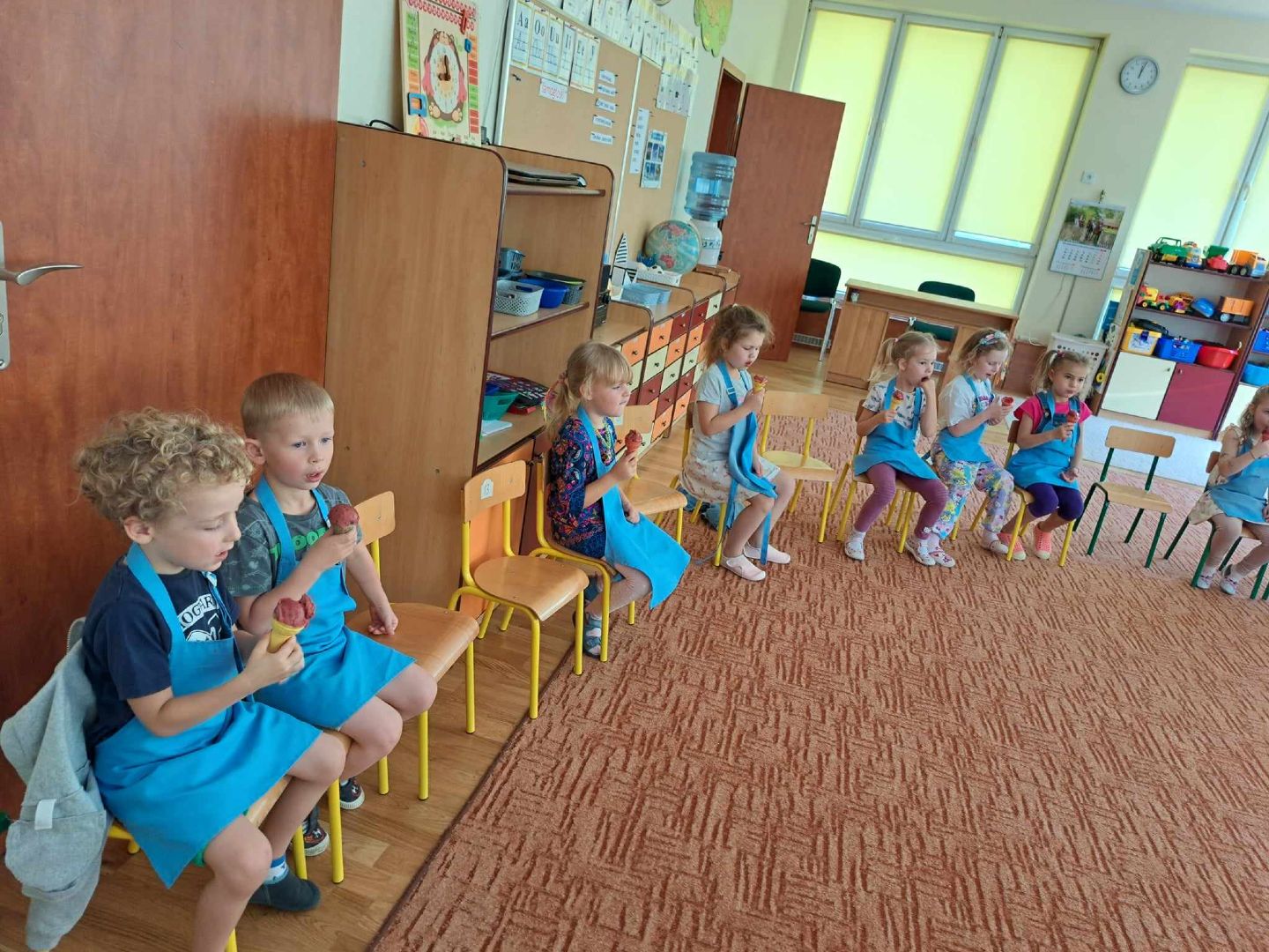 W piątek do naszego przedszkola zawitała kuchnia molekularna Podczas warsztatów dzieci poznały zjawisko sublimacji suchego lodu podczas którego wydziela się dwutlenek węgla. Z wykorzystaniem tej substancji napompuje się balon i powstało dużo „ciężkiego dymu” na podłodze. Zapoznaliśmy się także z możliwością wykorzystania suchego lodu w różnych obszarach działalności człowieka. Wspólnie odkrywaliśmy, czy mandarynka wsadzona do suchego lodu zamrozi się i czy uda nam się ją rozbić młotkiem. Na warsztatach wytworzono także suchą pianę i zrobiono dymiące fryzury. Na koniec przy pomocy dzieci, ukręcono pyszne lody, które z apetytem zajadaliśmy.