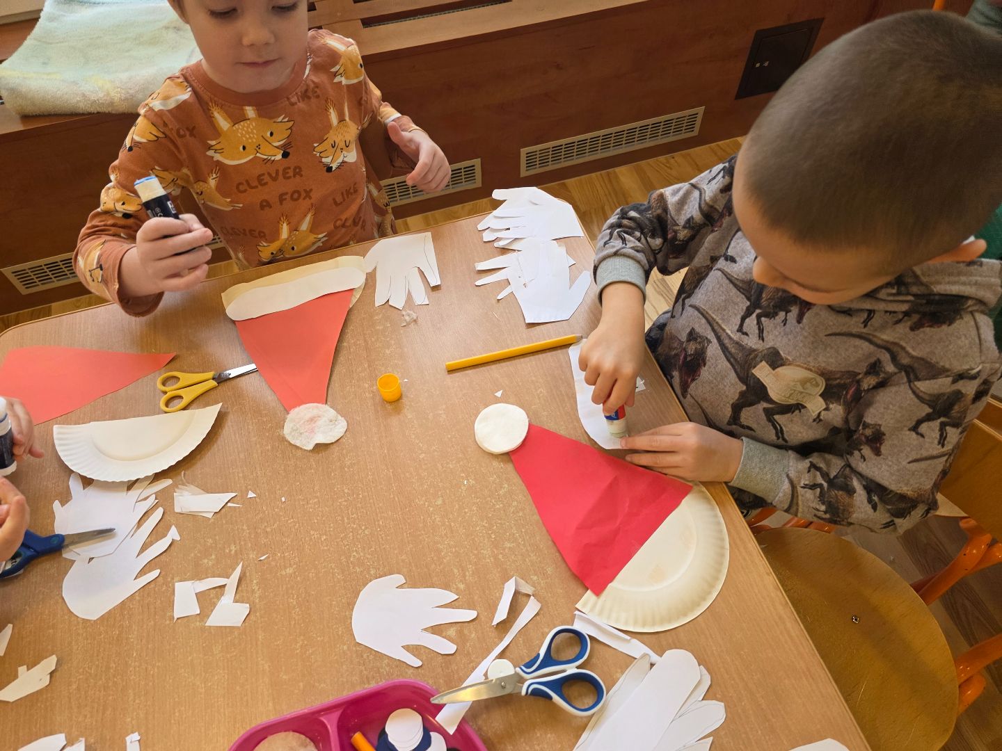 - wykonaliśmy prace plastyczne z papieru: „ Mikołaj”, „Renifer”,
