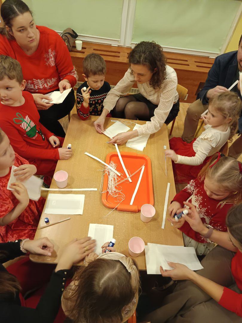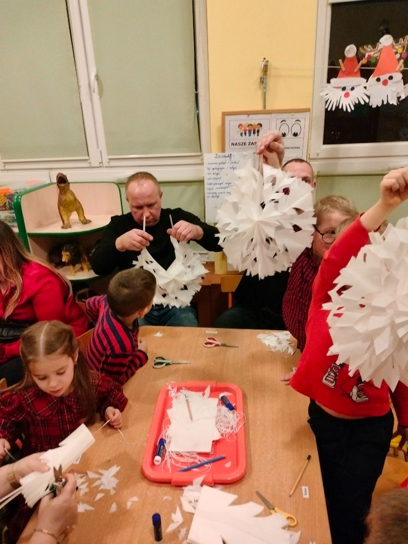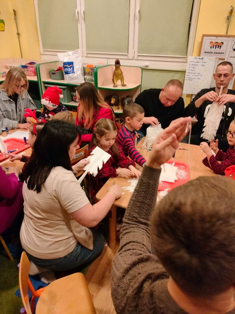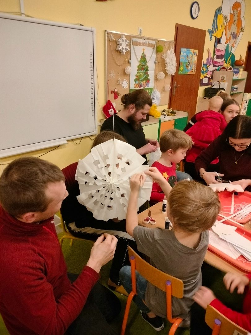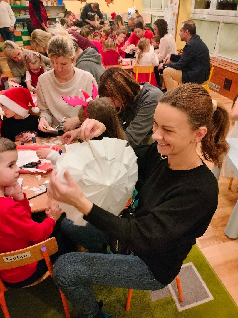 W naszej grupie odbyły się wspaniałe warsztaty bożonarodzeniowe z rodzicami. Dzieci przygotowały krótki występ, podczas którego śpiewały świąteczne piosenki i recytowały wiersze. Po części artystycznej wszyscy razem, rodzice i dzieci, tworzyli piękne gwiazdy