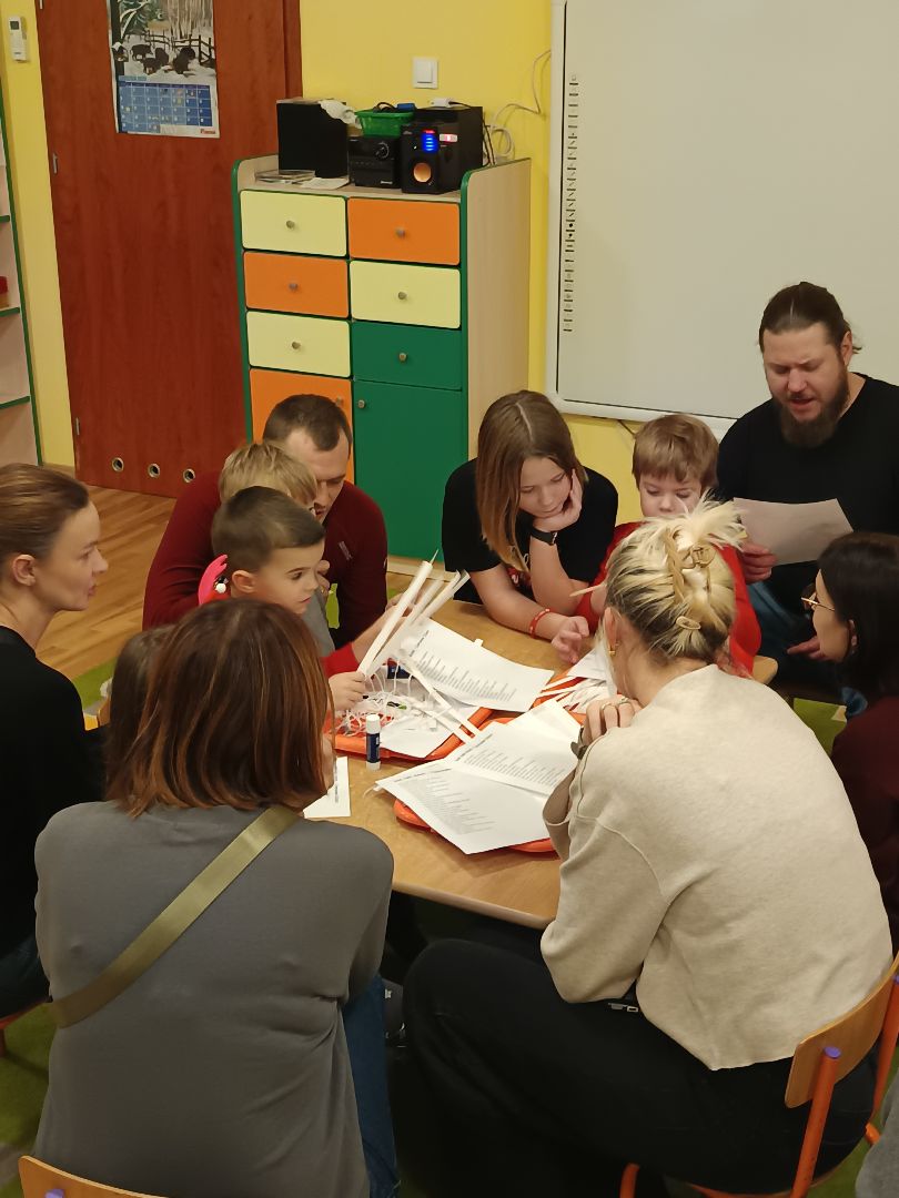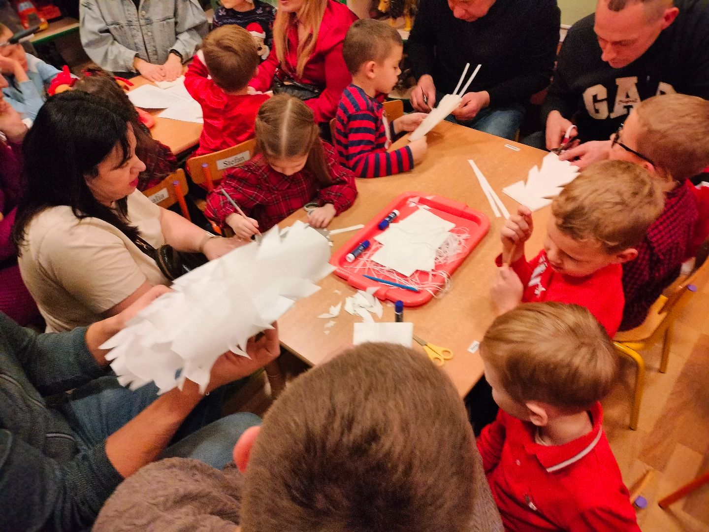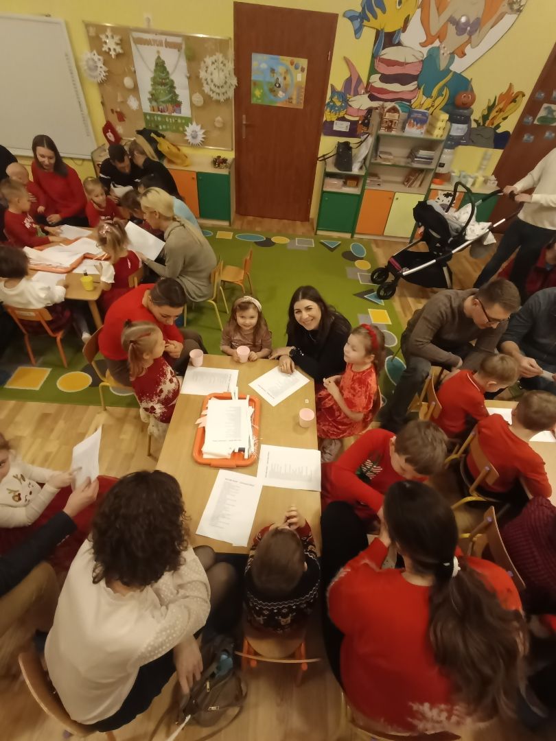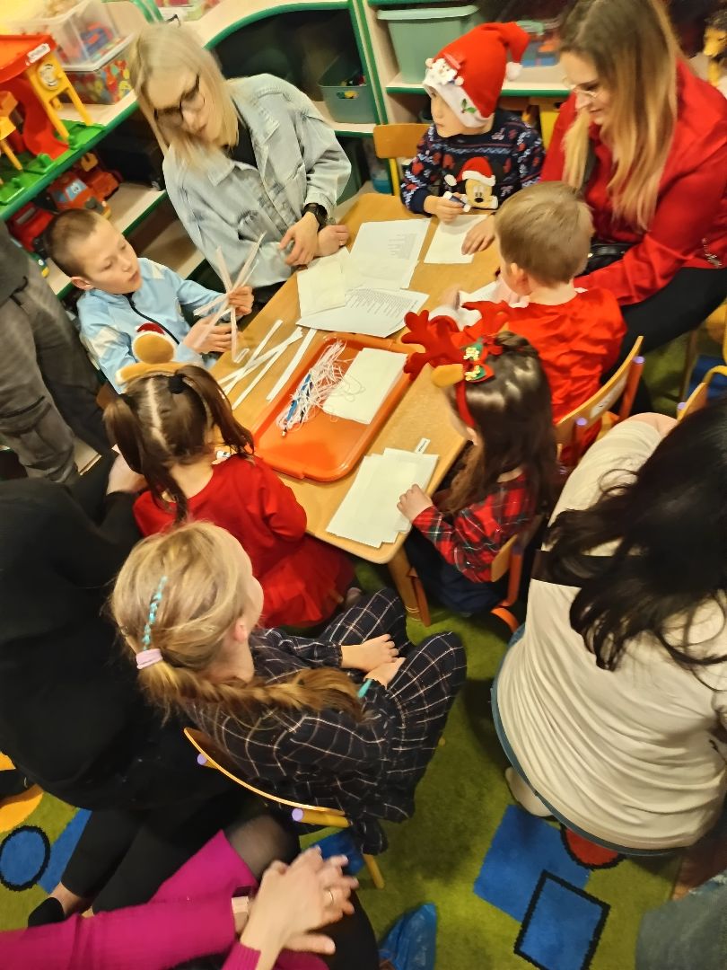 W naszej grupie odbyły się wspaniałe warsztaty bożonarodzeniowe z rodzicami. Dzieci przygotowały krótki występ, podczas którego śpiewały świąteczne piosenki i recytowały wiersze. Po części artystycznej wszyscy razem, rodzice i dzieci, tworzyli piękne gwiazdy
