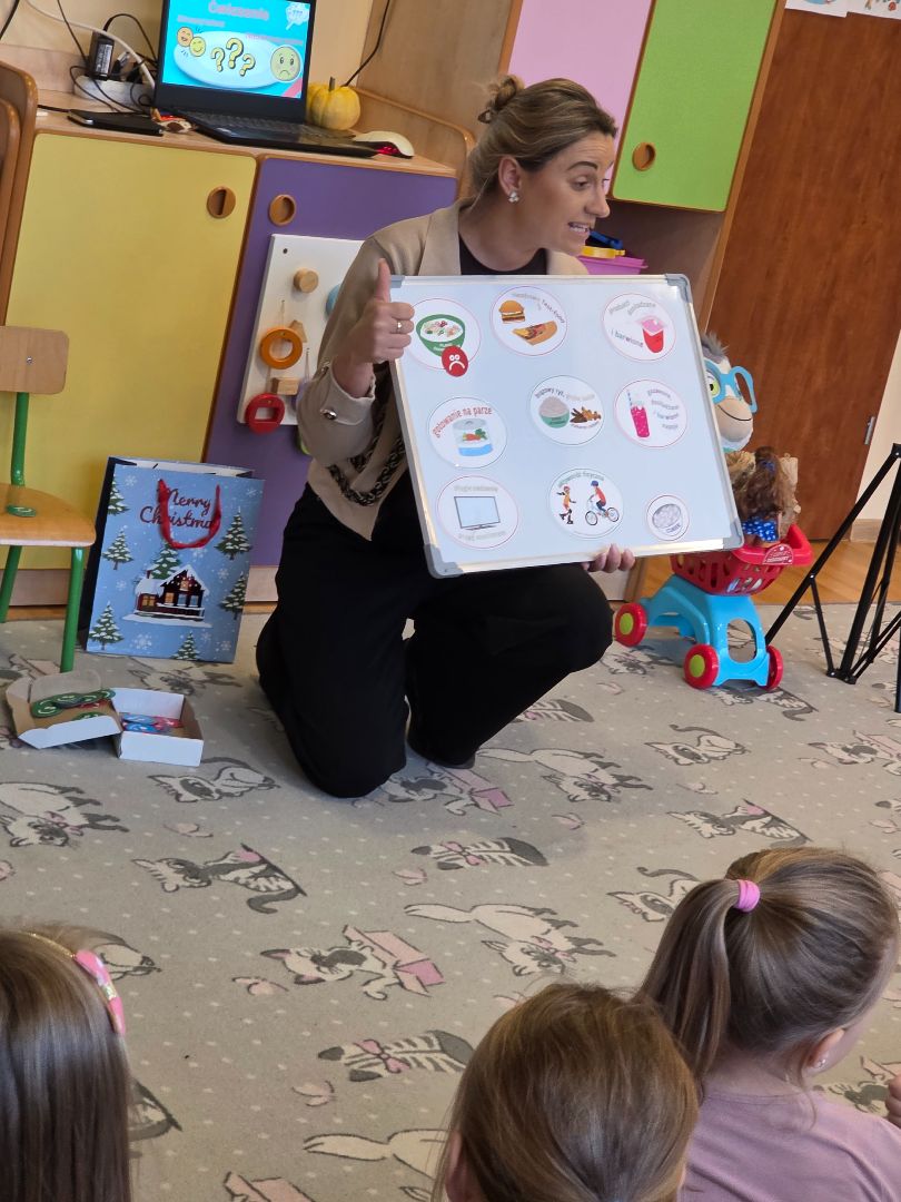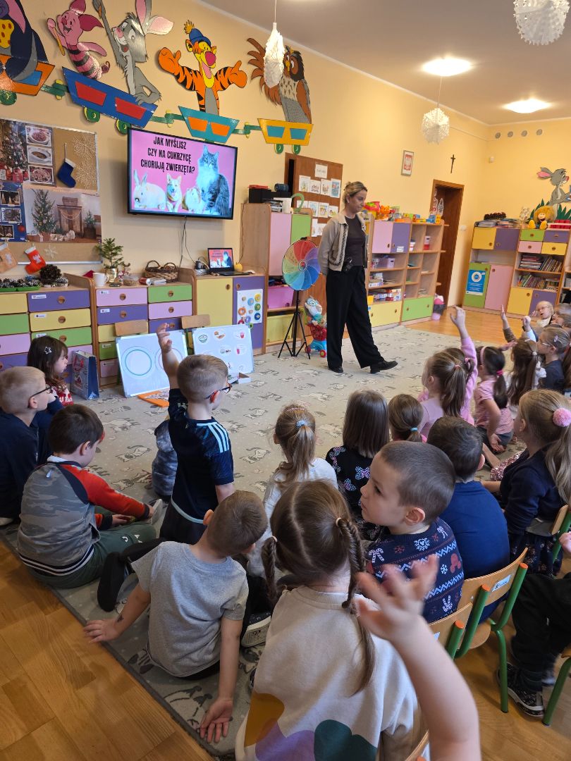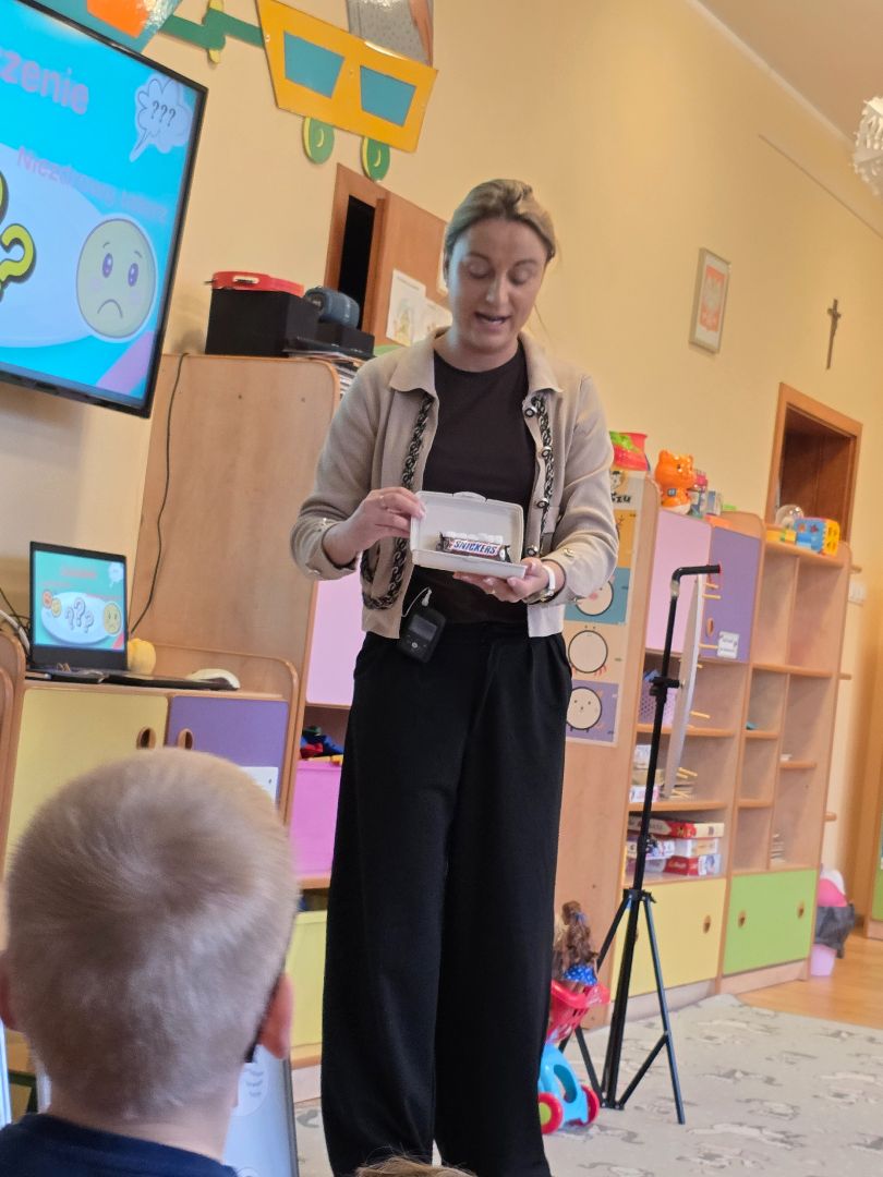 Czy przedszkolak może zostać ekspertem od zdrowego stylu życia? Jak najbardziej! W tym tygodniu nasze przedszkole dołączyło do grona placówek z województwa podlaskiego, biorąc udział w kampanii edukacyjnej „Miesiąc Wiedzy o Cukrzycy". Poprzez zabawę i wspólne odkrywanie tajników zdrowego odżywiania, nasi podopieczni dowiedzieli się, jak dbać o siebie i o innych. Przedszkolakom bardzo spodobała się zabawa w „Cukrowego detektywa”- dzieci sprawdzały skład produktów i przeliczały gramy na kostki cukru. Kluczowym elementem kampanii była nauka dokonywania świadomych wyborów żywieniowych. Jesteśmy dumni, widząc, z jaką pewnością dzieci stawiały na owoce, warzywa i wodę.