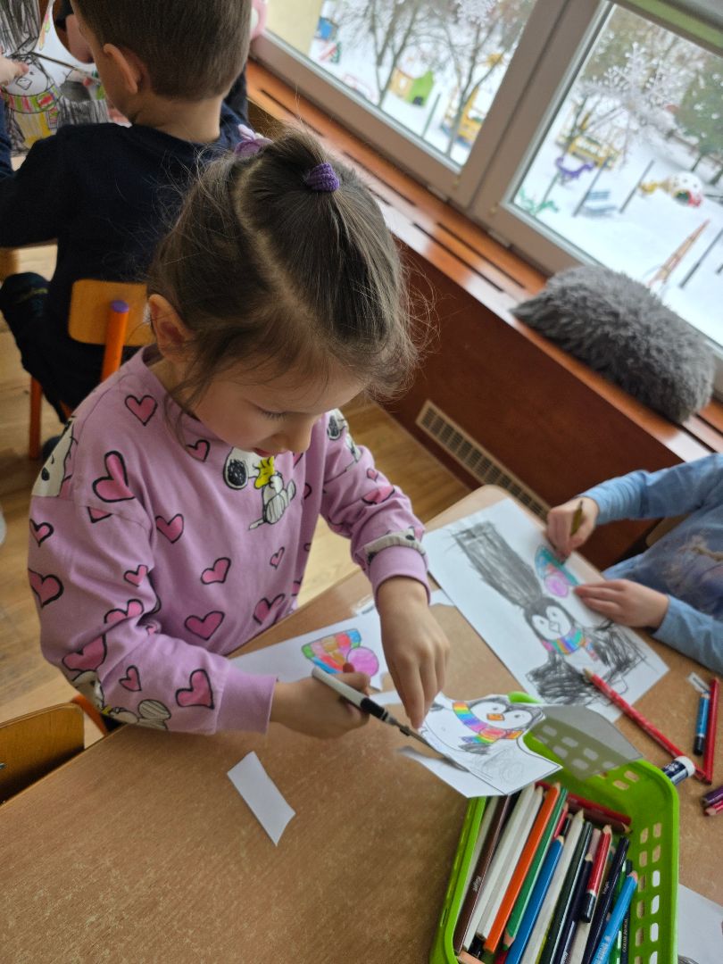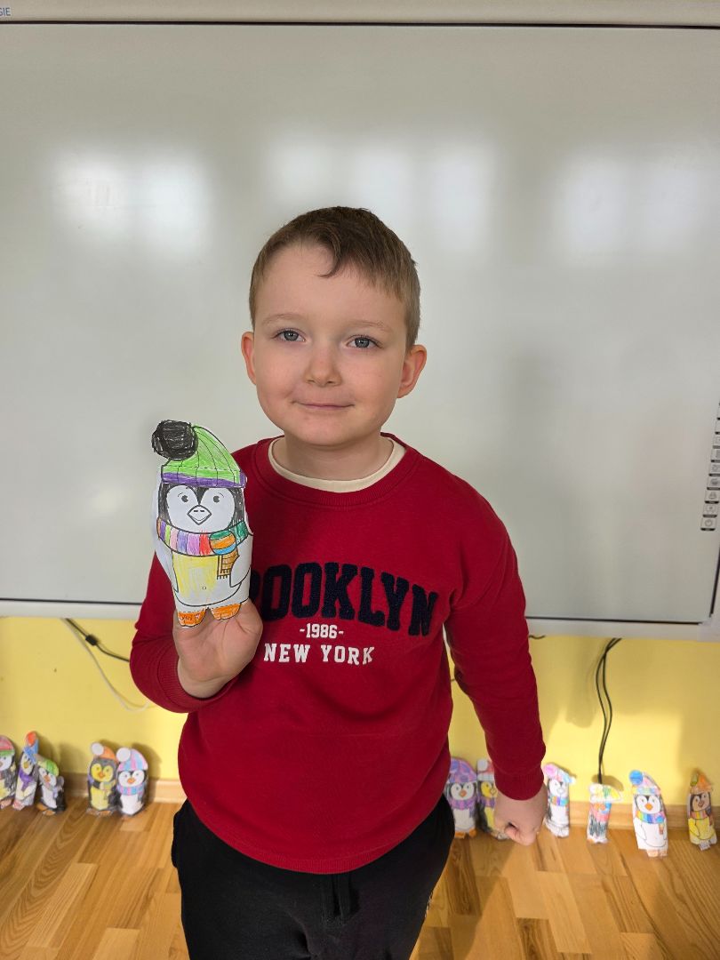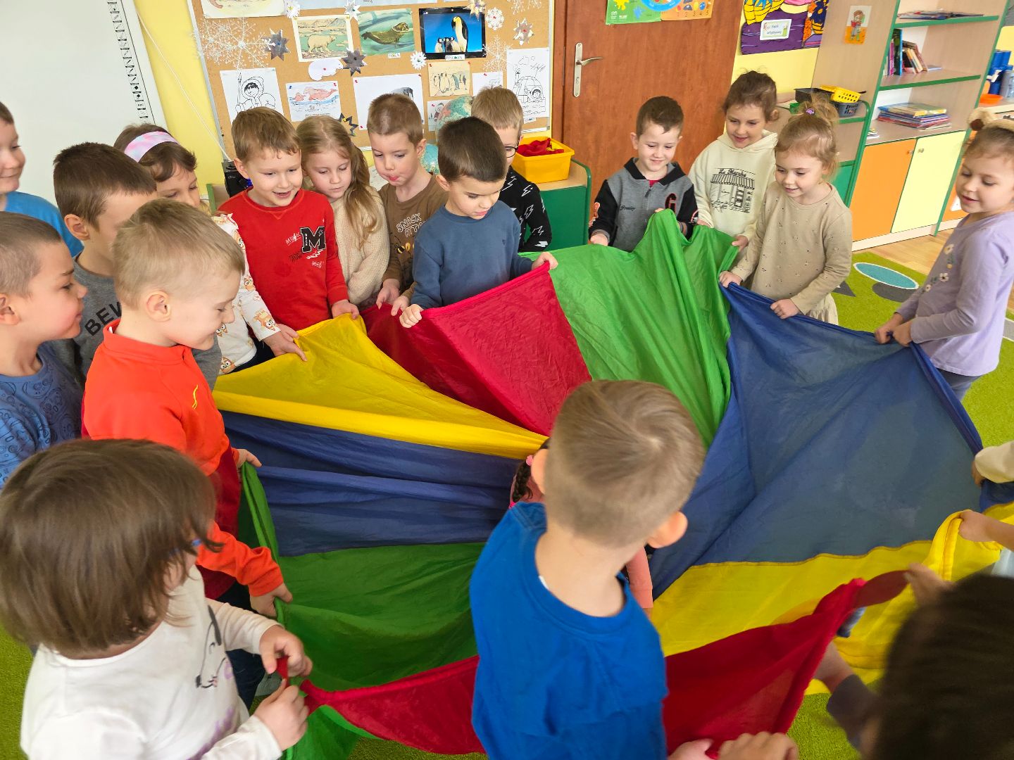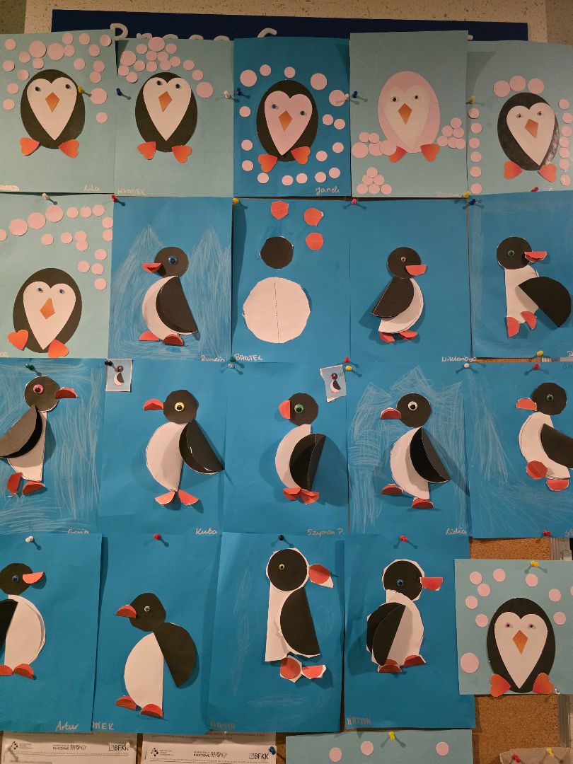 W tym tygodniu nasze przedszkolaki wyruszyły w podróż na mroźną Antarktydę. Podczas zajęć dzieci odkrywały tajemnice najzimniejszego kontynentu świata, poznając życie zwierząt i surowy klimat. Dzieci poznały nową zabawę „Pingwinek”, utrwalały orientację przestrzenną oraz kierunki: do przodu, do tyłu, w prawo, w lewo. Wykonały urocze pingwiny z papieru wymagające dużej precyzji, umiejętności wycinania. Grały na instrumentach perkusyjnych do utworu pt.: „Fiesta Aymara”. Kolorowa chusta animacyjna posłużyła im do stworzenia wielkiej, bezpiecznej „zamieci”. Przedszkolacy współpracowali ze sobą, falując materiałem, podrzucając piłkę -„kulę śniegową”. Dopełnieniem tej mroźnej przygody było wyjście na podwórko, gdzie dzieci mogły poczuć klimat prawdziwej Antarktydy na własnej skórze:)