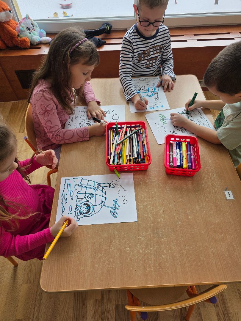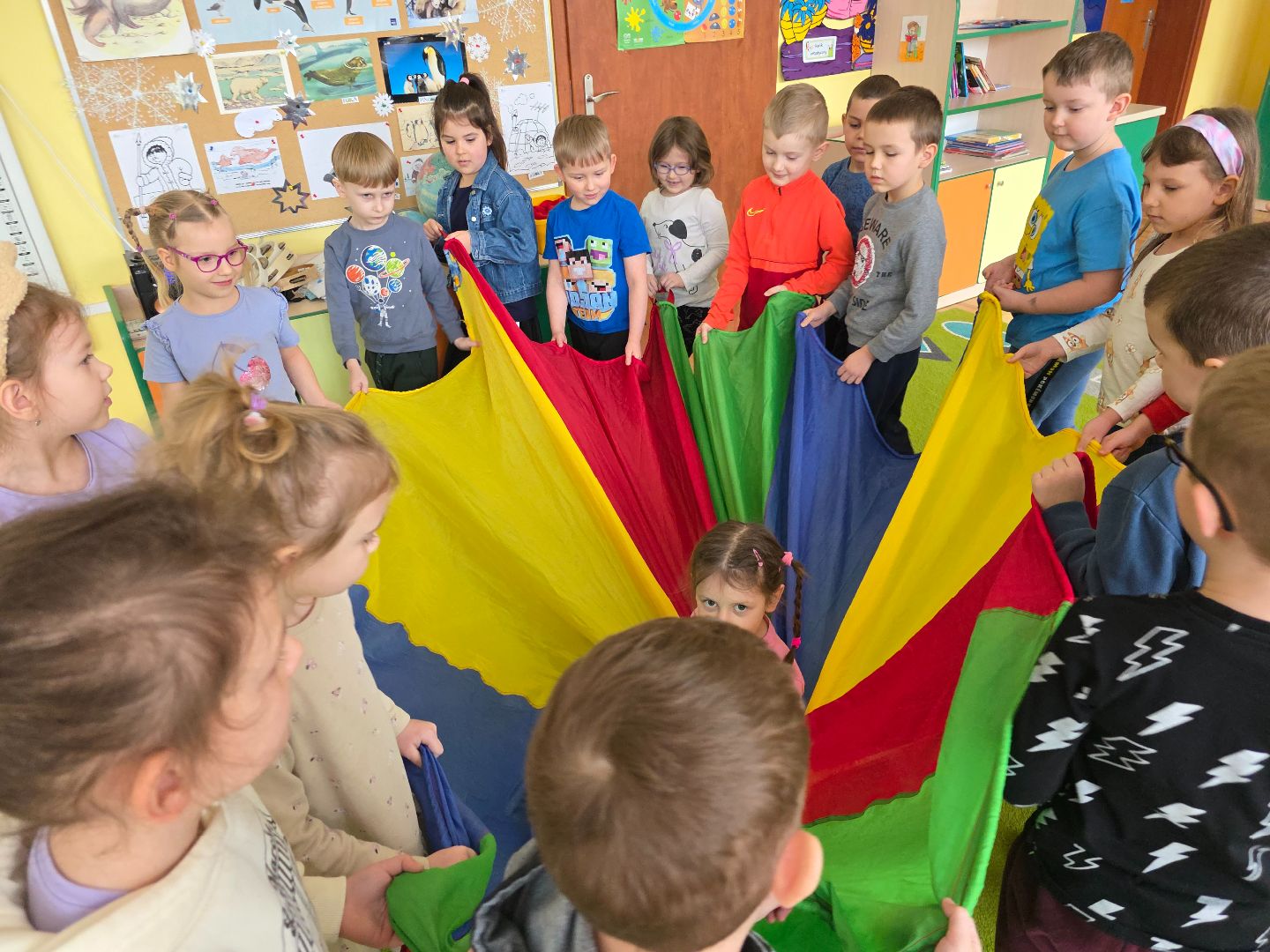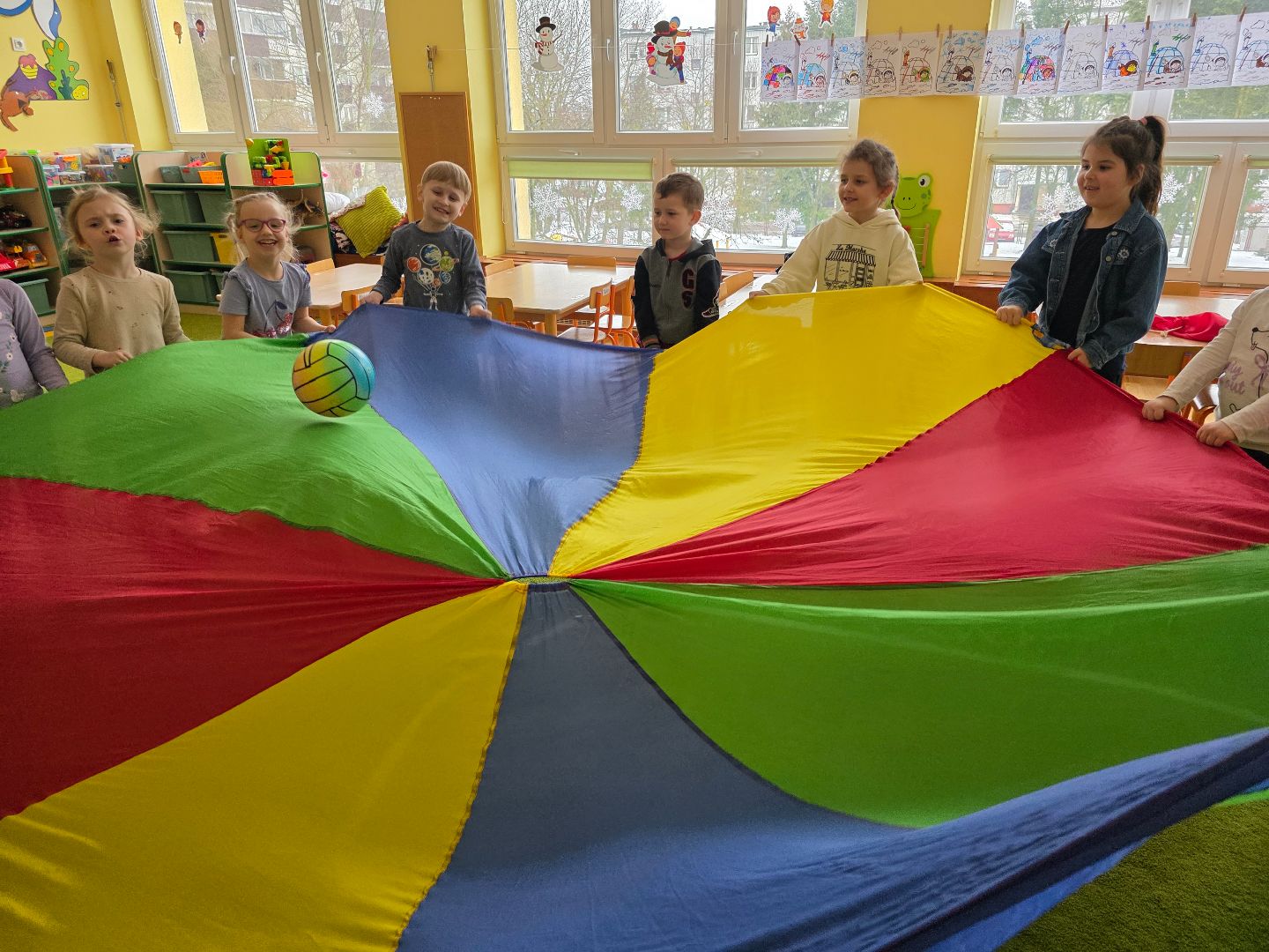W tym tygodniu nasze przedszkolaki wyruszyły w podróż na mroźną Antarktydę. Podczas zajęć dzieci odkrywały tajemnice najzimniejszego kontynentu świata, poznając życie zwierząt i surowy klimat. Dzieci poznały nową zabawę „Pingwinek”, utrwalały orientację przestrzenną oraz kierunki: do przodu, do tyłu, w prawo, w lewo. Wykonały urocze pingwiny z papieru wymagające dużej precyzji, umiejętności wycinania. Grały na instrumentach perkusyjnych do utworu pt.: „Fiesta Aymara”. Kolorowa chusta animacyjna posłużyła im do stworzenia wielkiej, bezpiecznej „zamieci”. Przedszkolacy współpracowali ze sobą, falując materiałem, podrzucając piłkę -„kulę śniegową”. Dopełnieniem tej mroźnej przygody było wyjście na podwórko, gdzie dzieci mogły poczuć klimat prawdziwej Antarktydy na własnej skórze:)