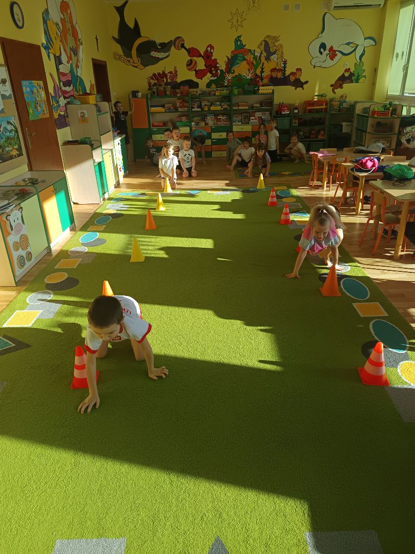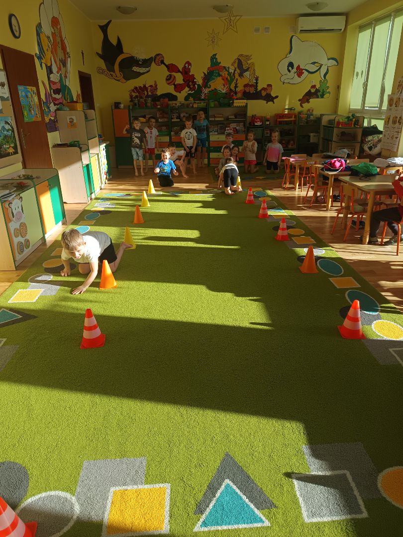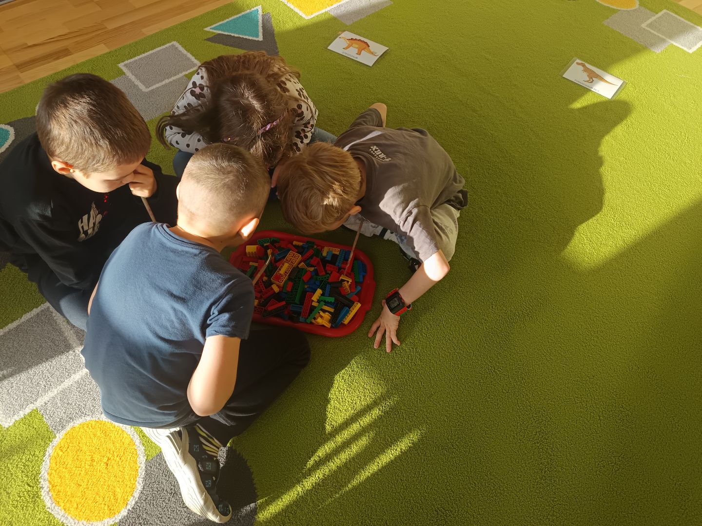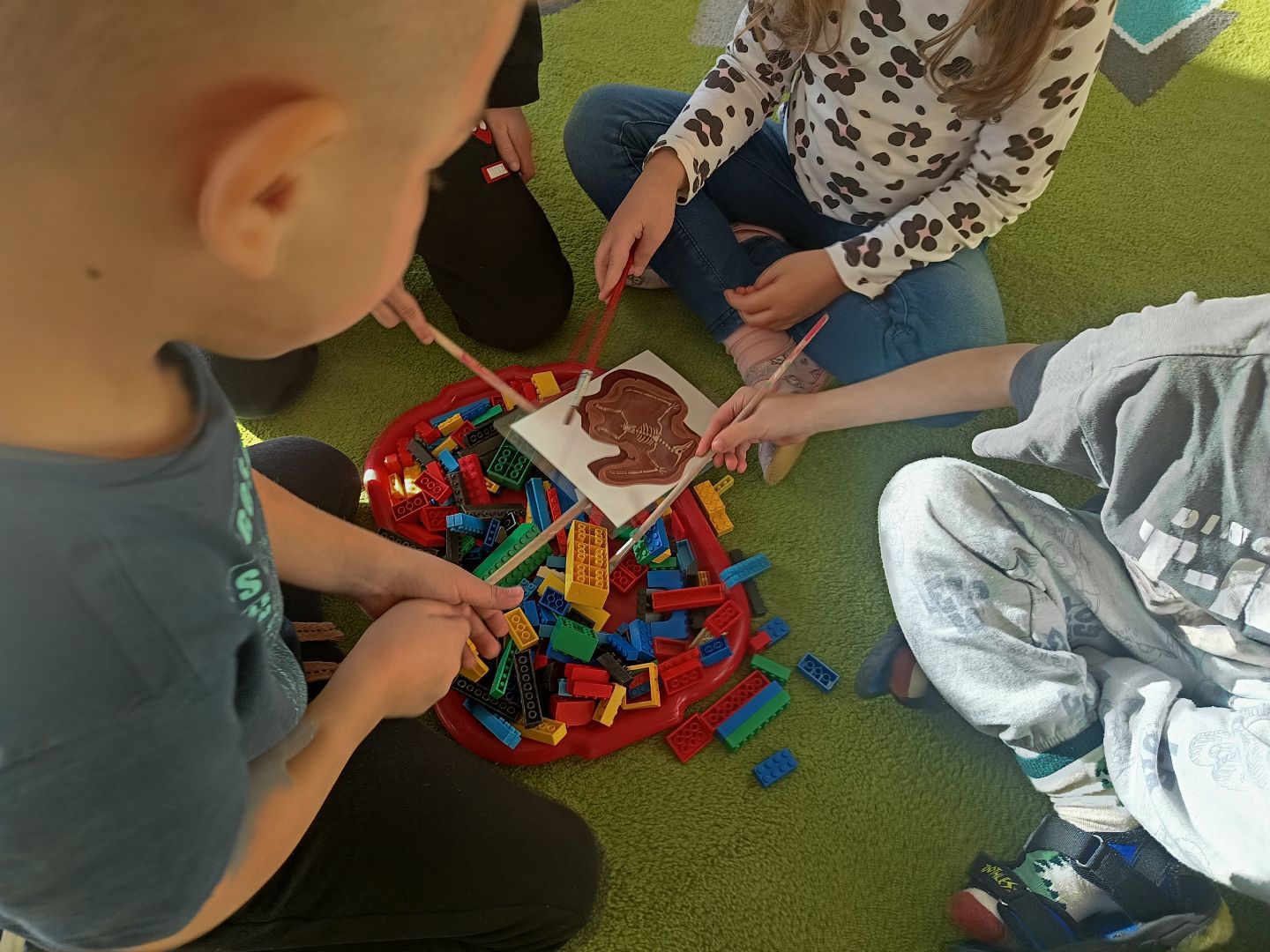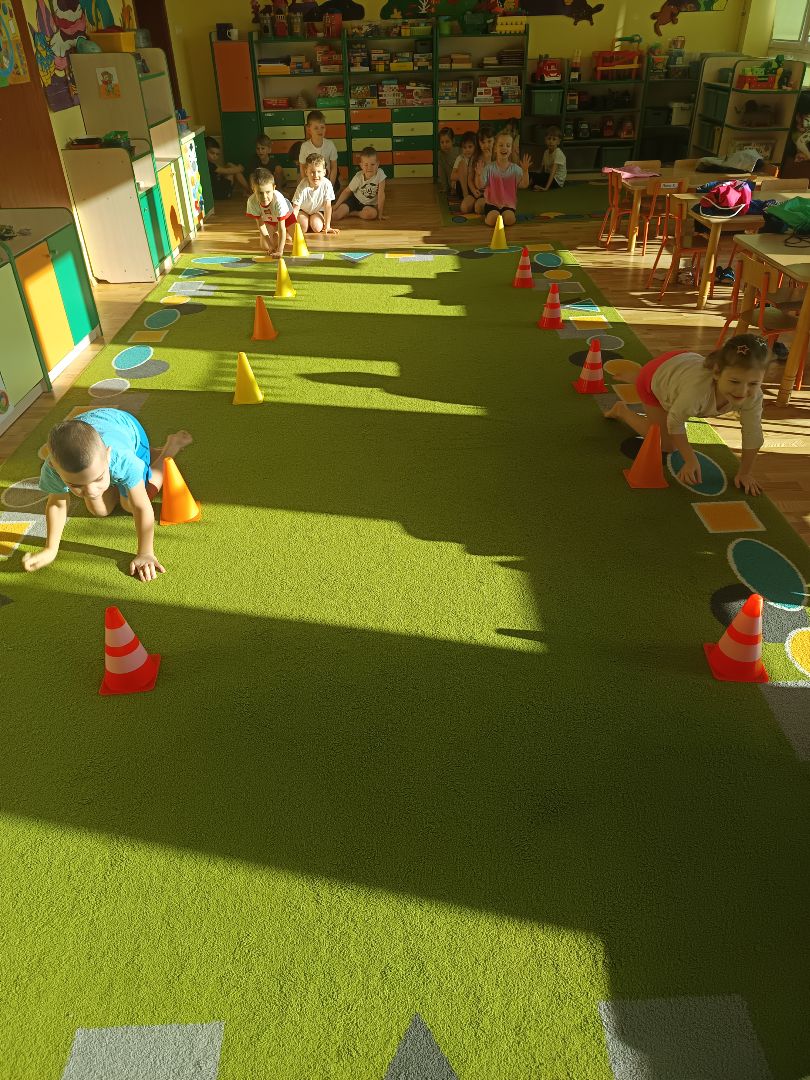 W tym tygodniu nasza grupa przeniosła się w czasie aż do epoki dinozaurów! Każdego dnia dzieliliśmy się ciekawostkami o tych fascynujących stworzeniach, rozmawialiśmy o ich zwyczajach i odkryciach naukowych. Każdy z nas odrysował cień swojego ulubionego dinozaura – powstały ogromne sylwetki tyranozaurów, diplodoków i wielu innych! Razem narysowaliśmy własny park jurajski — pełen drzewiastych terenów, jurajskich jezior i prehistorycznych olbrzymów! Bawiliśmy się w prawdziwe wykopaliska – szukaliśmy i odkopywaliśmy dinozaury oraz ich szkielety, czując się jak mali paleontolodzy! Ćwiczyliśmy czworakowanie z omijaniem przeszkód – jak prawdziwe dinozaury. Dodawaliśmy i odejmowaliśmy