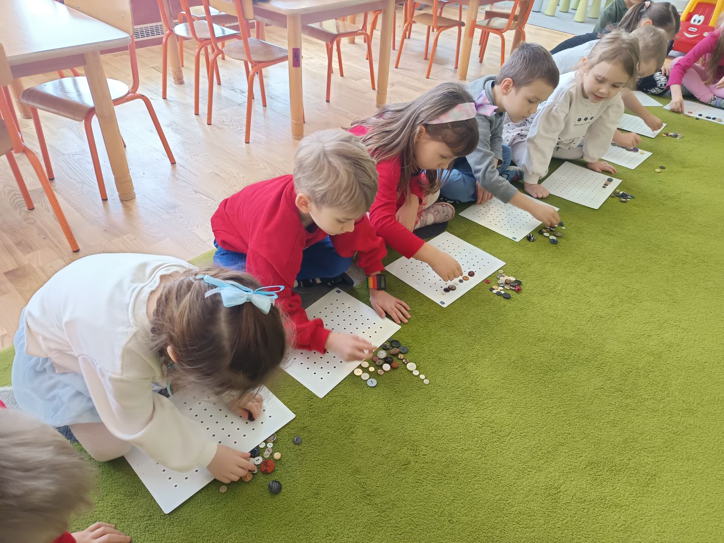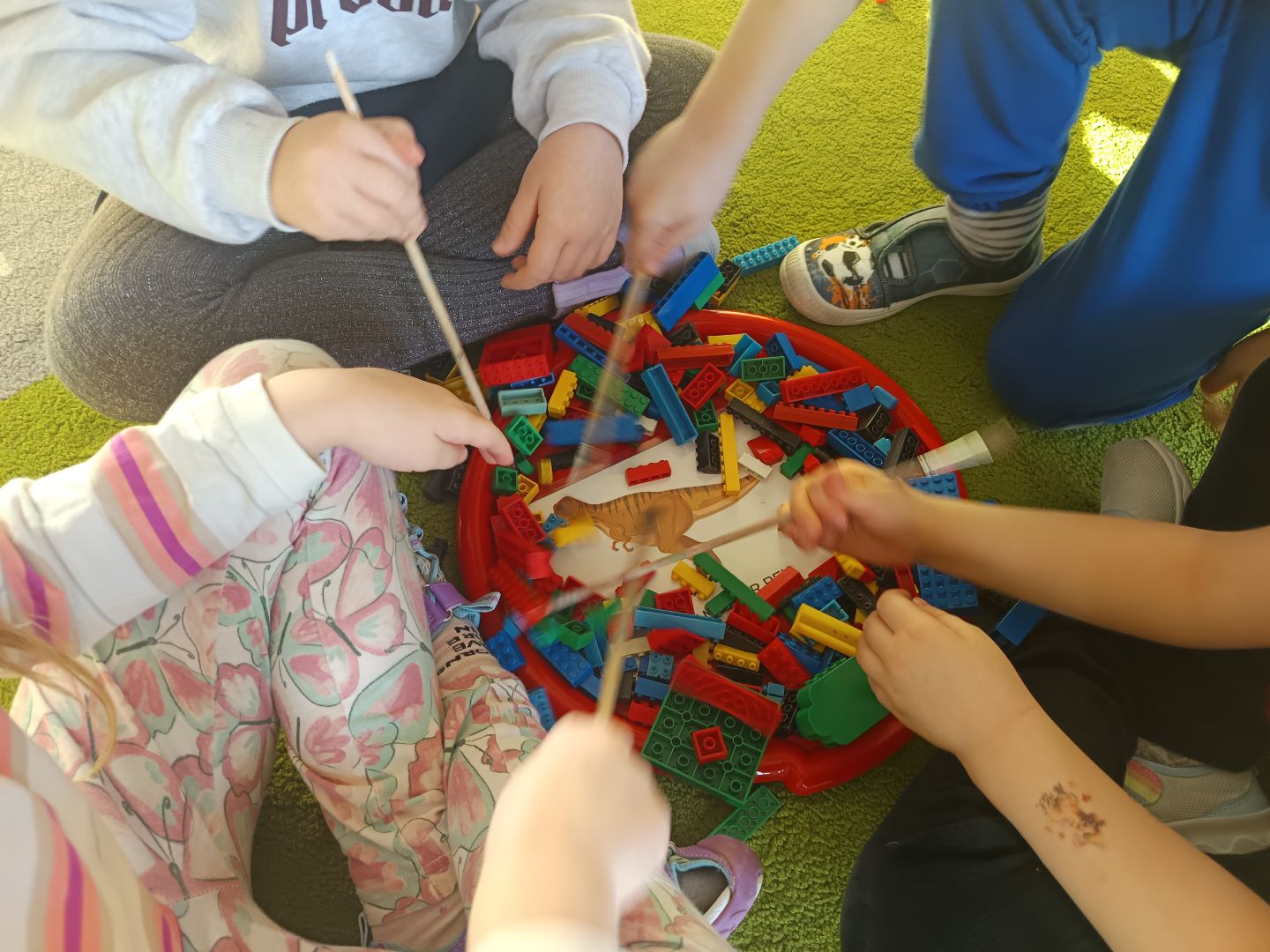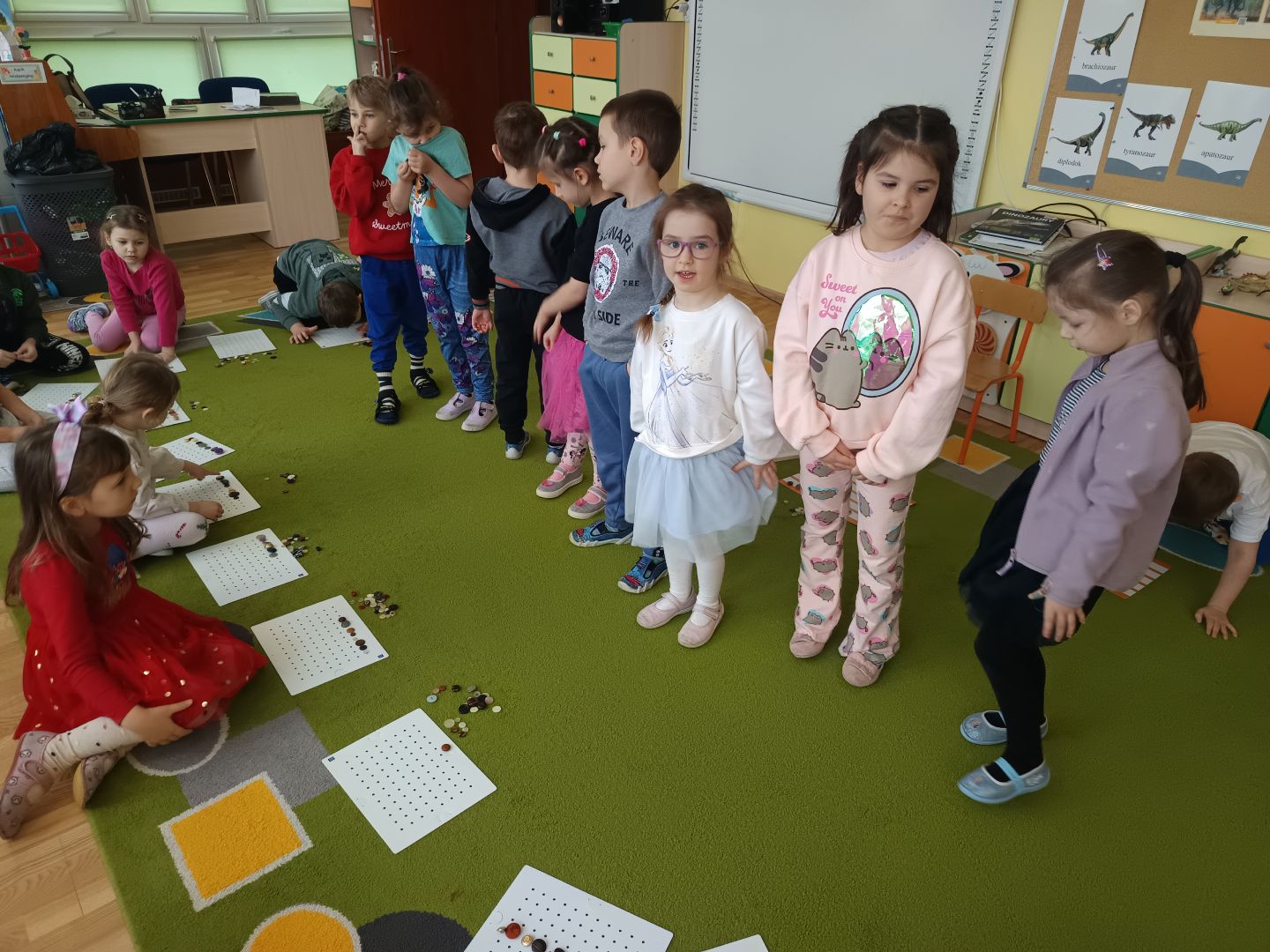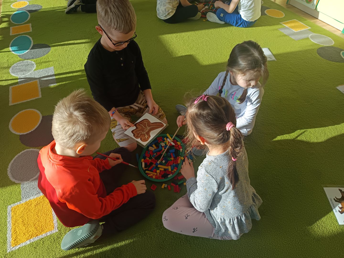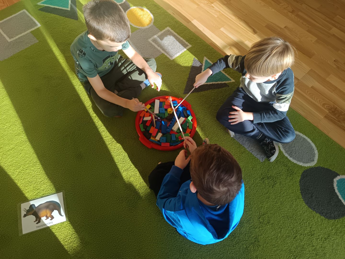 W tym tygodniu nasza grupa przeniosła się w czasie aż do epoki dinozaurów! Każdego dnia dzieliliśmy się ciekawostkami o tych fascynujących stworzeniach, rozmawialiśmy o ich zwyczajach i odkryciach naukowych. Każdy z nas odrysował cień swojego ulubionego dinozaura – powstały ogromne sylwetki tyranozaurów, diplodoków i wielu innych! Razem narysowaliśmy własny park jurajski — pełen drzewiastych terenów, jurajskich jezior i prehistorycznych olbrzymów! Bawiliśmy się w prawdziwe wykopaliska – szukaliśmy i odkopywaliśmy dinozaury oraz ich szkielety, czując się jak mali paleontolodzy! Ćwiczyliśmy czworakowanie z omijaniem przeszkód – jak prawdziwe dinozaury. Dodawaliśmy i odejmowaliśmy