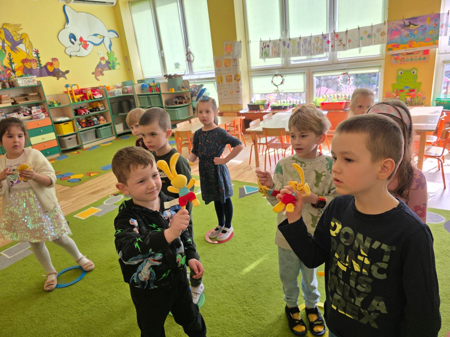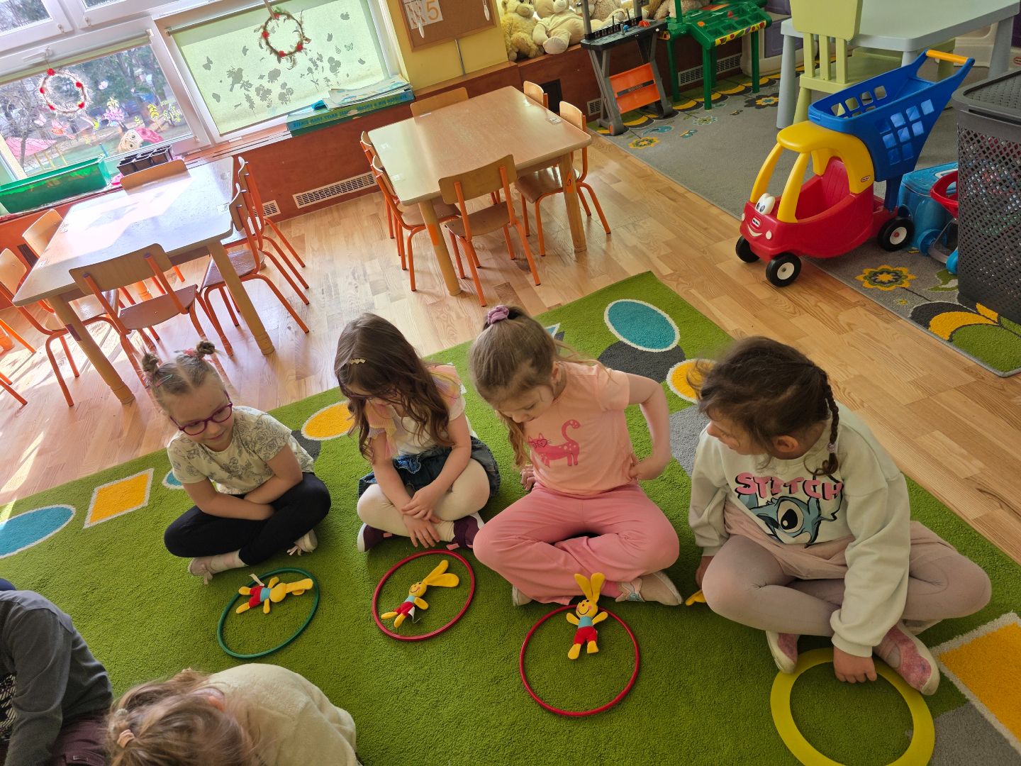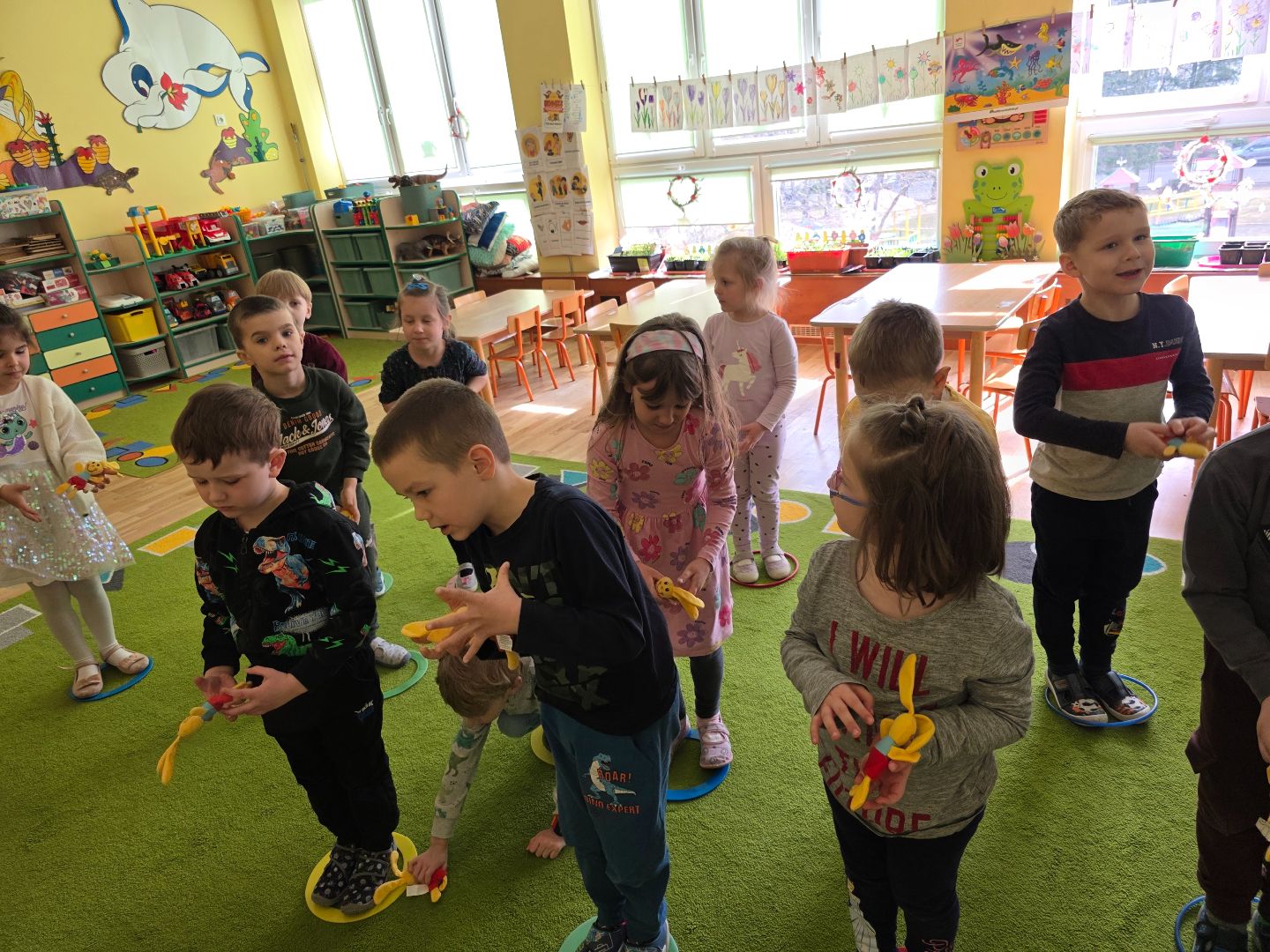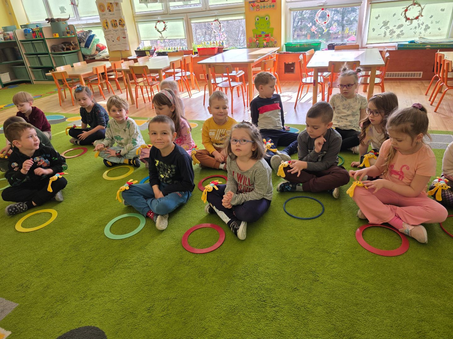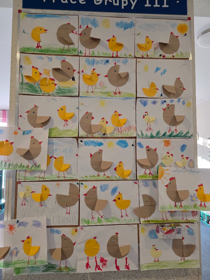 Mijający tydzień upłynął pod znakiem fascynujących odkryć i radosnej twórczości. Dzieci zgłębiały tajniki wiejskiego życia, wzbogacając swój zasób słownictwa o nazwy mieszkańców zagrody oraz ich zwyczaje. Nasza sala wypełniła się rytmem i śpiewem. Dzieci bawiły się do piosenek"Kurka","5 jajeczek".Ćwiczyły orientację w przestrzeni i spostrzegawczość w trakcie zabawy "Gdzie schował się zajączek". Z wielkim zaangażowaniem pielęgnowały nasz zielony ogródek na parapecie, ucząc się jak dbać o rośliny i obserwując cykle ich wzrostu. To był tydzień pełen wrażeń.