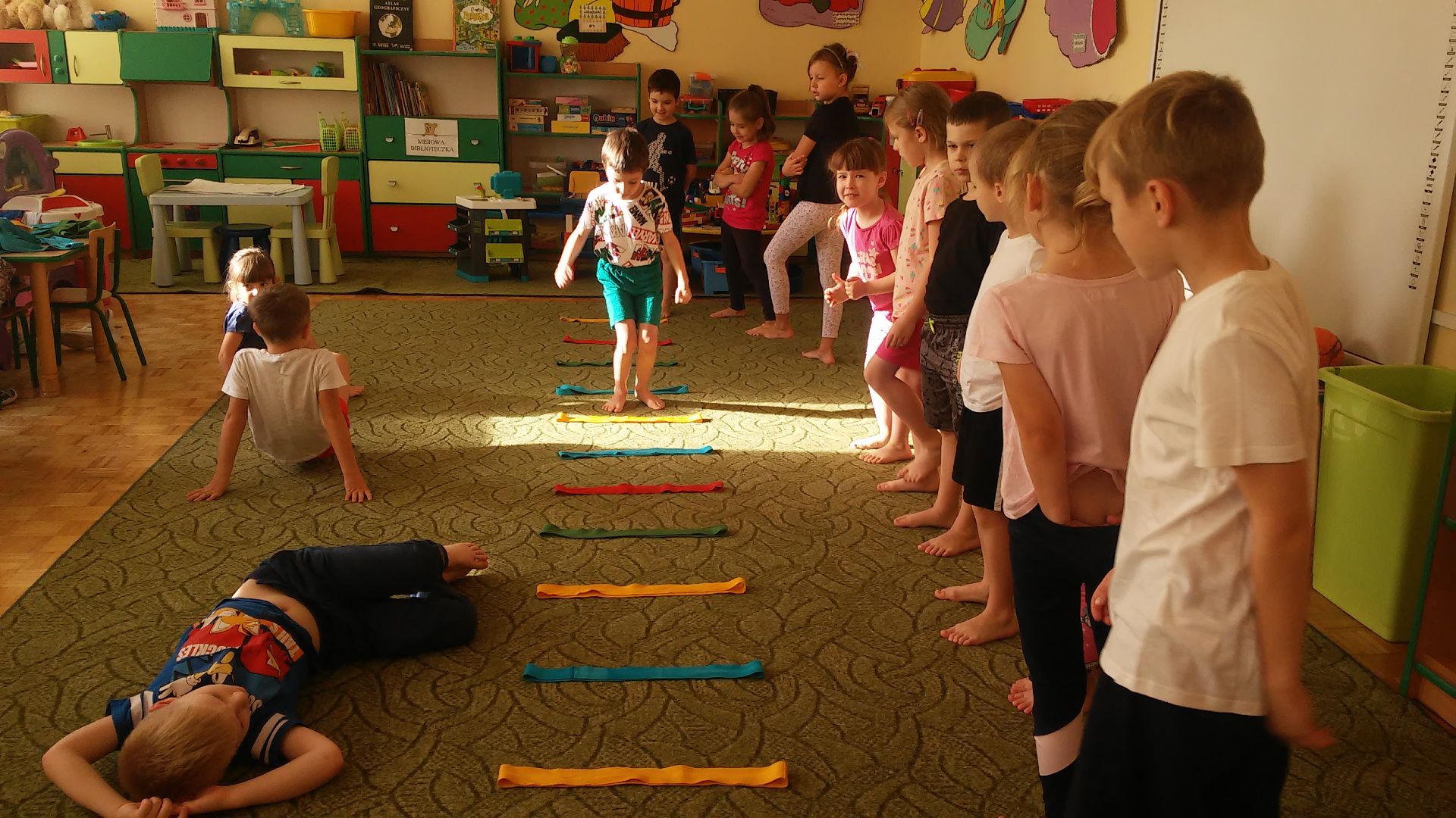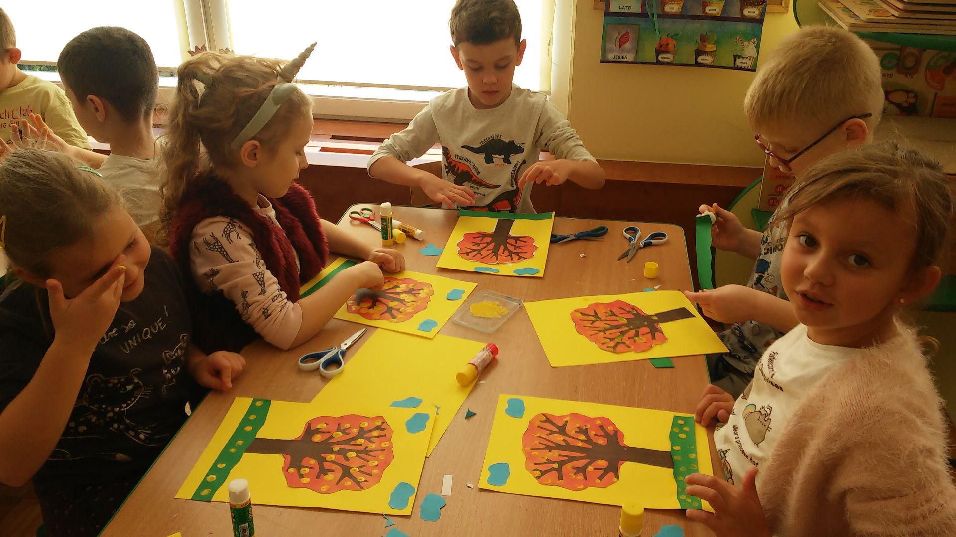 Jesień daje nam wiele darów. W tym tygodniu zajmowaliśmy się owocami. Rozmawialiśmy, jak ludzie przygotowują się do zimy. Utrwaliliśmy znajomość wyglądu i nazw owoców z naszych sadów. Wspólnie wykonaliśmy ciasto z jabłkami. Było pyszne. Wszystkim bardzo smakowało. Interesująco wygląda praca pt. „Jabłoń”. Śpiewaliśmy i tańczyliśmy. Poznaliśmy nową literę -A,a. Utrwalaliśmy litery O,o, E, e. Wizyta w Białostockim Teatrze Lalek na spektaklu pt. „Ślimak” pozostanie w naszej pamięci. W czasie ćwiczeń doskonaliliśmy umiejętność przeskoków przez przeszkody płaskie.