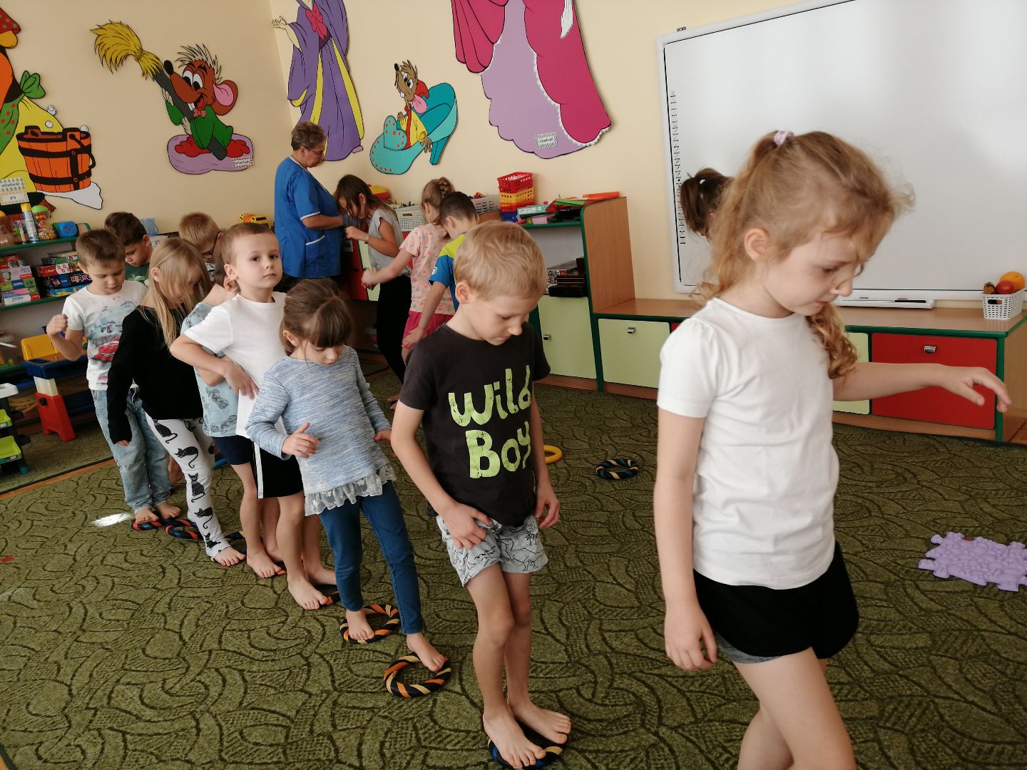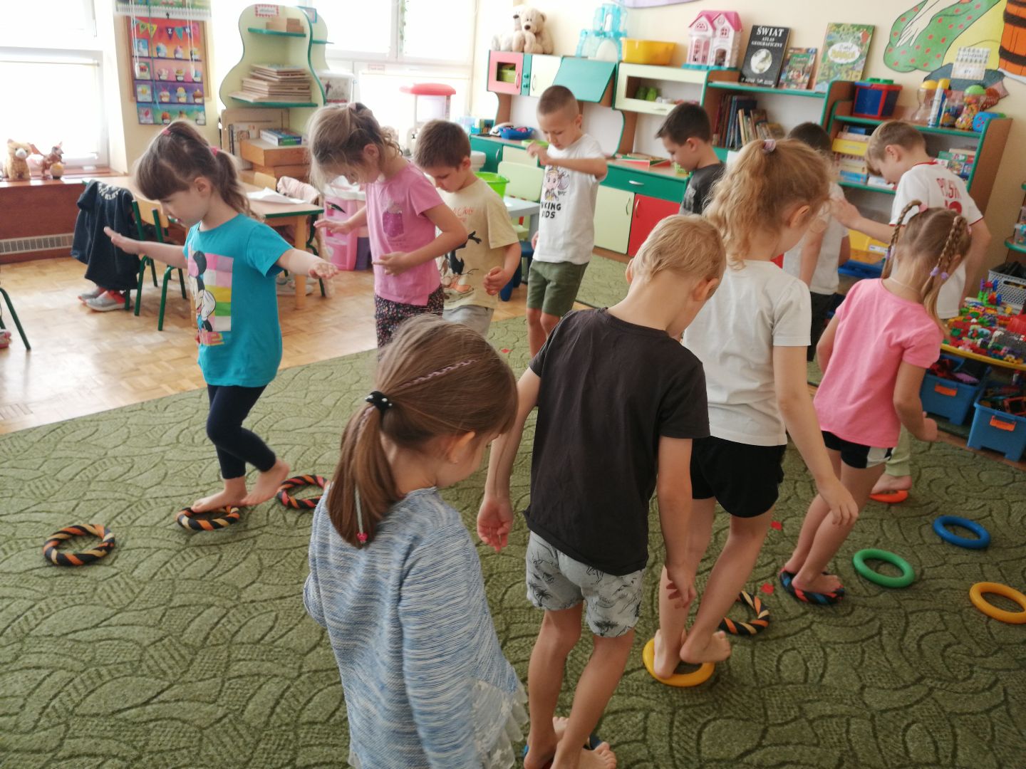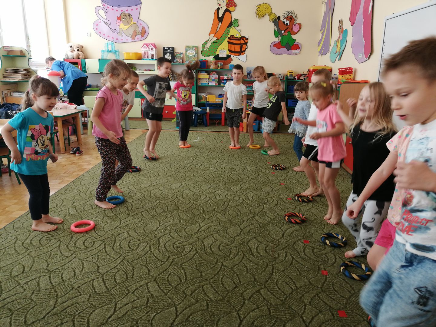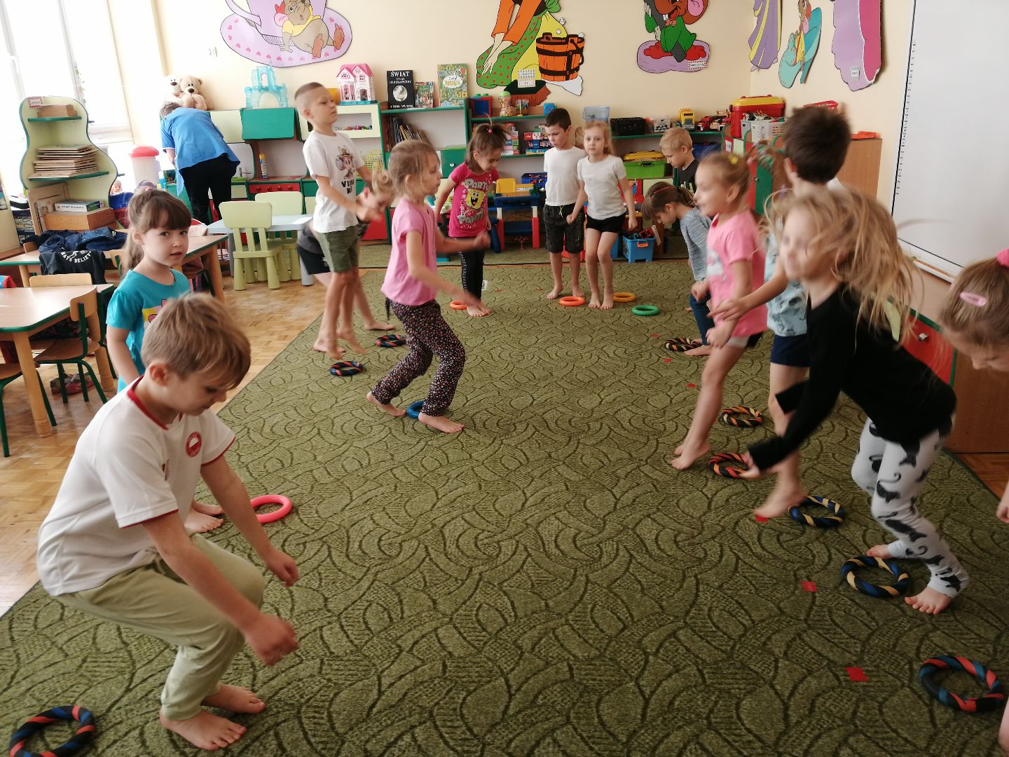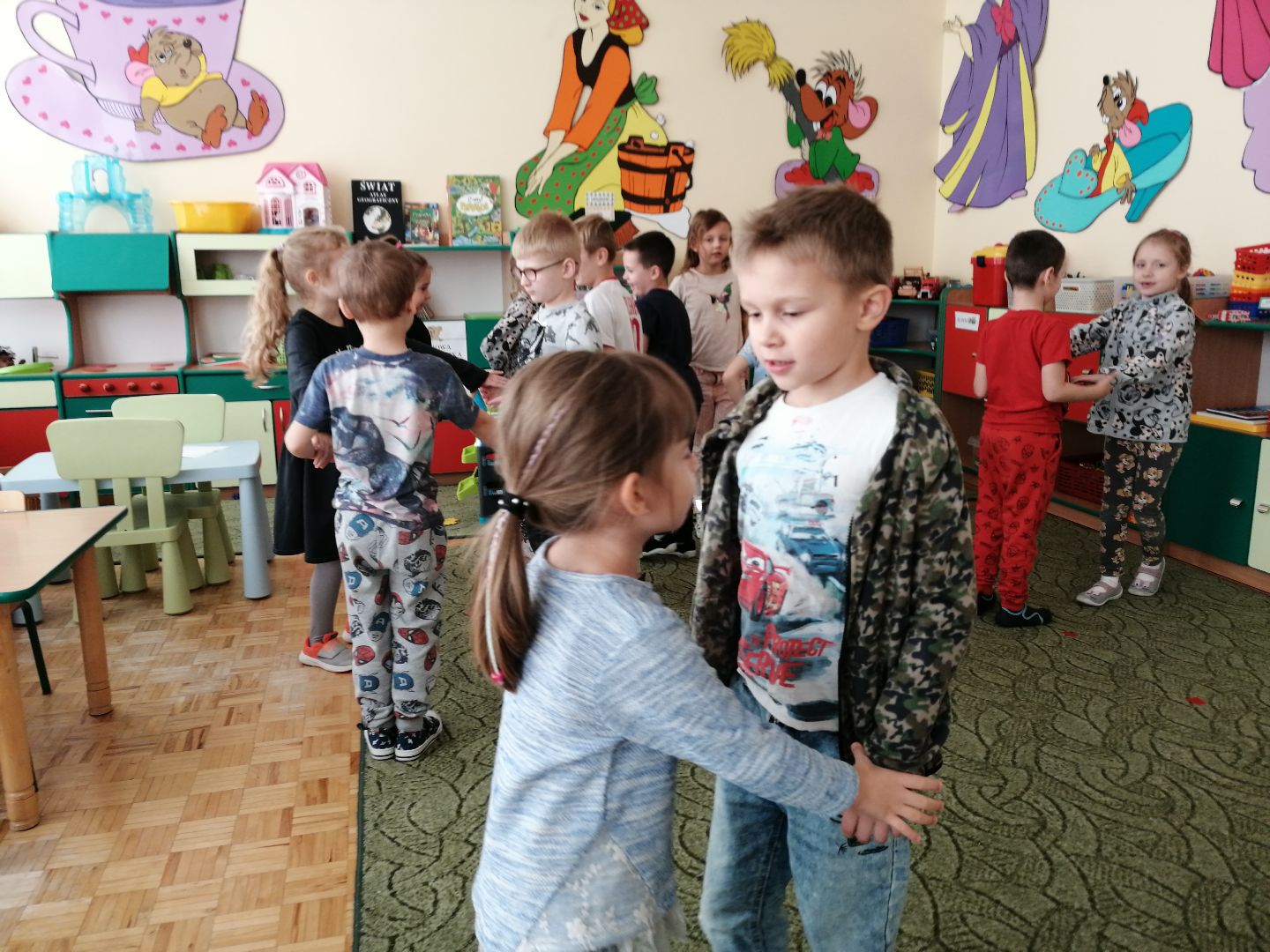 W minionym tygodniu rozmawialiśmy na temat jesiennych prac w ogrodzie. Obchodziliśmy szóste urodziny naszej koleżanki Hani. Poznaliśmy nową literę E,e jak ekran. Wybraliśmy się na wycieczkę na ryneczek, aby zakupić warzywa do przedszkola. W trakcie zajęć mieliśmy okazję rozpoznawać i nazywać warzywa za pomocą węchu, dotyku, segregować je na odpowiednie tace, przeliczać. Sami zrobiliśmy sobie kanapki z wykorzystaniem różnorodnych warzyw. Przygotowaliśmy smaczną surówkę z marchwi, jabłek i pora. Obejrzeliśmy teatrzyk kukiełkowy na podst. utworu pt.:„Kapuściana dama”( B. Pasiuk) w wykonaniu kolegów z grupy. Wykonaliśmy własne kukiełki z warzyw. Przedszkolaki przyniosły do przedszkola wiele ciekawych okazów warzyw. Niektóre nie potrzebowały wiele, aby stać się zwierzątkiem, znaną postacią…Dzieci z dużym zaangażowaniem realizowały swoje twórcze zamiary. Dziękujemy rodzicom za wzbogacenie naszych zajęć i dostarczanie różnorodnych warzyw.