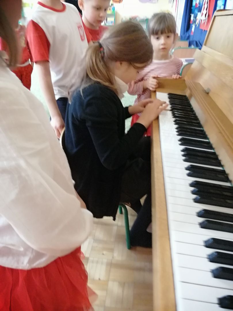 W piątek odwiedziła nas siostra Tymona. Maja zagrała kilka utworów na gitarze oraz na pianinie. Przedszkolacy z podziwem obserwowali jej zdolności muzyczne. Stwierdzili, że w przyszłości również pragną grać na instrumentach:)