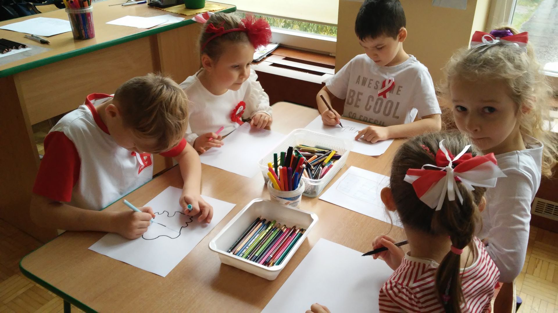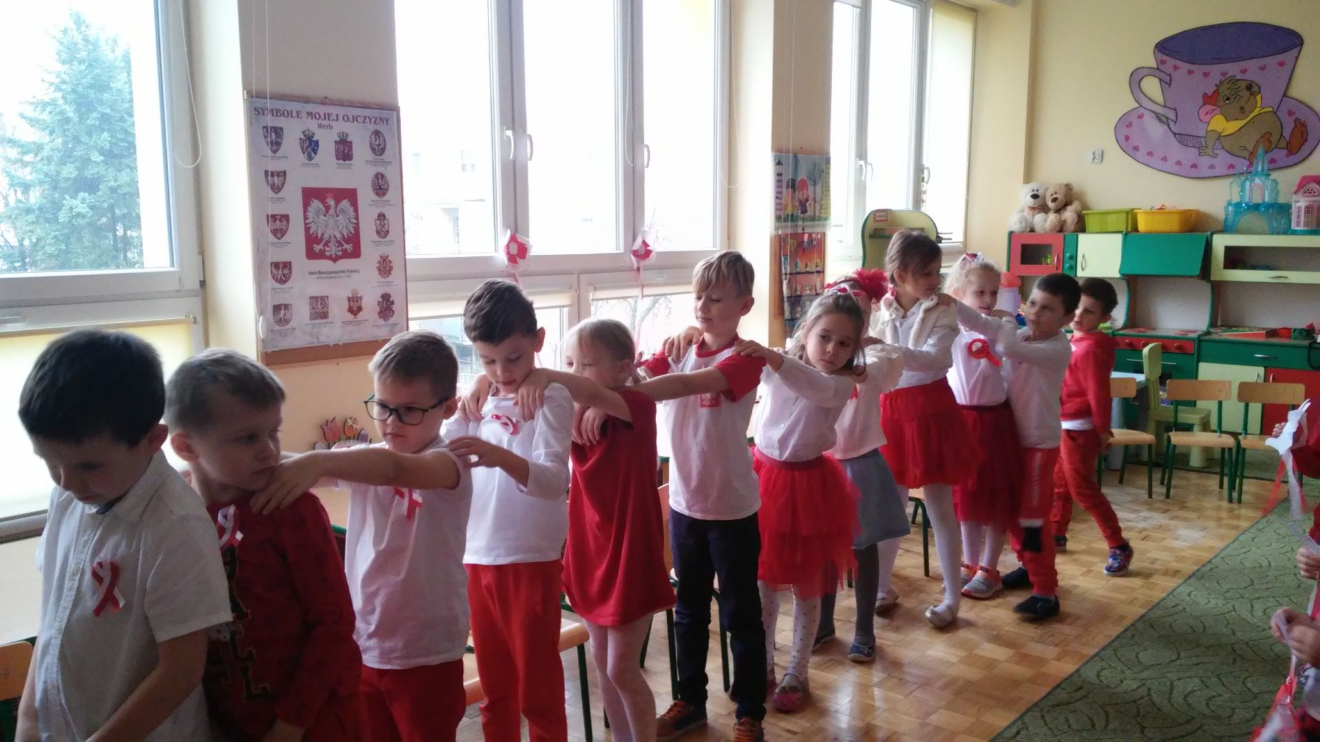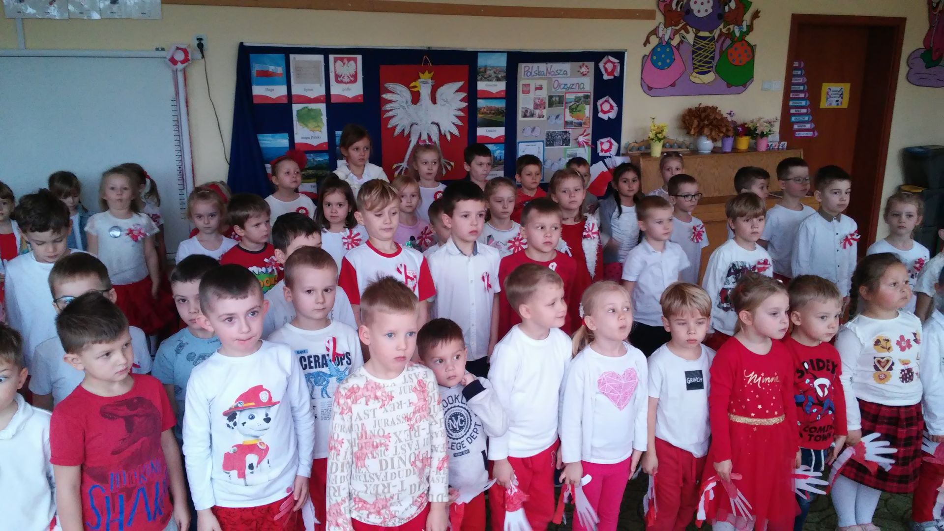 Piękna nasza Polska cała. Te słowa są nam bliskie. W minionym tygodniu rozmawialiśmy o odzyskaniu przez Polskę niepodległości. Obejrzeliśmy film edukacyjny pt. „Rozbiory Polski”. Wzięliśmy udział w uroczystych obchodach święta 11 listopada. Recytowaliśmy wiersze o Polsce, śpiewaliśmy patriotyczne pieśni oraz hymn państwowy. Oglądaliśmy albumy związane z naszym krajem. Ponadto odbyło się spotkanie z panią policjantką, która przybliżyła nam swój zawód oraz zwróciła uwagę na przestrzeganie zasad bezpieczeństwa. Bardzo ciekawa była także audycja muzyczna pt. „Kosmiczne piosenki”.