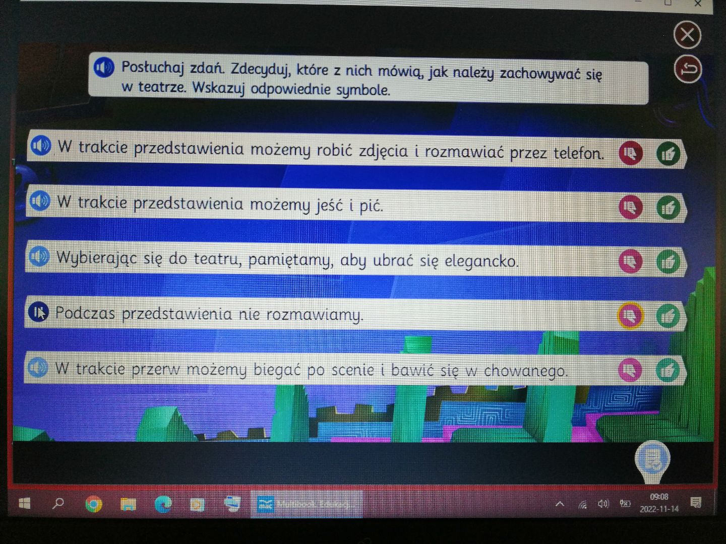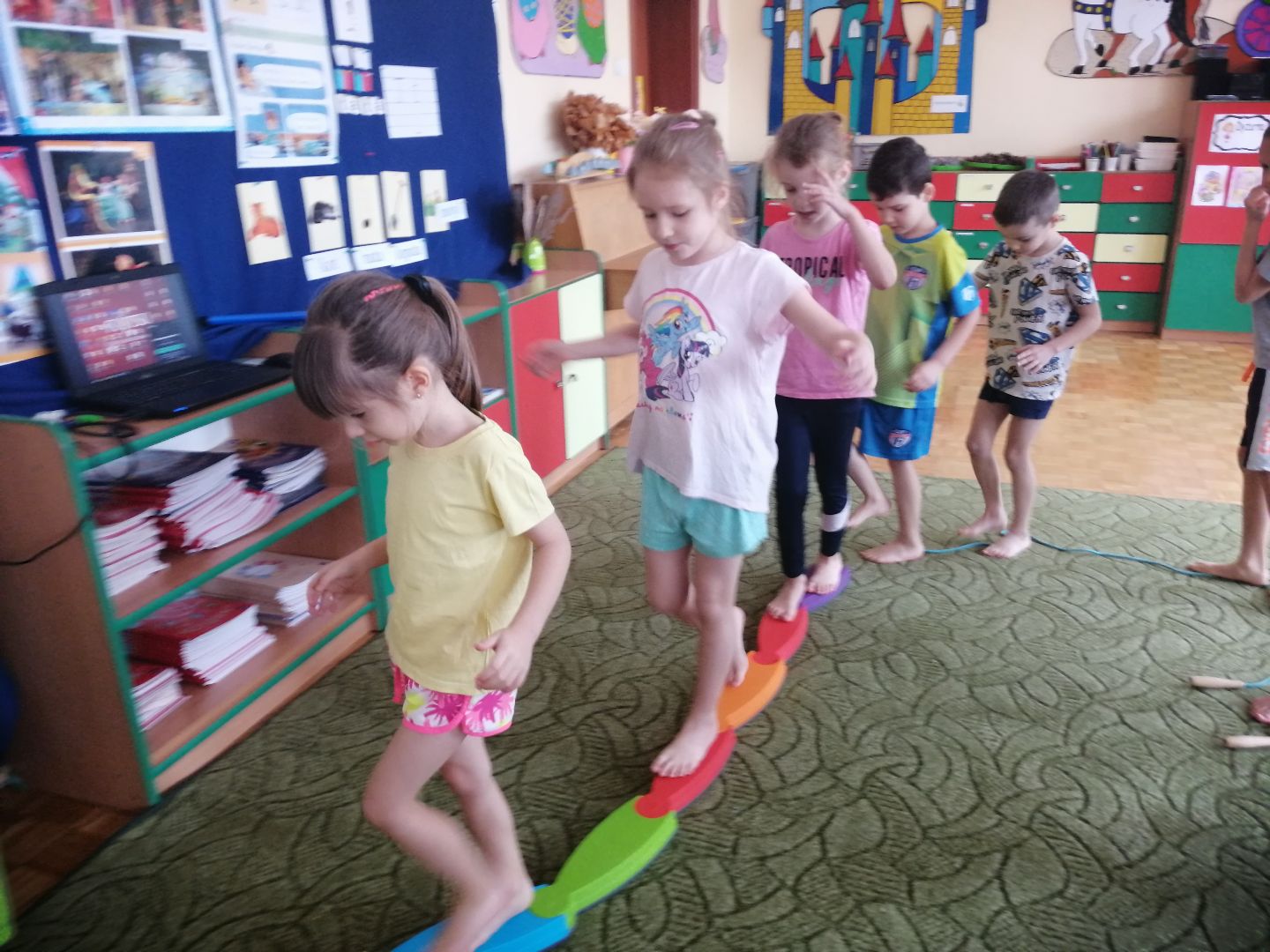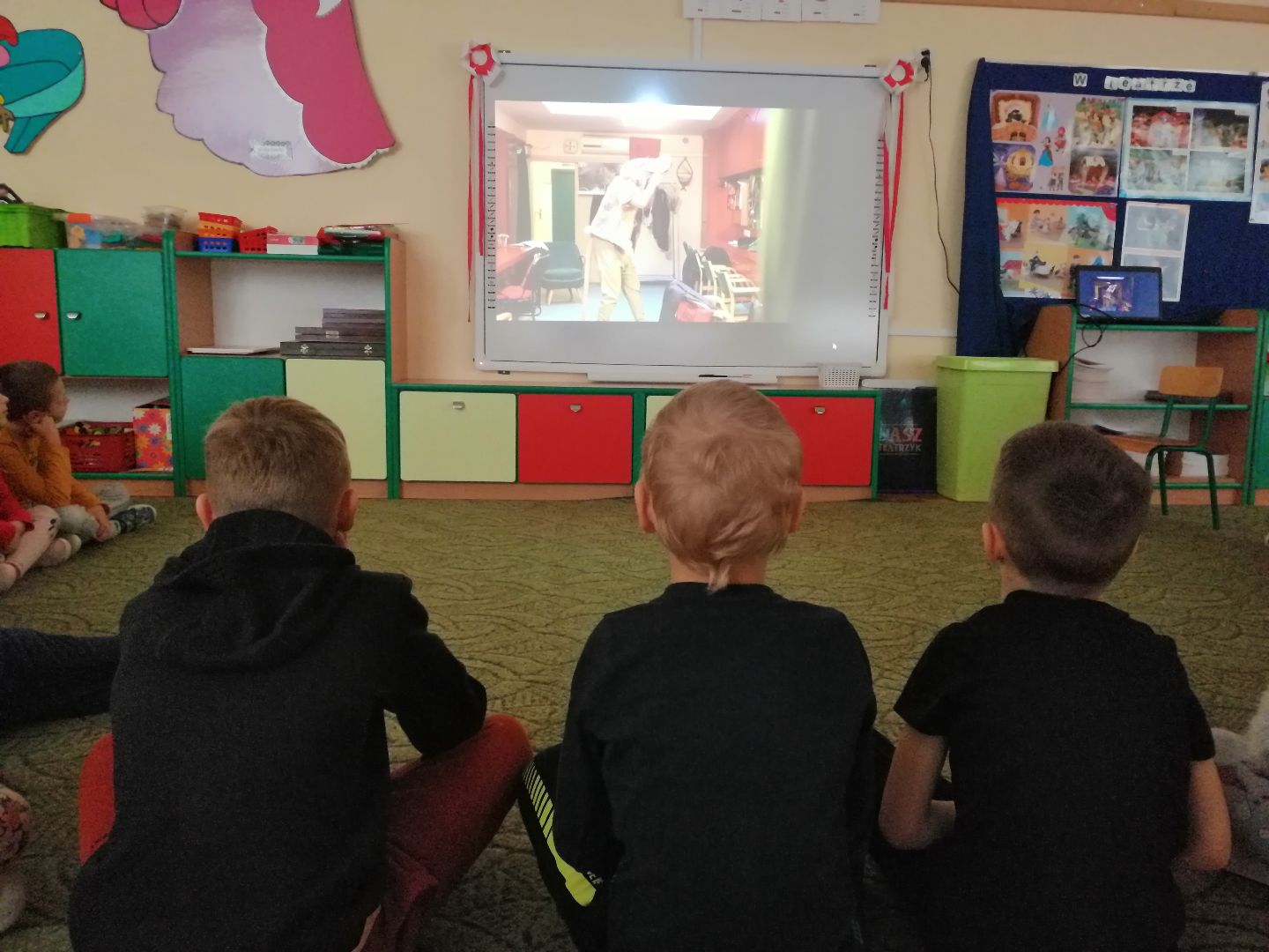 W minionym tygodniu rozmawialiśmy o teatrze. Dzieci wzbogaciły słownictwo o nowe pojęcia min.: scena, widownia, kurtyna, dekoracja teatralna, maska, kukiełka, pacynka, pantomima, jawajka, marionetka itp. Wykonały kukiełki wykorzystując różnorodne materiały plastyczne. Obejrzały przedstawienie teatralne z wykorzystaniem teatrzyku cieni pt.:„ O rybaku i złotej rybce”. Dowiedziały się jak powstaje cień. Przedszkolacy wcielili się w rolę aktorów -przedstawili bajkę pt.: „Czerwony Kapturek”. Poznaliśmy nową literę t, T jak „tata”, „Tola”. Uczyliśmy się wskazywać przyczynę i przewidywać skutek - przeprowadziliśmy doświadczenia min. z wodą i cukrem, wodą i solą, wodą i cytryną, pogiętą kartką papieru, pociętą kartką. Ustalaliśmy, które zmiany są, a które nie są odwracalne. Poznaliśmy nową piosenkę pt.: „Magiczne miejsce” oraz wiersz pt.: Jana Brzechwy „Tańcowała igła z nitką”(zamieszczone w materiałach w załączniku). To były pracowite dni:)