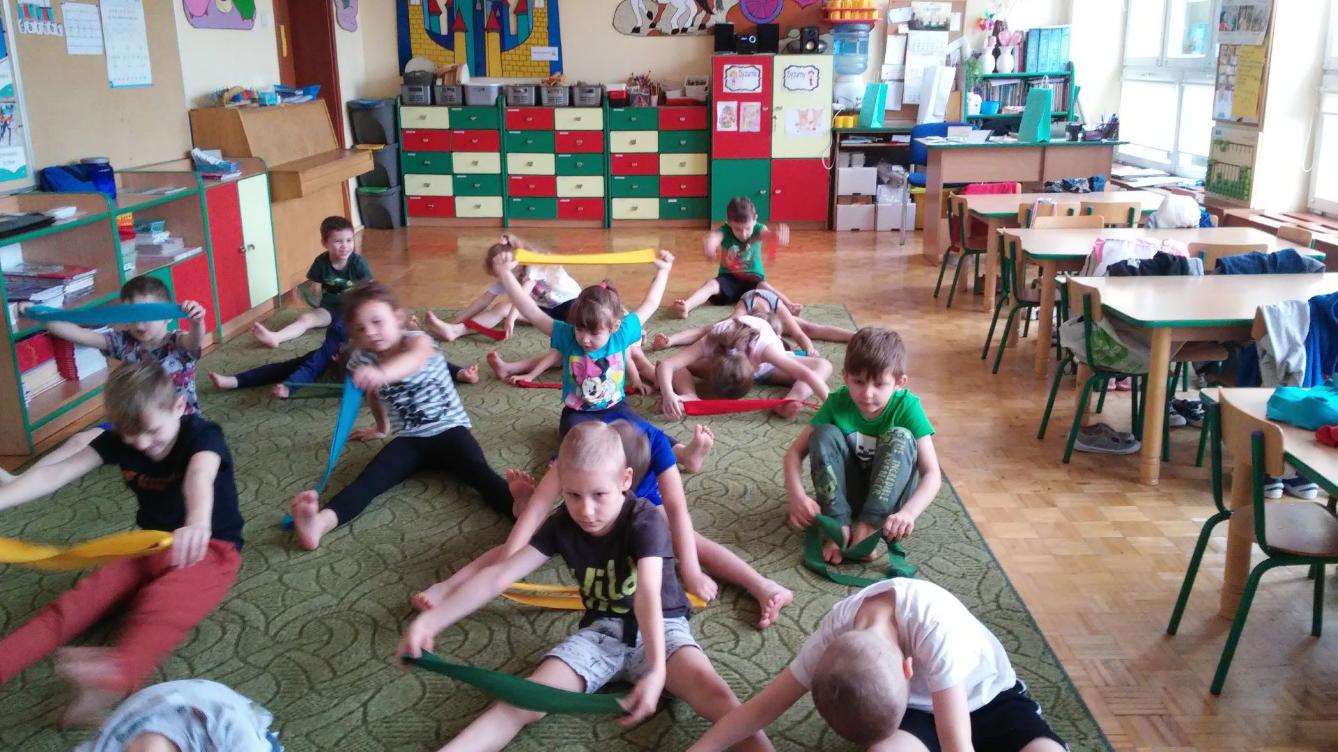 W minionym tygodniu rozmawialiśmy o bezpiecznej zabawie zimą. Odegraliśmy scenkę na temat ”Jak pomóc osobie, pod którą załamał się lód. Obejrzeliśmy także film instruktażowy. Poznaliśmy literę G, g. Rozmawialiśmy na temat różnych sportów zimowych. Wykonaliśmy prace plastyczne pt. „Rękawiczki”, i malowaliśmy na szarym papierze „Zimowe zabawy”. Uczyliśmy się piosenki pt.”Bezpiecznie zimą”. Doskonaliliśmy swoje umiejętności klasyfikowania i segregowania. Musieliśmy uzasadnić swój wybór. W tłusty czwartek jedliśmy przepyszne pączki zrobione przez nasze kucharki i kucharza. Ćwiczyliśmy z szarfą wzmacniając mięśnie grzbietu i rozwijając koordynację ruchową.