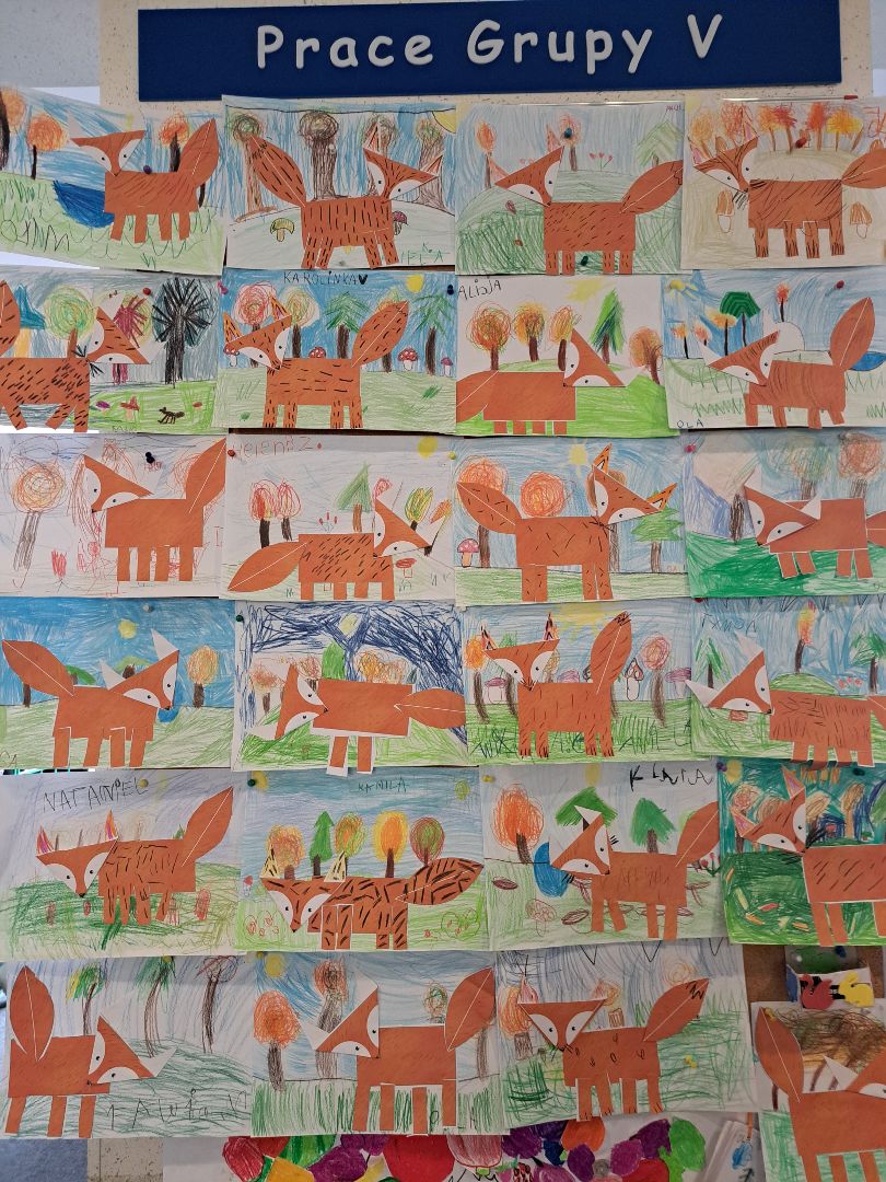 Robiliśmy prace plastyczne - lisek w lesie i wiewiorka w dziupli z zapasami.