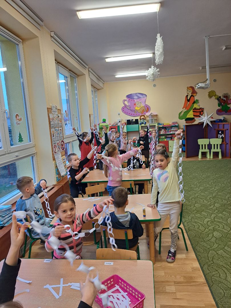 - wykonywalismy ozdoby choinkowe, łańcuchy z papieru, ptaszki, pajacyki, rybki