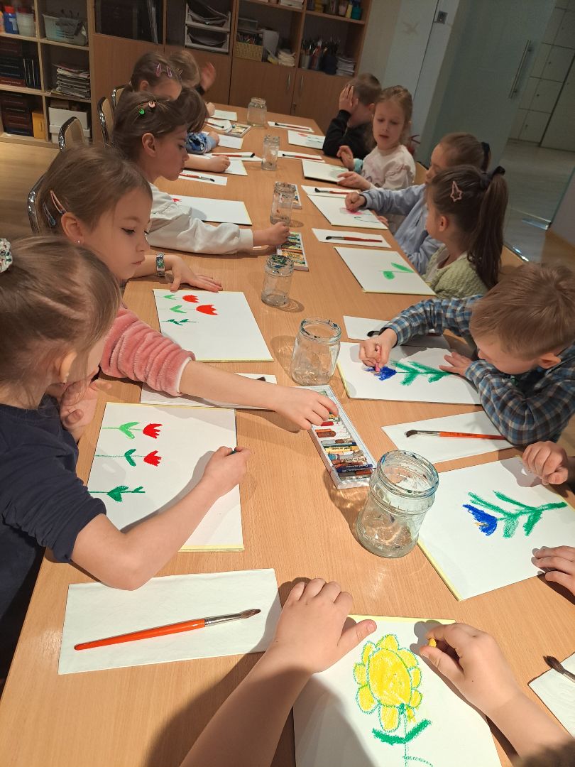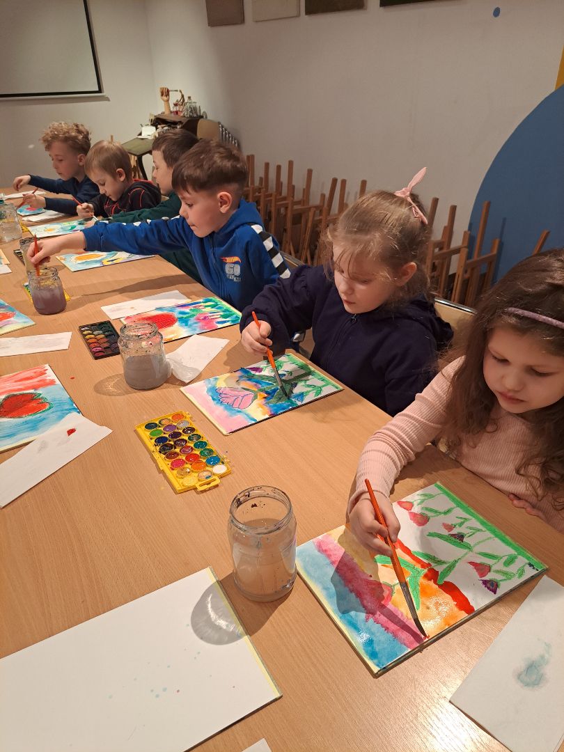 Sekrety malarza - zajęcia edukacyjne w Ratuszu - wprowadzenie dzieci w świat sztuki, poznawanie narzędzi malarskich.