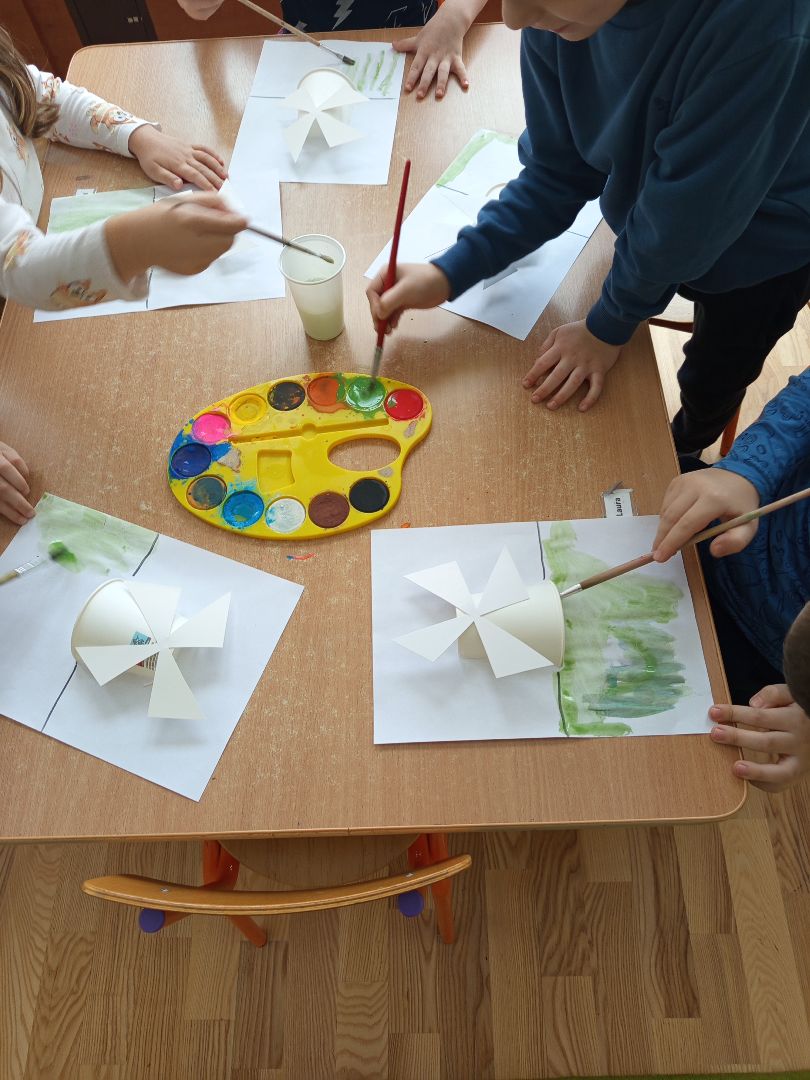 W dniach 10 i 12 II 2026r. pięciolatki wzięły udział w zajęciach BOF o Holandii. Poznały kluczowe informacje o tym pięknym kraju. Słuchały muzyki ludowej, poznały zabawę "Wiatraki" a także legendę o chłopcu i tamie. Wykonały samodzielnie "Pole z wiatrakiem". Miały też okazje uczestniczyć w degustacji stroopwafel i ziołowych herbat (rumianek z karmelem, pokrzywa z wiśnią).