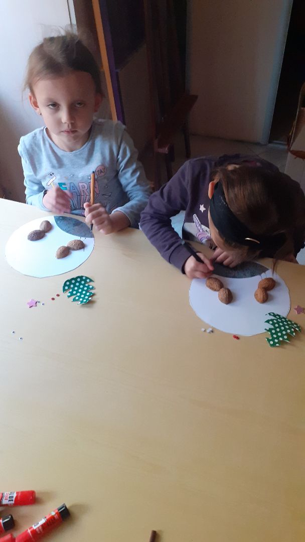 W tym tygodniu dzieci z gr IV wykonały propozycję kartki świątecznej z wykorzystaniem łupin po orzechach, zielonych gałązek oraz kolorowych kartek. Nasze kartki są w wersji XXL, ale każdy może sobie zrobić kartkę w dogodnej dla siebie wielkości.