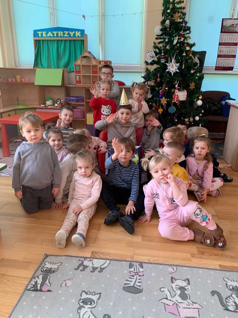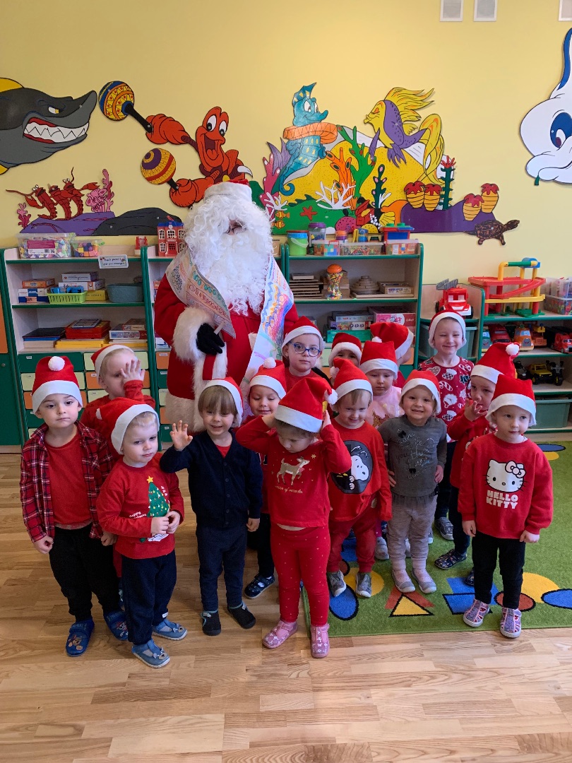 Dnia 5 grudnia w naszym przedszkolu odbyła się uroczystość mikołajkowa, na którą dzieci czekały z wielkim podekscytowaniem. Od samego rana w sali panowała radosna, świąteczna atmosfera – pomieszczenie wypełniły dekoracje, migoczące światełka oraz dźwięki zimowych melodii, które wprowadzały wszystkich w cudowny nastrój. Uroczystość rozpoczęła się krótkim występem dzieci. Mali artyści z dużym zaangażowaniem recytowali przygotowane wiersze oraz śpiewali piosenki o Mikołaju. Najbardziej wyczekiwanym momentem były oczywiście odwiedziny Świętego Mikołaja. Dzieci z ogromnym entuzjazmem przywitały wyjątkowego gościa, który przybył z workiem pełnym prezentów. Mikołaj rozmawiał z dziećmi, pytał o ich przygotowania do świąt oraz chwalił za piękne występy. Każde dziecko otrzymało indywidualny upominek, co wywołało wiele uśmiechów i radosnych okrzyków. Uroczystość zakończyła się wspólnym zdjęciem z Mikołajem oraz podziękowaniem za jego wizytę. Ten wyjątkowy dzień dostarczył dzieciom wielu pozytywnych emocji.