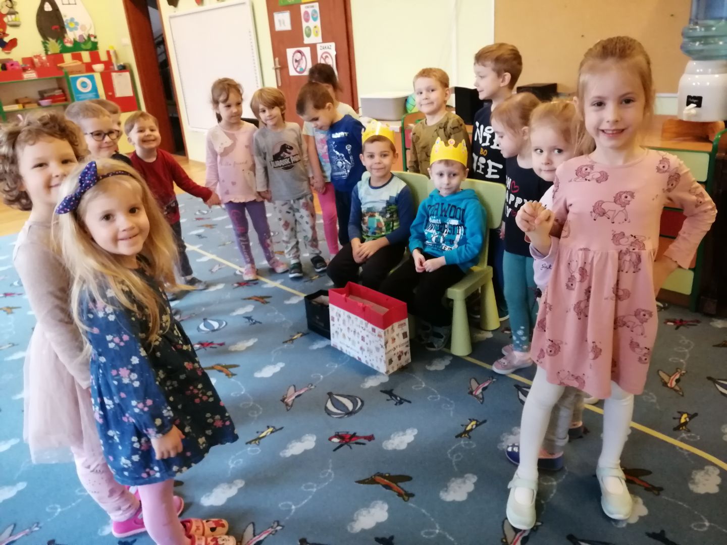 W ubiegłym tygodniu w naszej grupie realizowaliśmy temat „ W dziecięcym laboratorium”. Zagłębialiśmy się w tajemniczy świat naukowców wykonując różne ciekawe eksperymenty i doświadczenia. Nie zabrakło wśród nich „Tęczy na talerzu”,„Wulkanu”, „Lawy kolorowej”, „Gumowego jaja”, doświadczeń związanych z wodą oraz mieszaniem kolorów. Przeprowadzone zabawy badawcze zachęciły dzieci do obserwowania, sprawdzania, wyciągania wniosków. W ramach realizacji programu „Dwujęzyczność w przedszkolu” realizowaliśmy temat „Sun- Słońce”. W poniedziałek gościliśmy aktorów z teatru CoNieco z przedstawieniem pt.; „Królem być i przyjacielem”. Dzieci dowiedziały się o tym, że wszystkich należy traktować życzliwie by mieć jak najwięcej przyjaciół. W piątek uczestniczyliśmy w zajęciach w bibliotece osiedlowej. Poznawaliśmy ciekawostki na temat życia dinozaurów. Dziękujemy pani Agatce i Ewie za bardzo interesujące wiadomości i ciekawą prezentację.