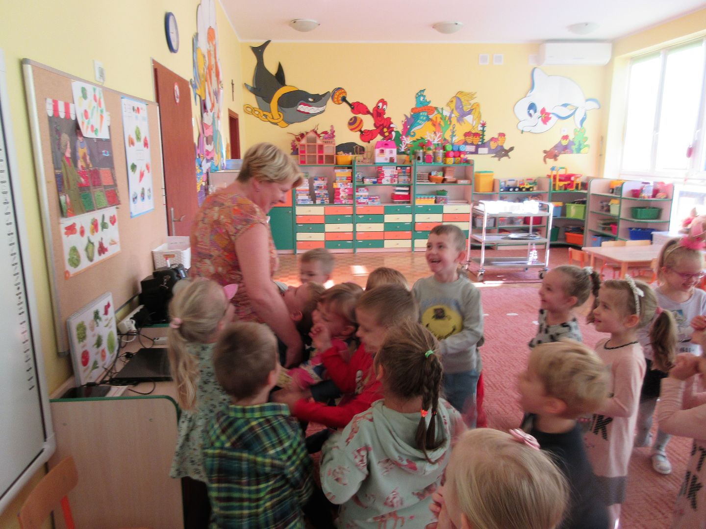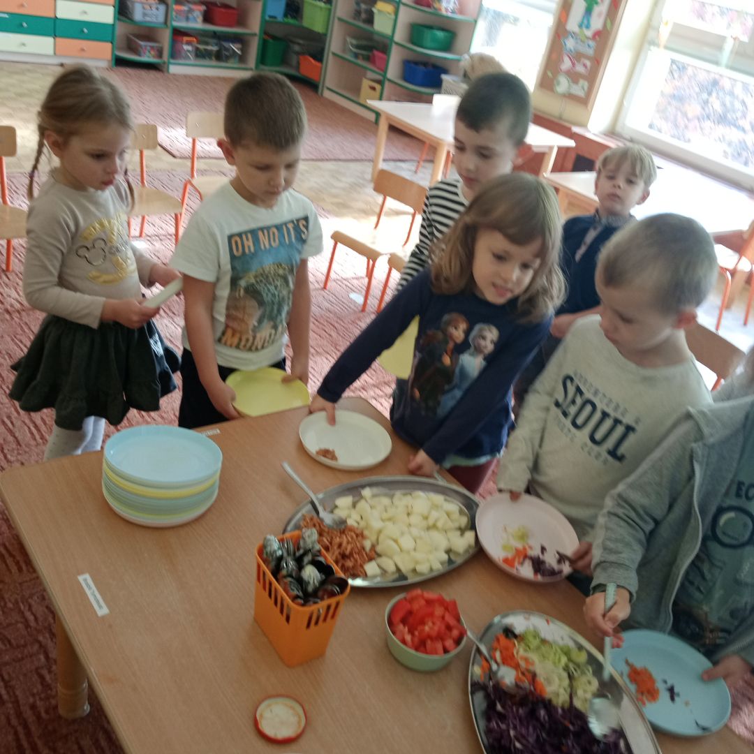 W minionym tygodniu dzieci poznawały i nazywały dary jesieni, dostrzegały ich znaczenie dla człowieka i ekosystemu, rozwijały umiejętności rytmiczno - słuchowe i ruchowo - koordynacyjne, dostrzegały piękno i bogactwo świata przyrody oraz nabywały doświadczeń logicznych i emocjonalnych potrzebnych do skonstruowania oraz rozumienia zasad gry - ściganki.