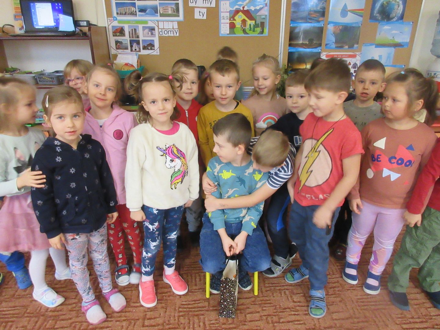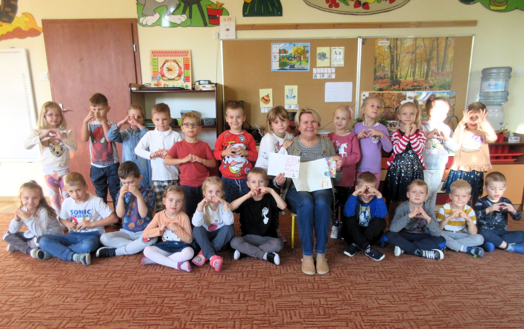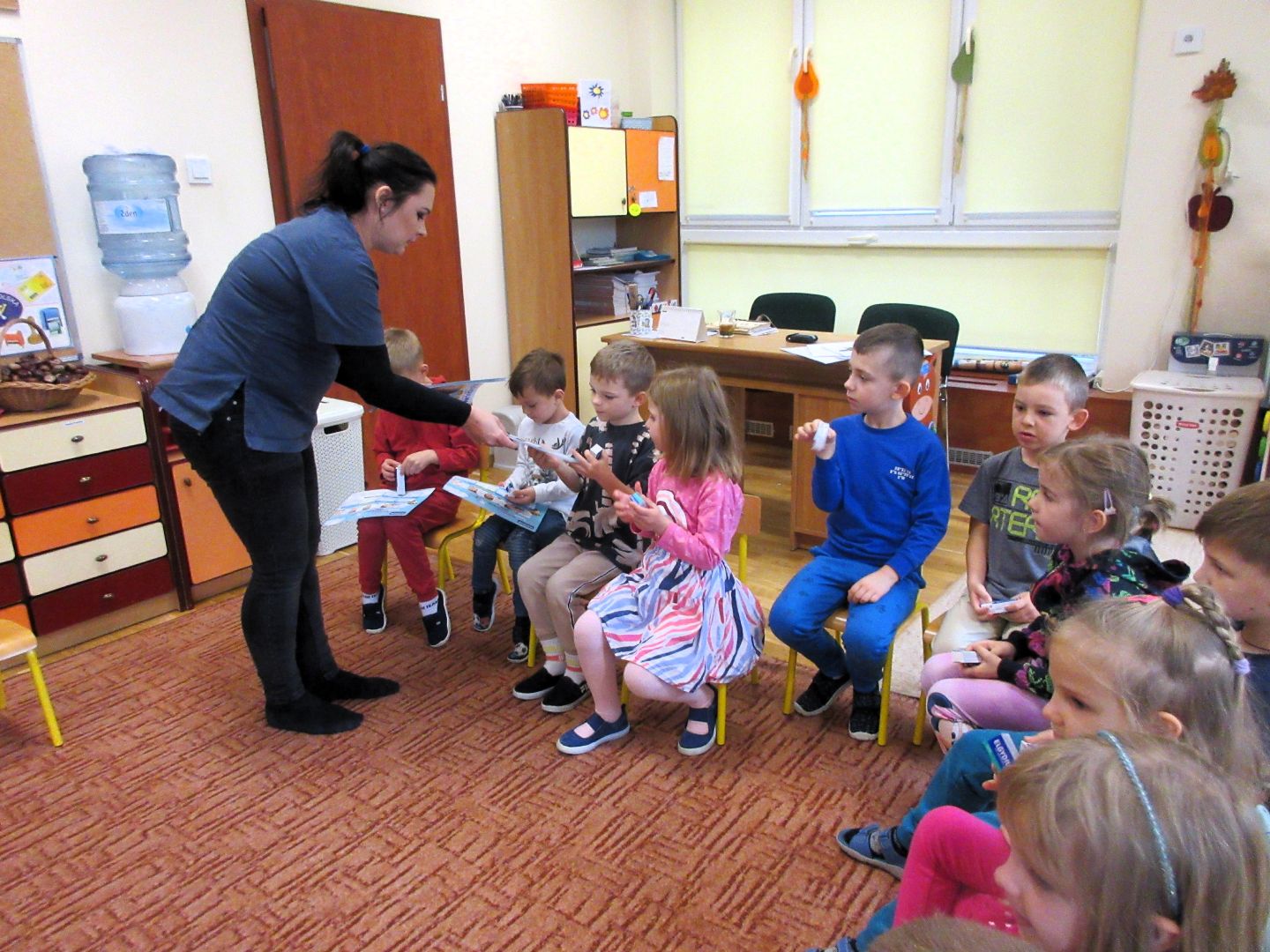 Bardzo ciekawy temat o poczcie, listonoszu - doręczycielu, listach, znaczkach, pocztówkach, paczkach, kopertach. Towarzyszył on nam w ostatnim tygodniu. Uczyliśmy się wiersza E. Majewskiego o listopadowych listach oraz piosenki „Chodzi listonosz”. Oglądaliśmy pocztówki, znaczki. Poznaliśmy symbol Poczty Polskiej, mundur listonosza oraz drogę listu od nadawcy do adresata. Poznaliśmy literę E, e. Ćwiczyliśmy podrzuty woreczkami w ruchu oraz rzuty do celu poziomego. Byliśmy również w bibliotece, wypożyczyliśmy nowe książki, a pani bibliotekarka opowiadała nam o życiu w morzach i oceanach - już umówiliśmy się na następną wizytę 15 grudnia.