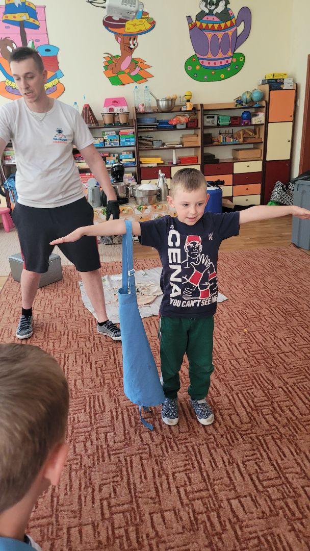 Nasze dzieci uczestnicząc w warsztatach poznały zjawisko sublimacji suchego lodu podczas którego wydziela się dwutlenek węgla. Z wykorzystaniem tej substancji napompowany został balon i powstało dużo „ciężkiego dymu” na podłodze. Dzieci zapoznały się także z możliwością wykorzystania suchego lodu w różnych obszarach działalności człowieka. Wspólnie odkryliśmy, że mandarynka włożona do suchego lodu zamrozi się i nawet udało się nam ją rozbić młotkiem! Na warsztatach wytworzona została także sucha piana, z której powstały dymiące fryzury.
