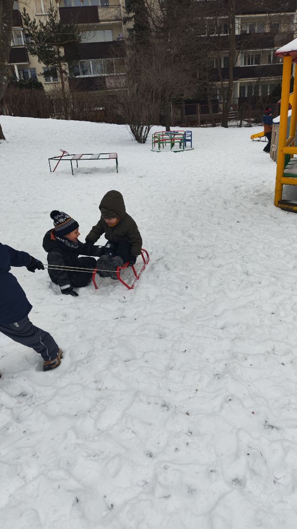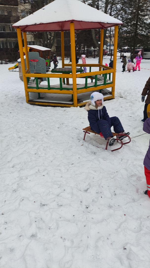 Zima, zima,zima.Pada,pada śnieg. W tym tygodniu dzieci mogły korzystać z uroków zimowej aury i sanek, które znajdują się w naszym przedszkolu