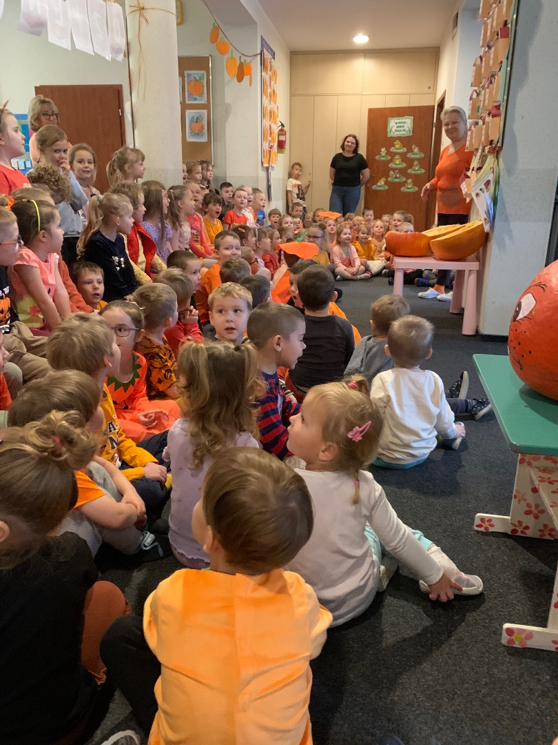 Dzisiaj w naszym przedszkolu od rana pomarańczowo, a za tym stał Dzień Dyni. Przedszkolaki słuchały wierszyków, piosenek, ciekawostek o dyni, a na koniec zjadły pyszny krem z dyni, który ugotowała nasza wspaniała szefowa kuchni :)