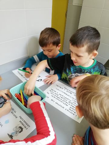Na tych zajęciach dyskutowaliśmy o niedźwiedziach - brunatnych i polarnych. Porównywaliśmy też ich tryb życia, wygląd, porównywaliśmy też warunki jakich potrzebują dla właściwego rozwoju. Odpowiedzieliśmy też na pytanie: czy każdy miś jest niedźwiedziem? Oczywiście chodzi tu o misia koalę i pandę. Do tych wiadomości będziemy wracać. Wiadomo, że jak niedźwiedzie polarne to i temat zszedł na pingwiny. I tu dzieci były bardzo zaskoczone bo te dwa gatunki nie spotykają się na wolności bo żyją na innych biegunach.Dla utrwalenia tej informacji polecam rymowankę: Wszystkie dzieci o tym wiedzą, że pingwiny na południu siedzą (tu warto wskazać rękoma na podłogę) a niedźwiedzie na północy oczekują polarnej nocy (oczywiście ręce unosimy do góry).