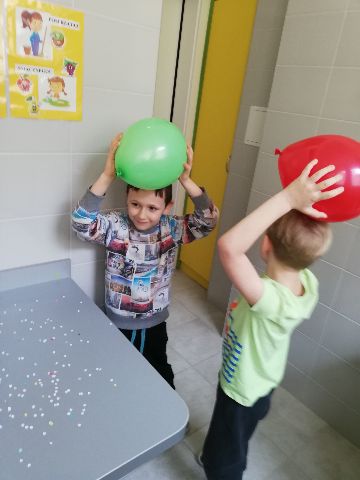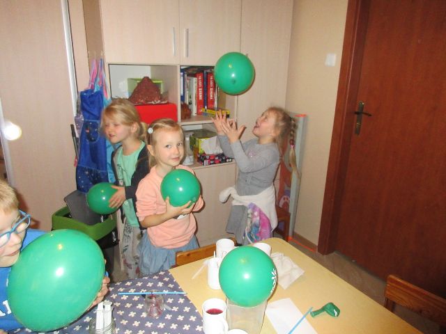Zajęcia pełne emocji, wybuchowe i.....zaskakujące. Oczywiście do naszych badań wykorzystaliśmy sporą ilość balonów - część, wiadomo - poszła na straty:). Zachęcam do wykorzystania umiejętności dzieci - dekorowania mieszkań a może jakaś niespodzianka dla mamy lub taty? Takie zajęcia przynoszą dużo radości ale także bałaganu a w dobrym nastroju i towarzystwie dobrze się sprząta!