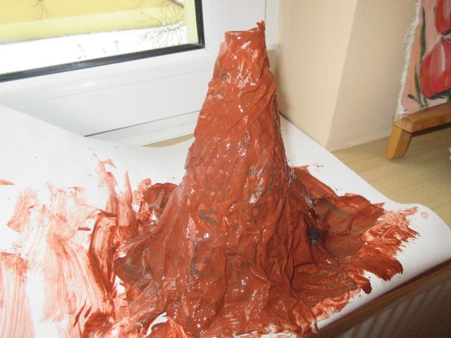 Utrwaliliśmy nasze wiadomości o mieszaniu kolorów i jak łatwo się domyślić zrobiliśmy tęczę z popularnych cukierków. To właściwy moment by pokazać dzieciom co dzieje się w naszych brzuchach z tych pierwotnie ślicznych barw. Chłopcy oczywiście wiedzieli, że ilość słodyczy należy ograniczać, a na widok pomieszanych kolorów.......Te zajęcia poświęciliśmy rozpuszczaniu różnych substancji: sól, cukier, kawa, soda no i oczywiście podjęliśmy próby odzyskania ich. Na stole także pojawił się ocet. Wypróbowaliśmy różne kombinacje i okazało się że ocet, woda i soda to fajowa, wybuchowa mieszanka, którą warto wypróbować podczas eksperymentów z wulkanami. Okazało się również, że taka mieszanka wytwarza tyle gazu, że nie trzeba dmuchać aby napompować balon. No i cóż, trzeba było rozpocząć prace nad wulkanami. W tym roku każdy uczestnik zrobi sobie swój własny wulkan:).