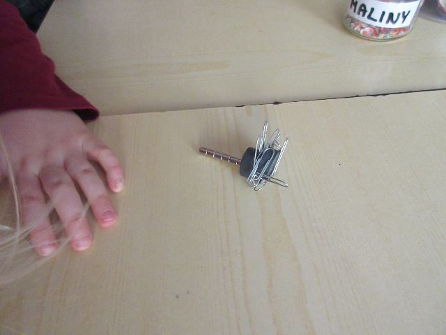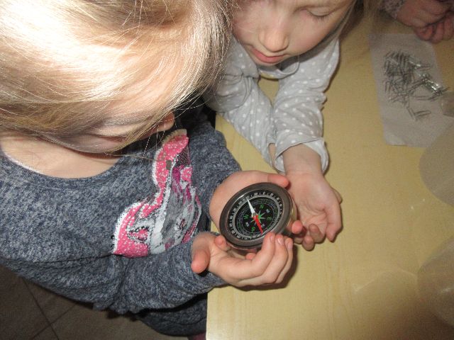 Badacze mieli okazję pobawić się magnesami - co przyciąga? Co odpycha? Przez co działa - czyli przez jakie materiały? W jaki sposób wykorzystują go ludzie? Na te pytania poszukiwaliśmy odpowiedzi. no i co? Zabawa była udana, a nam powstawały rzeźby magnetyczne - czy jak to właściwie nazwać? Przy okazji tego tematu oczywiście poznaliśmy igłę magnetyczną i kompas. Na kolejnych zajęciach każdy mały naukowiec wykona samodzielnie kompas morski, jeśli tylko przyniesie na zajęcia zakrętkę plastykową od słoiczka np po kawie:).