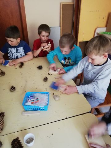Te zajęcia w całości poświęciliśmy faunie i florze Białowieży. Aby pogłębiać zainteresowania dzieci, wykorzystujemy książki, czasopisma i dostępne filmy. Postanowiłam, że najbliższe spotkania zoologiczne będą poświęcone właśnie tym zwierzętom z których my Polacy jesteśmy dumni. A gdzie można ich spotkać najwięcej jak nie w Białowieży.Chłopcy bardzo byli zainteresowani. Zadawali dużo pytań. Podróż po prastarej puszczy okazała się bardzo udana. Nie zdajemy sobie sprawy, że do dzieci docierają różne sprzeczne informacje na które potrzebują jasnej odpowiedzi. Ochrona roślin i zwierząt a jednocześnie odstrzały i wycinki. Takie pytania podejmowali chłopcy co świadczy o ich wrażliwości, spostrzegawczości i uwadze, którą poświęcają wszystkiemu co ich otacza ( to także telewizja, radio, rozmowy dorosłych).