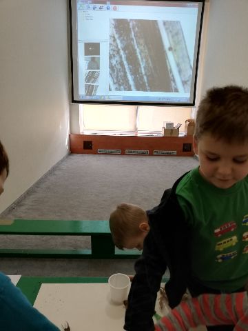 To były fantastyczne zajęcia. Skoro zima pokrzyżowałam nam plany, zajmowaliśmy się badaniem czystości otaczającej nas przyrody i nie tylko. Najpierw zebraliśmy materiał badawczy a później...... do pracy. Wykorzystaliśmy dwa rodzaje mikroskopów. Głośno omawialiśmy wszystkie spostrzeżenia. O czym warto wspomnieć? Czasem małym dzieciom nie warto pokazywać wszystkiego w dużym powiększeniu:). Na naszych zajęciach zajmujemy się także ekologią, dlatego próbowaliśmy odpowiedzieć na pytanie Skąd Tyle Nieczystości?
