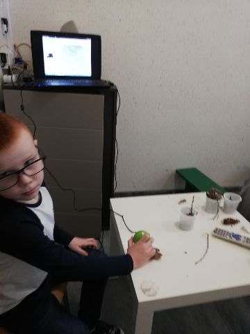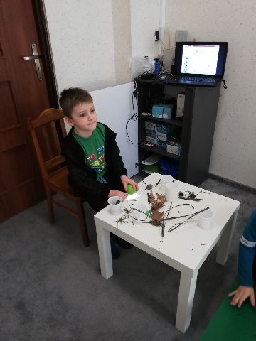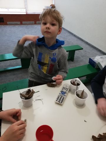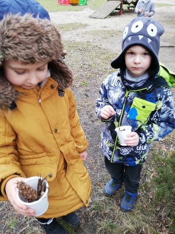 Na tych zajęciach dzieci poznały różne sposoby przewidywania pogody. Zapoznały się z barometrem i samodzielnie wykonały prosty, naturalny barometr. O co warto zapytać dzieci po tych zajęciach? Dlaczego właśnie szyszki nadają się do wykonania barometru, dlaczego przed deszczem zamykają się? Badacze bardzo cierpliwie pracowali. Chyba cieszył je fakt, że będą mogli ostrzegać swoją rodzinę przed nadchodzącym deszczem.