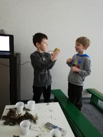 Na tych zajęciach dzieci słuchał głosów zwierząt. I te małe i te duże wydają dźwięki, które mogą nam dużo o nich powiedzieć. Na szczególną uwagę zasługują owady. A dlaczego? W większości z nas wywołują niepok, lęk. A przecież zasługują na naszą uwagę bo.... Jak są ważne dla życia tych większych! My na naszych zajęciach próbujemy zmienić takie negatywne nastawienie i pobudzić ciekawość, pomóc dostrzec w nich piękno, doskonałość.